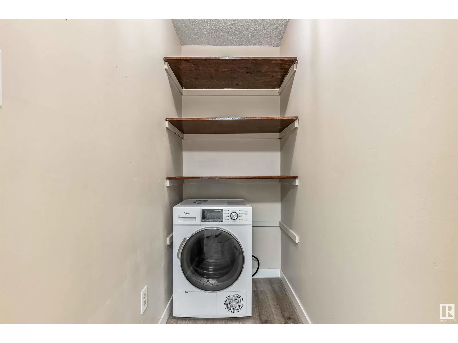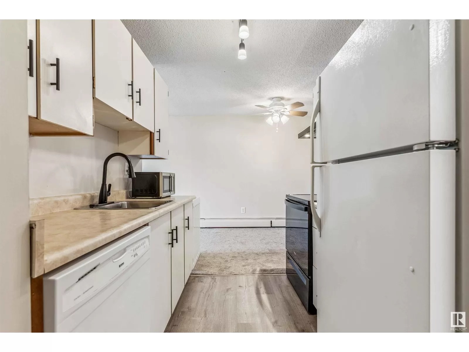 Welcome to this beautifully renovated top-floor condo, ideally situated in the vibrant Queen Mary Park, downtown Edmonton. This unit has been updated this year with fresh paint throughout, brand new flooring, fully renovated bathroom, a brand new washer and dryer, and upgraded kitchen appliances. This west facing unit offers lots of natural sunlight through the large patio windows. Additional highlights include in-suite laundry for your convenience, a generous storage room for all your extras, an assigned parking stall and a spacious balcony for outdoor living. This condo offers the perfect blend of modern updates in an unbeatable location, walking distance to Macewan University, Ice District and 104 Street amenities. (id:27476)