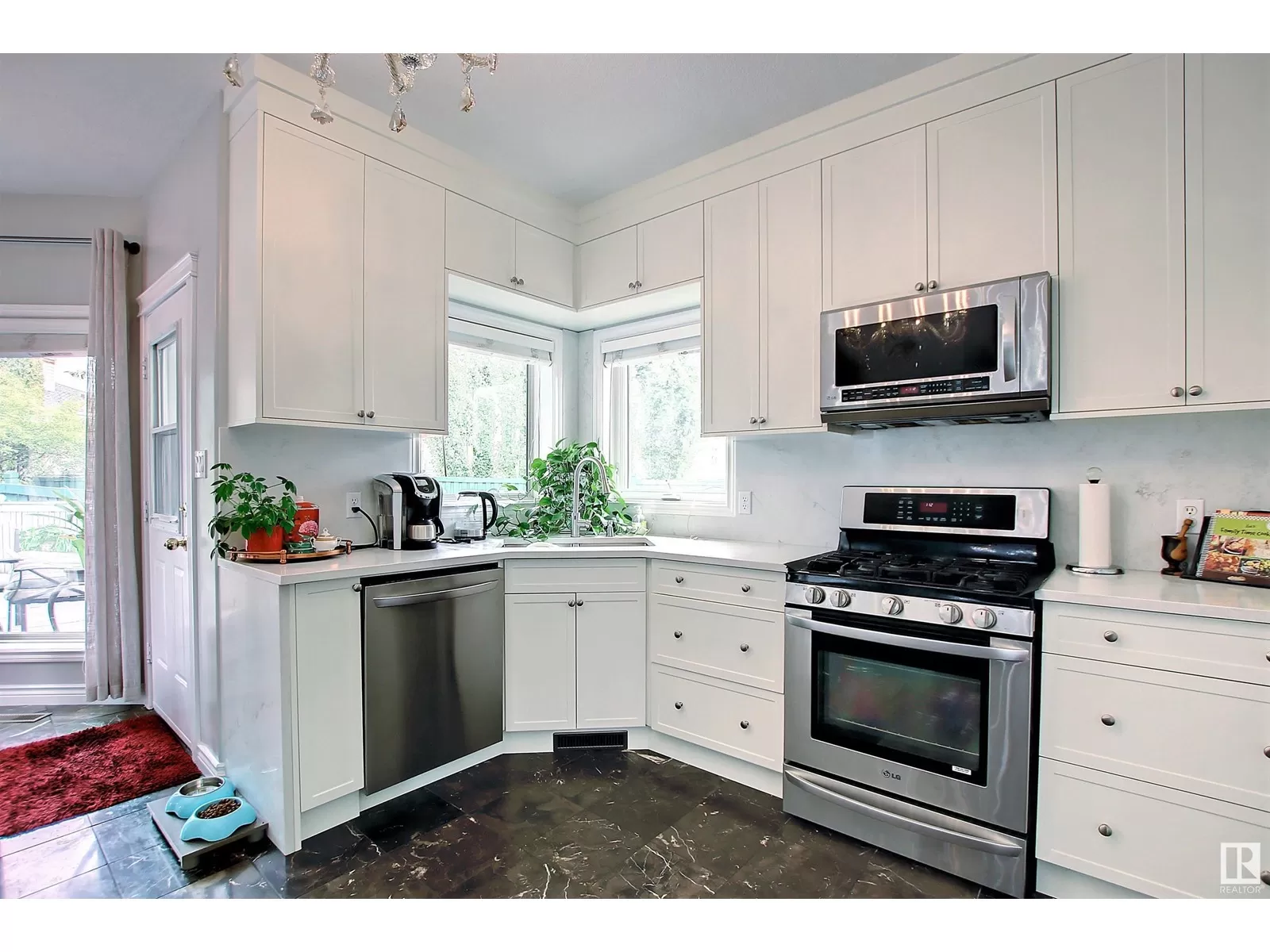 Nestled in the desirable community of Haddow just a couple of blocks away from the River and Park area this absolutely stunning recently upgraded 4+1 bedroom + den custom built 2 story home shows like a dream! As you enter this home you are greeted by soaring ceilings and natural light! Excellent layout-great for entertaining! Stunning brand new white kitchen with marble quartz countertops and stylish backsplash. The lovely nook overlooks the beautiful back yard. Gas fireplace w/ new custom built wall unit in the family room. Main floor office/den & shower. 4 bedrooms & loft space upstairs. Huge master bedroom w/5 pce ensuite and walk-in closet. Updated bathrooms with new white cabinets and quartz marble countertops. Fresh paint and impressive wainscoting detail. Fully finished basement with bedroom, entertainment room, wet bar, bathroom, laundry, and utility room. Furnace & HWT replaced in 2012. Close to the A. Henday & Terwillegar Rec centre. Pride of ownership is evident throughout! (id:27476)