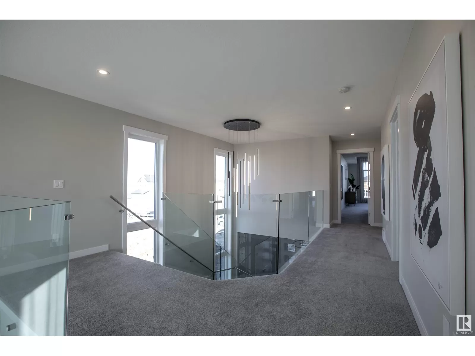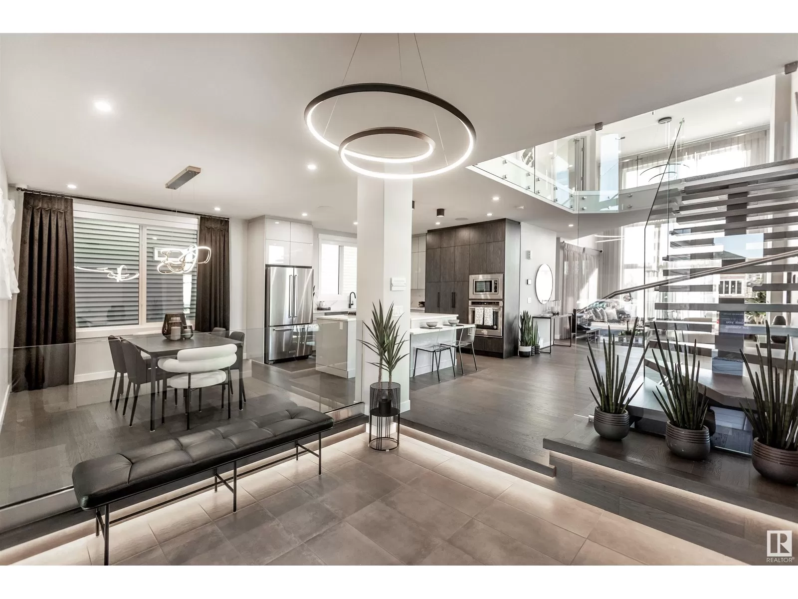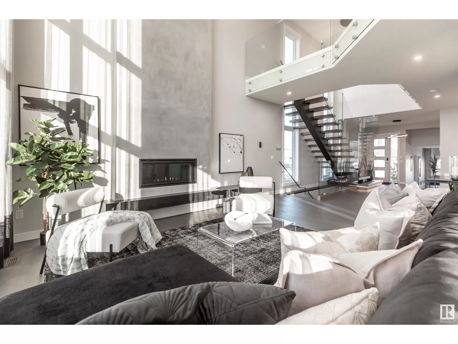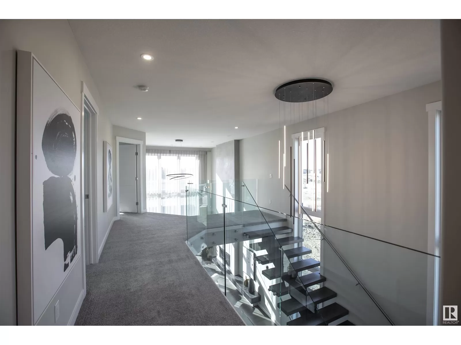 Former SHOWHOME of Coventry Homes, located in the crown jewel of Glenridding Ravine with environmental reserve, park and green space surrounded! This unique showhome model comes with loaded features and countless upgrades. Just to mention a few including all glass railings along the staircase, steal beam reinforced staircase with open risers from main to second, level 3 quartz countertops and kitchen backsplash with acrylic panel cabinets, dropped eating bar in kitchen island, full height cabinet walls centered with a hidden pantry, black exterior window frames throughout, monolithic limestone plaster finished gas fireplace surround details with plaster hearth dyed in a 2nd tone, triple stacked windows in the Great Room and along side the stairwell, electric drapes in open-to-below area and power retractable shades in covered deck area, bar with floating shelves and lower cabinets in both main and basement, fully tiled wet room in ensuite and many many many more! Over half a million worth of upgrades! (id:27476)
