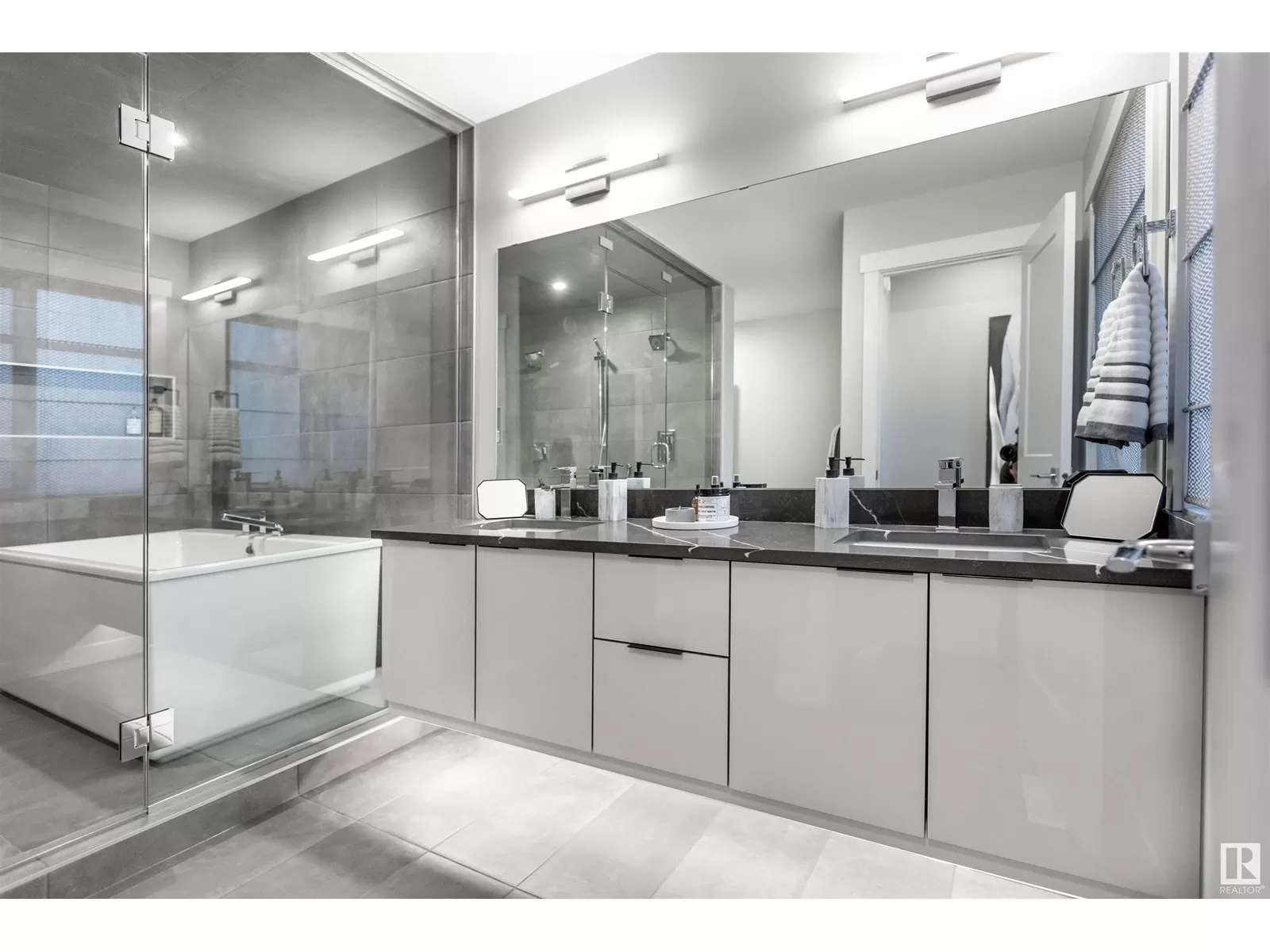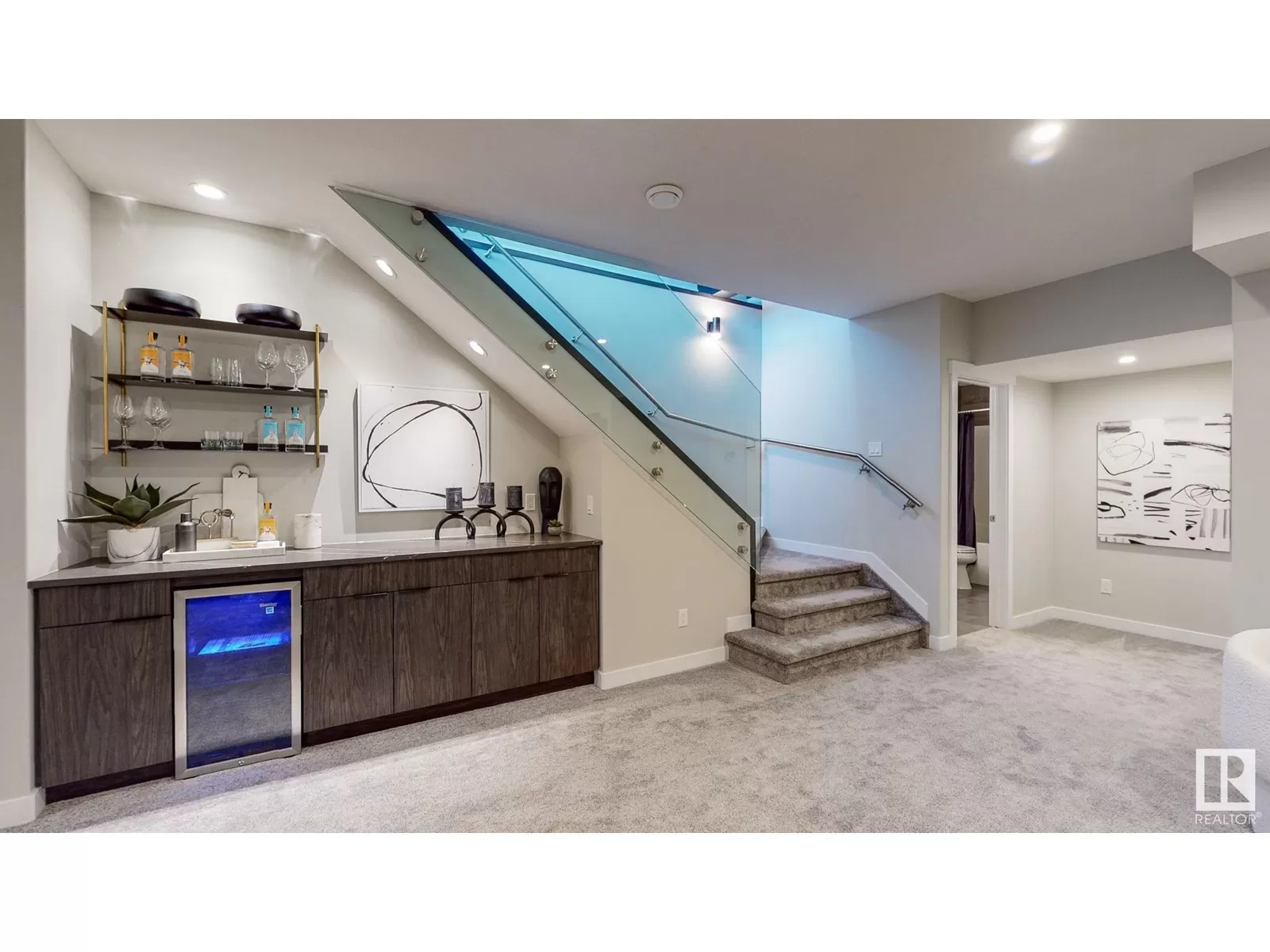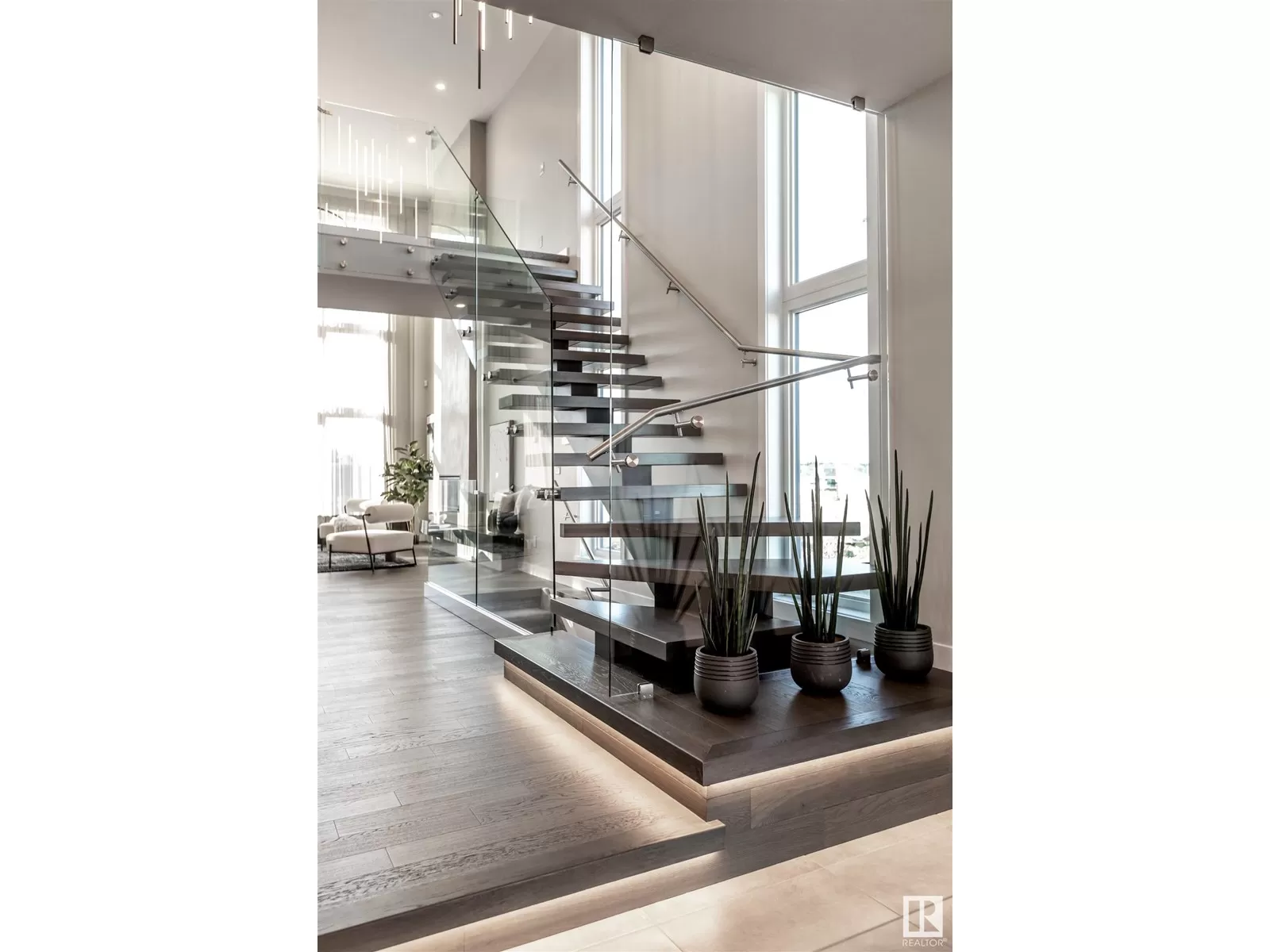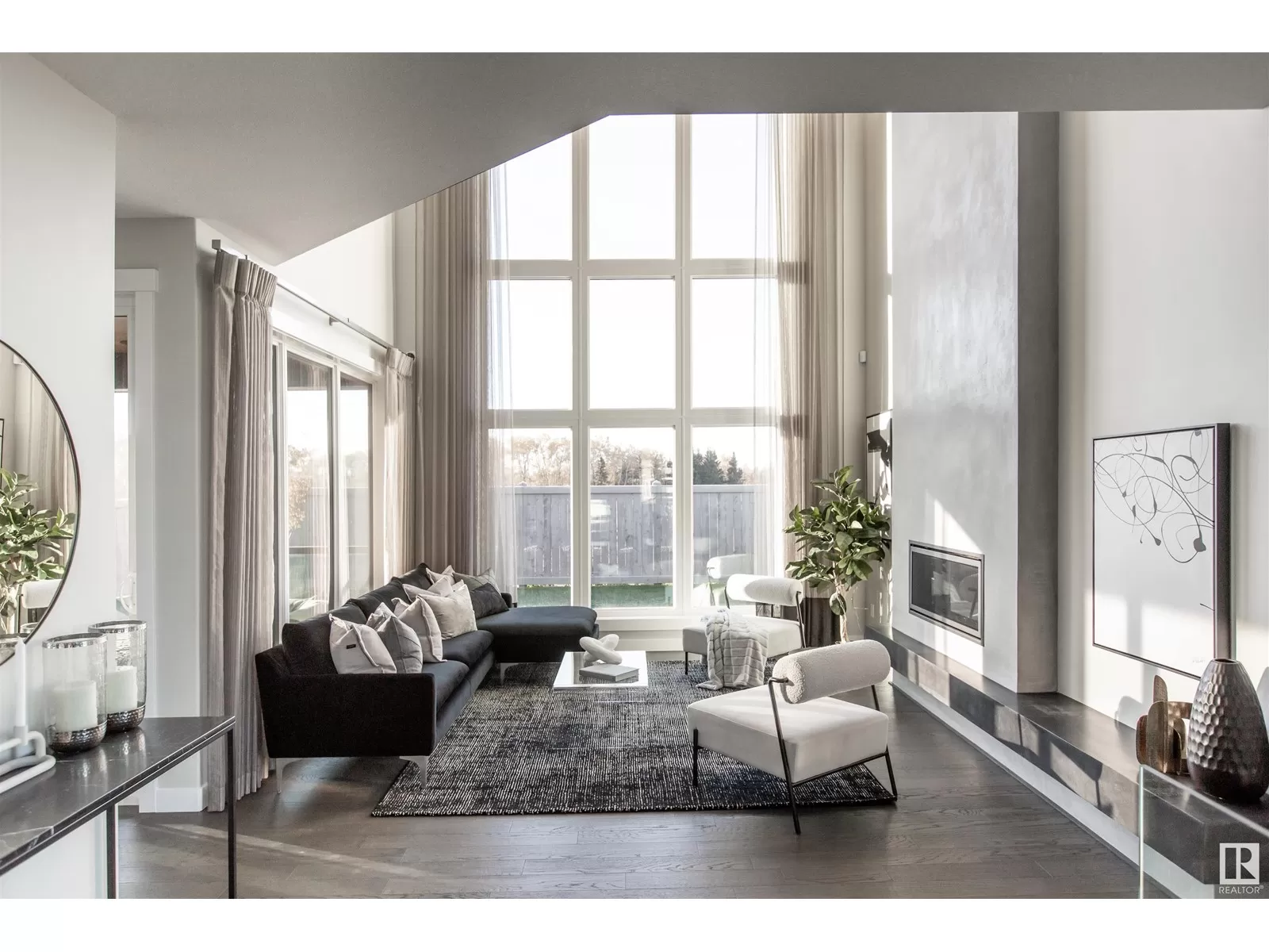 Former SHOWHOME of Coventry Homes, located in the crown jewel of Glenridding Ravine with environmental reserve, park and green space surrounded! This unique showhome model comes with loaded features and countless upgrades. Just to mention a few including all glass railings along the staircase, steal beam reinforced staircase with open risers from main to second, level 3 quartz countertops and kitchen backsplash with acrylic panel cabinets, dropped eating bar in kitchen island, full height cabinet walls centered with a hidden pantry, black exterior window frames throughout, monolithic limestone plaster finished gas fireplace surround details with plaster hearth dyed in a 2nd tone, triple stacked windows in the Great Room and along side the stairwell, electric drapes in open-to-below area and power retractable shades in covered deck area, bar with floating shelves and lower cabinets in both main and basement, fully tiled wet room in ensuite and many many many more! Over half a million worth of upgrades! (id:27476)