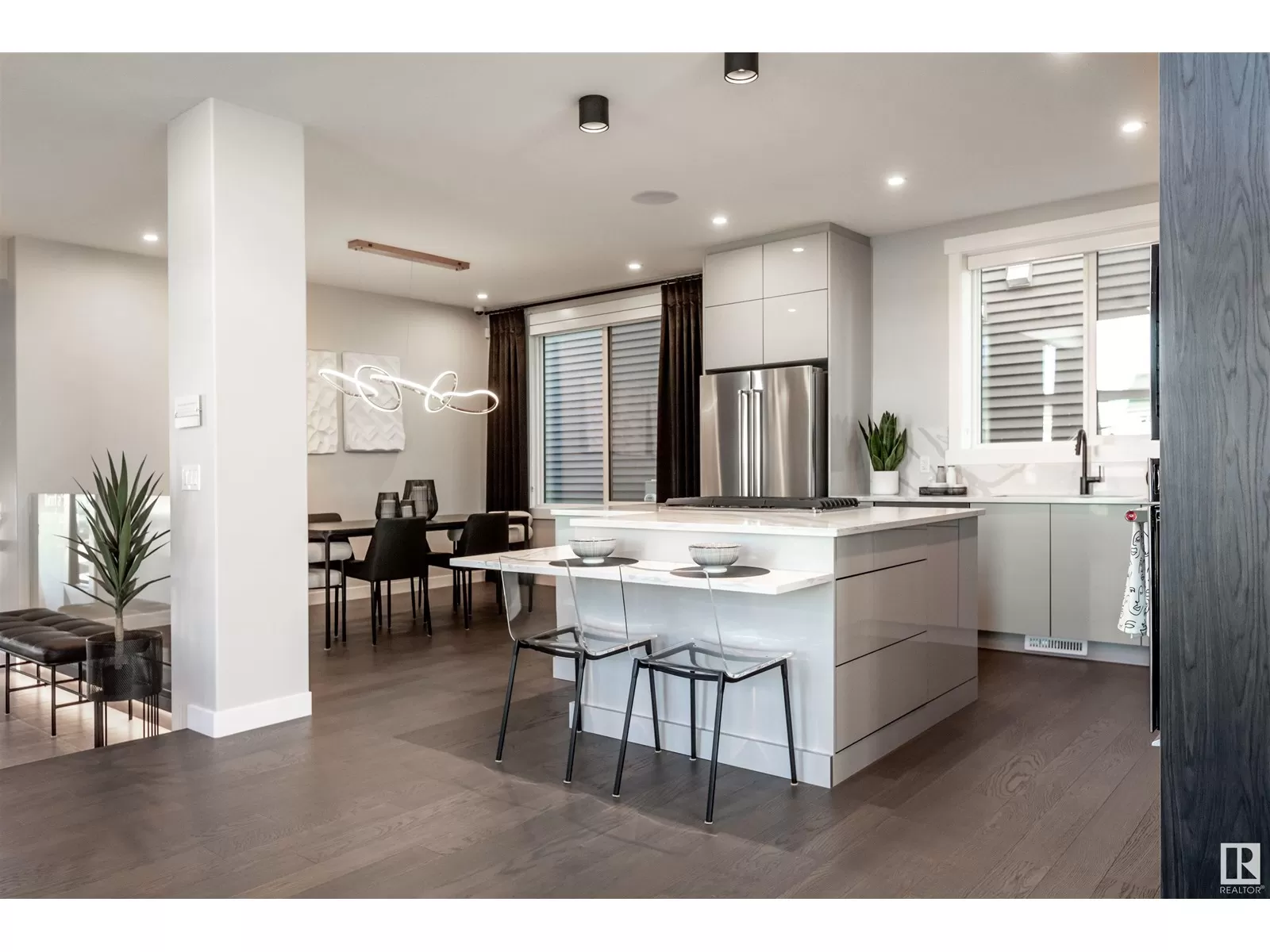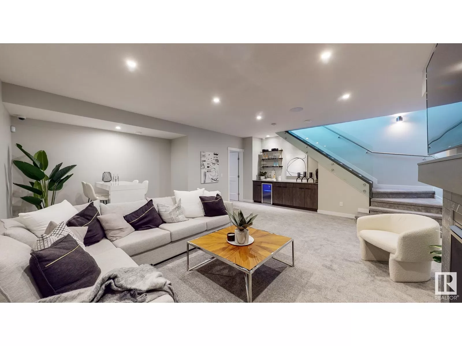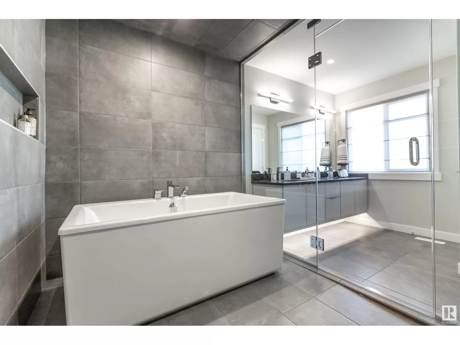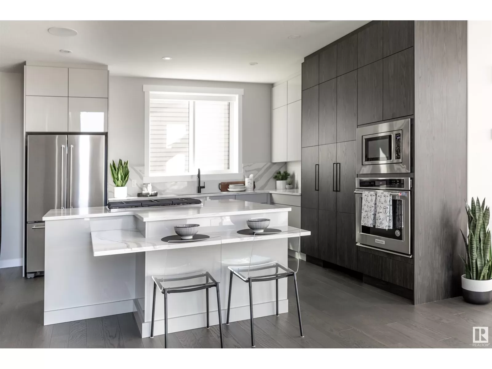 Former SHOWHOME of Coventry Homes, located in the crown jewel of Glenridding Ravine with environmental reserve, park and green space surrounded! This unique showhome model comes with loaded features and countless upgrades. Just to mention a few including all glass railings along the staircase, steal beam reinforced staircase with open risers from main to second, level 3 quartz countertops and kitchen backsplash with acrylic panel cabinets, dropped eating bar in kitchen island, full height cabinet walls centered with a hidden pantry, black exterior window frames throughout, monolithic limestone plaster finished gas fireplace surround details with plaster hearth dyed in a 2nd tone, triple stacked windows in the Great Room and along side the stairwell, electric drapes in open-to-below area and power retractable shades in covered deck area, bar with floating shelves and lower cabinets in both main and basement, fully tiled wet room in ensuite and many many many more! Over half a million worth of upgrades! (id:27476)