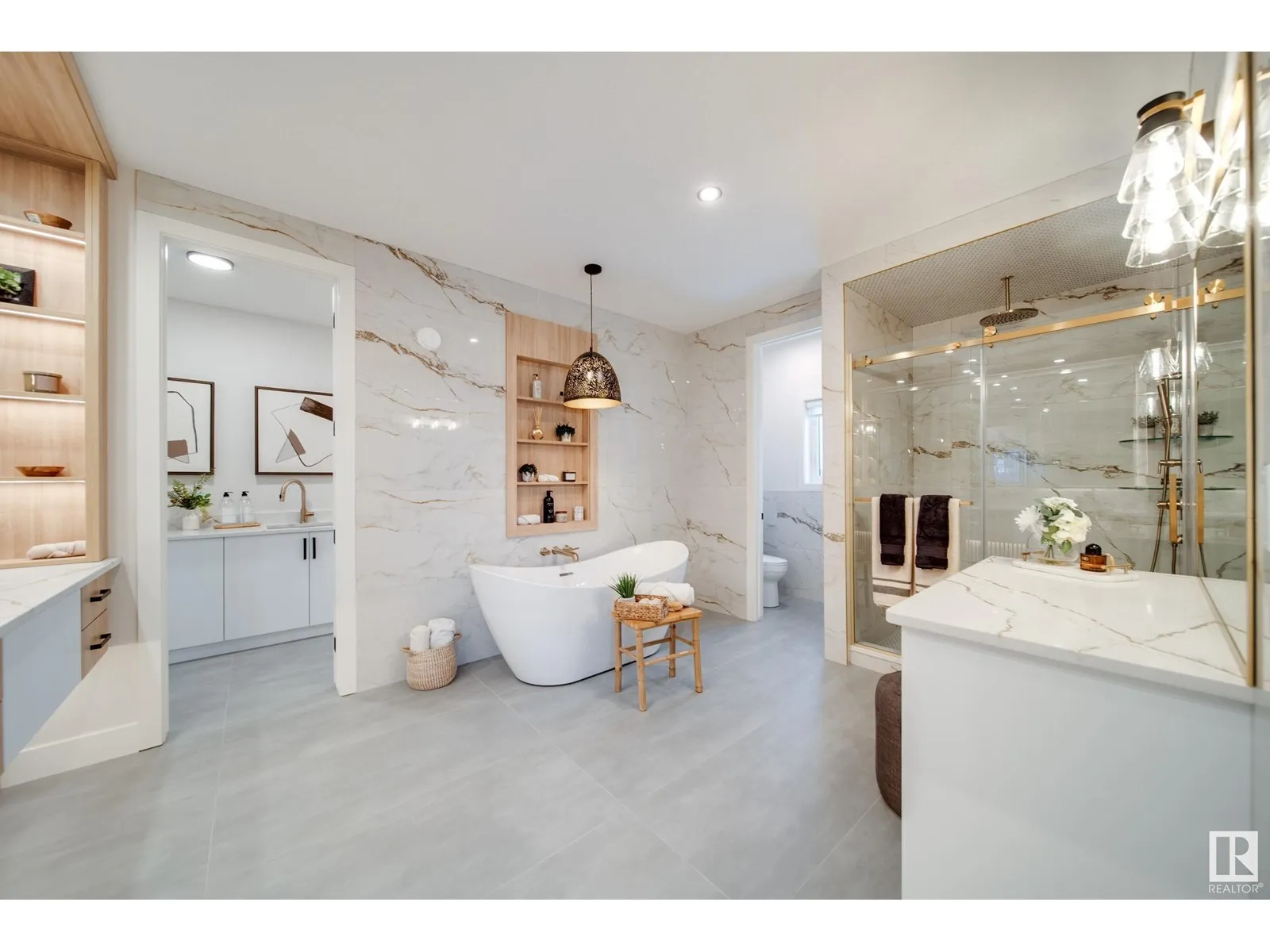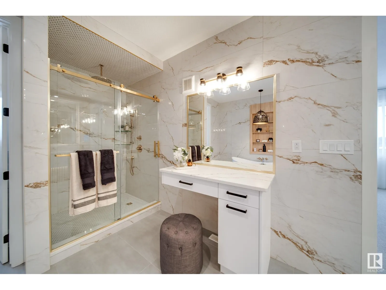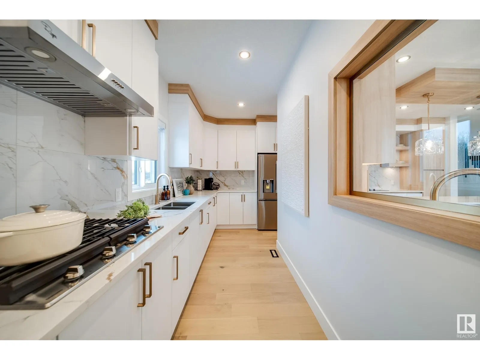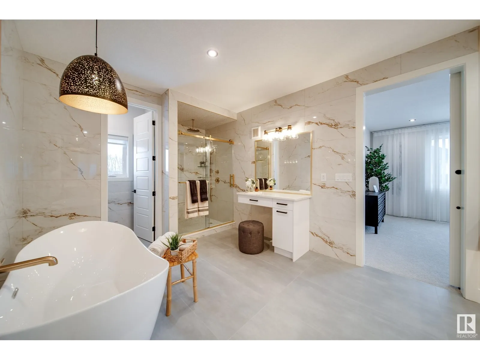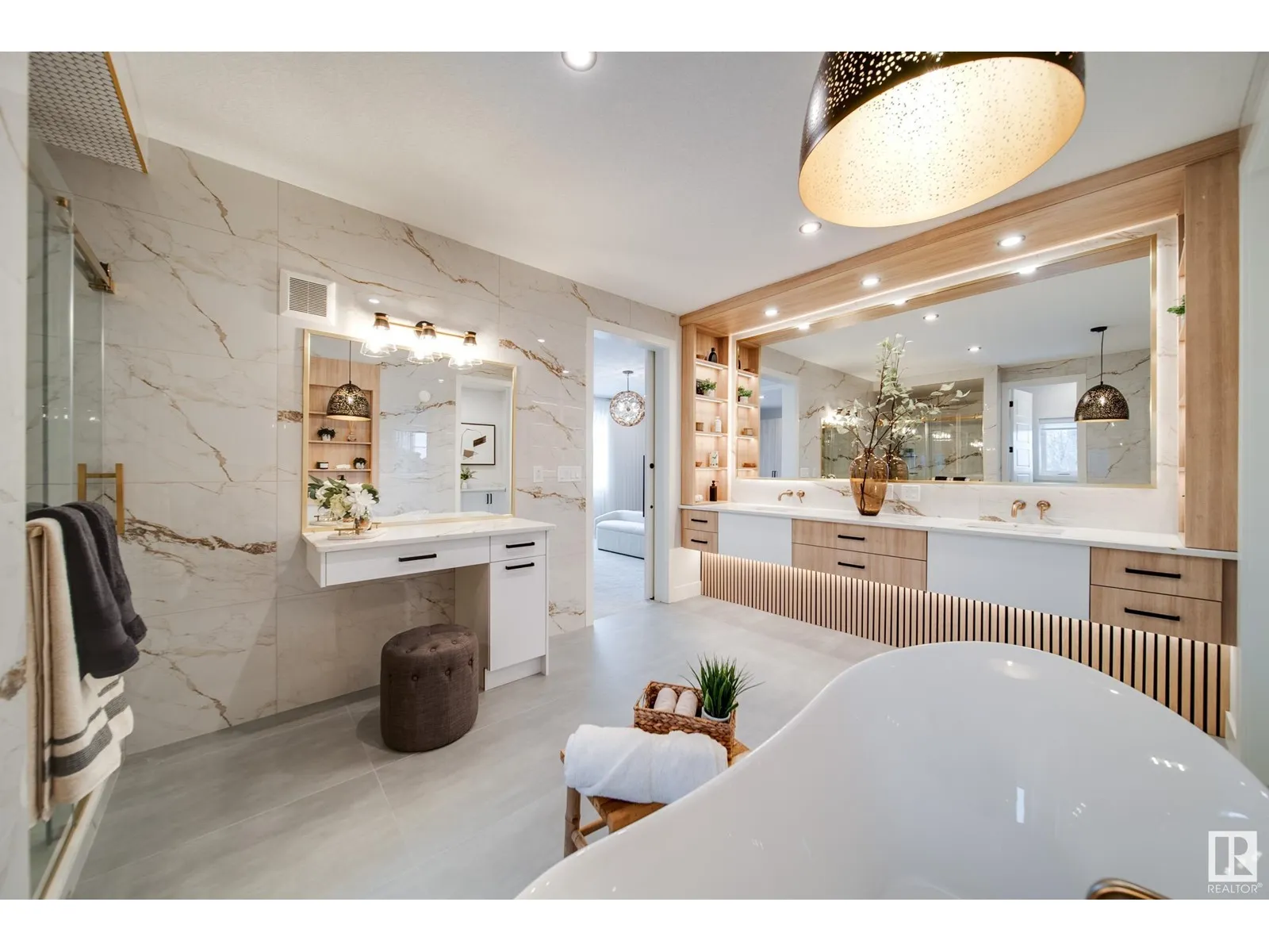 Welcome to LUXURY living in this stunning SHOWHOME on a 40' pocket corner lot w/ TRIPLE CAR garage! A bright open to above great rm welcomes you, complimented w/gorgeous custom millwork, glass railings, & engineered hardwood spanning the main & upper flrs. Cook in your dream kitchen U-shape island w/QUARTZ countertops, DECK access, plus a hidden SPICE KITCHEN w/gas cooktop & walk in pantry. Enjoy your main flr office/den, 9' ceilings on all 3 lvls, 8' doors, & upgraded remote Nova blinds. Upstairs boasts TWO spacious primary suites, each w/WICs & luxe ensuites. The 3rd bdrm has convenient access to the main upper full bath. The main primary is a true retreat feat. a huge WIC + a dream spa-like ensuite w/freestanding tub, vanity area & seamless walkthru into the laundry. Unfinished bsmnt awaits your personal touch & offers 3 windows, plumbing R/I, & tankless HWT. Located only MINUTES to all amenities, & steps to ravine, ODR & walking trails. Immediate possession available, your dream home awaits! (id:27476)