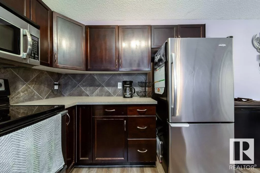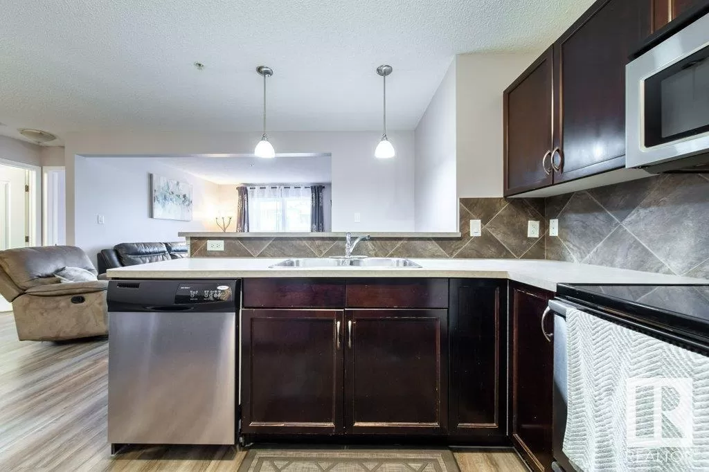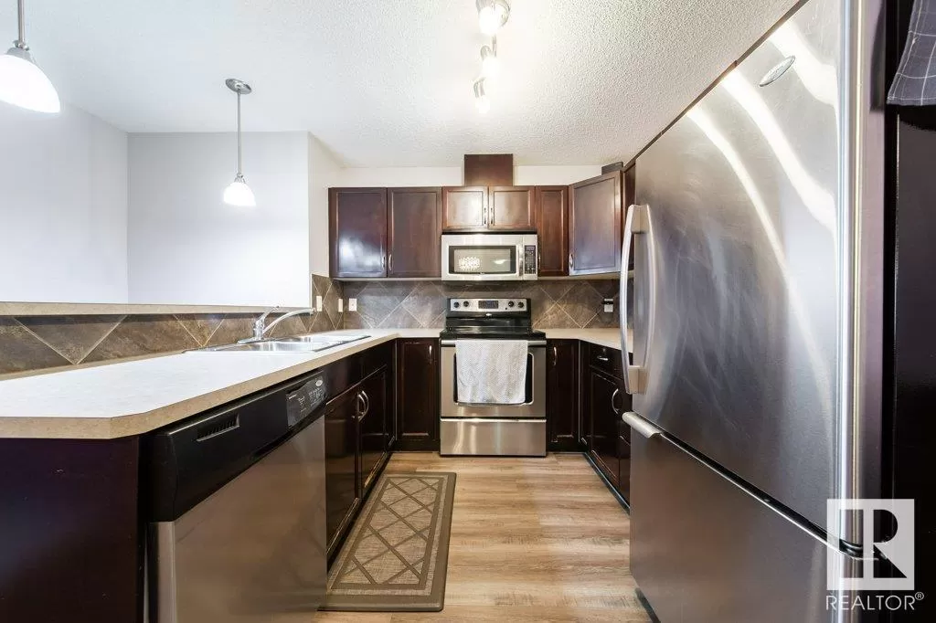 This well-maintained 2 bedroom, 2 full bathroom condo offers incredible value and convenience. Featuring an open-concept layout, vinyl plank flooring through-out, the kitchen is equipped with an island and includes stainless steal appliances â perfect for easy entertaining. The bright central living room opens to a northeast-facing patio through sliding doors, providing a great space to relax. The spacious primary bedroom boasts a walk-in closet and a private 4-piece ensuite. A generous second bedroom is ideal for a home office or guest room, complemented by an additional 4-piece bathroom. Enjoy the convenience of in-suite laundry with a stacking washer and dryer. Situated on the main floor â no stairs or elevators needed â this unit also comes with a heated, titled underground parking stall. Building amenities include an exercise room and a social room. Why rent when you can own this fantastic home. (id:27476)