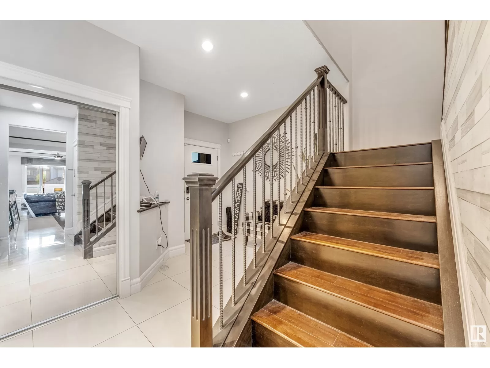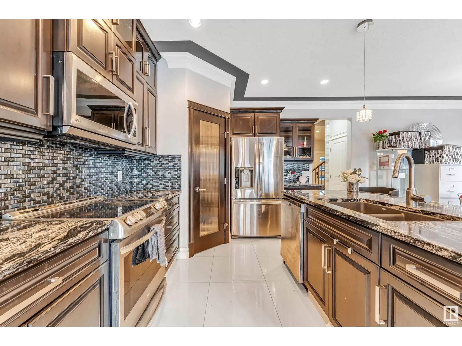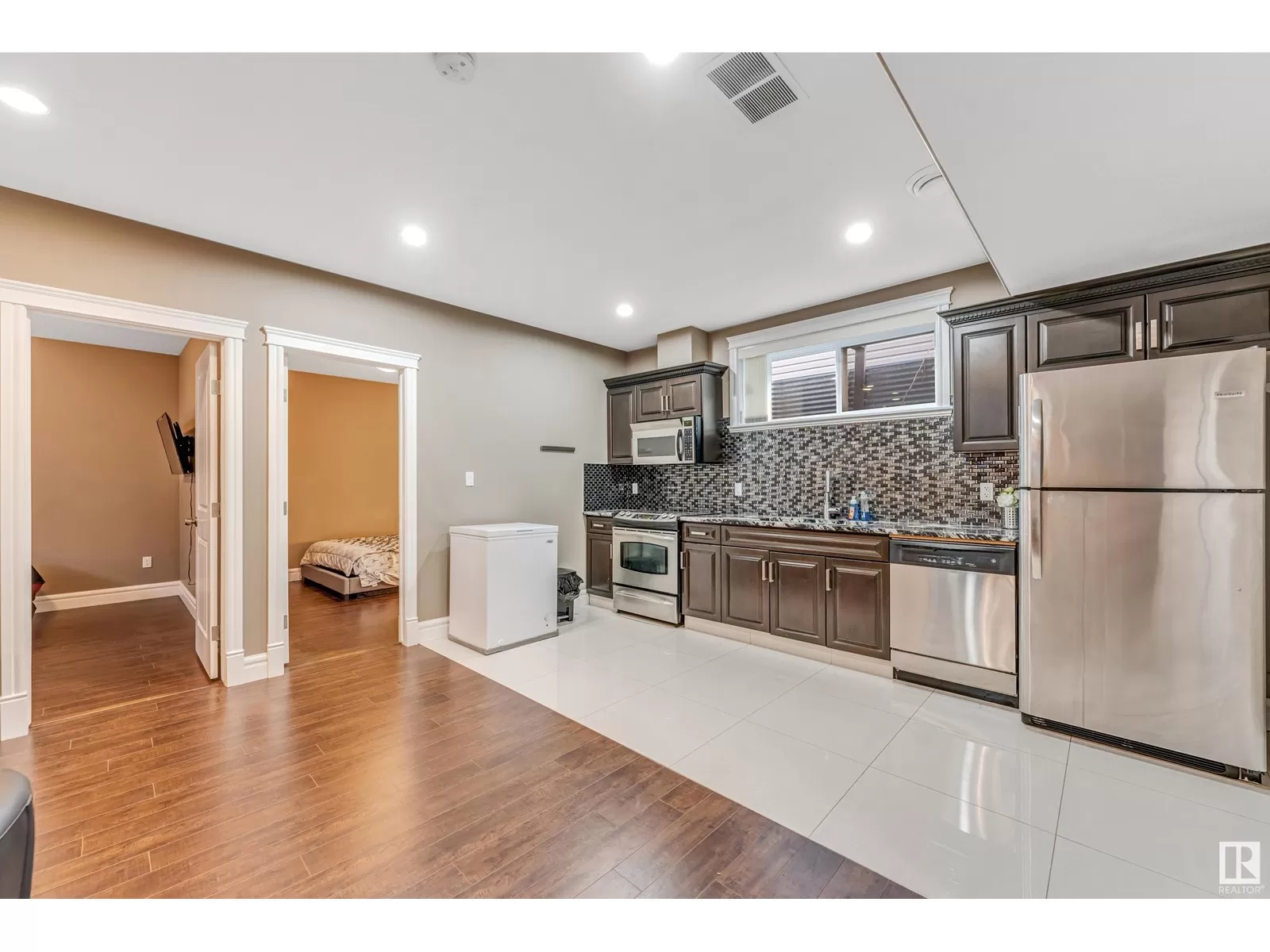 Beautiful open concept 2 Story Home with a stamped concrete driveway. Hardwood flooring, with warming porcelain tiles on the main floor including kitchen and front entry. Large dark stained maple kitchen. Very large master bedroom features ensuite with jacuzzi, large shower, double sinks, and toilet. Upper floor laundry room with lots of counter space. Iron railings on staircase. Tasteful light fixtures throughout. Separate side entry to the fully finished basement with Kitchen, 2 bedrooms, large storage area, and spacious family room. Back yard is fully landscaped with a large deck off the dining room, and concrete patio below. (id:27476)