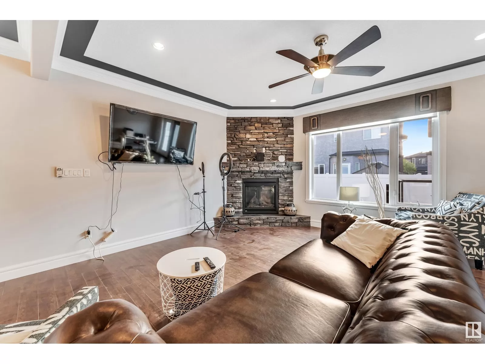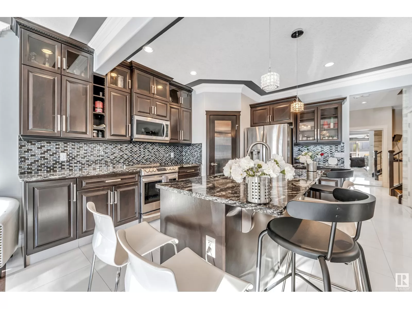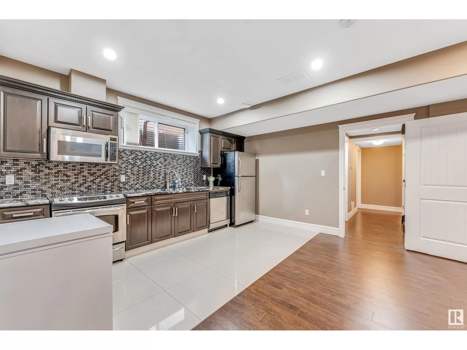 Beautiful open concept 2 Story Home with a stamped concrete driveway. Hardwood flooring, with warming porcelain tiles on the main floor including kitchen and front entry. Large dark stained maple kitchen. Very large master bedroom features ensuite with jacuzzi, large shower, double sinks, and toilet. Upper floor laundry room with lots of counter space. Iron railings on staircase. Tasteful light fixtures throughout. Separate side entry to the fully finished basement with Kitchen, 2 bedrooms, large storage area, and spacious family room. Back yard is fully landscaped with a large deck off the dining room, and concrete patio below. (id:27476)