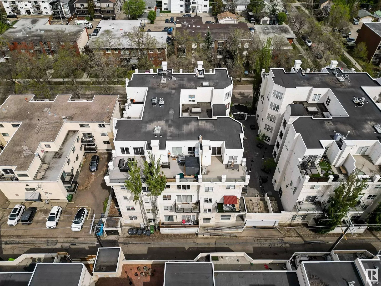 Incredible Opportunity to own a Penthouse Loft Condo in the Heart of GARNEAU! Short Term Rental Friendly! Pet Friendly! This Ideal location is just a short walk from everything Whyte Ave has to offer! Old World Theaters, a Variety of restaurants, quaint cafes, the Old Strathcona Farmer's Market, a Sparkling Night Life, and just minutes from the UofA! Walk to the FRINGE! This 2-STOREY open concept 2 Bedroom 2 Bathroom Home offers over 1150 Sq Ft. of sophisticated living space! Upon entering you'll be greeted by stunning hardwood floors, a kitchen with a large built in pantry and plenty of counter space, and a cozy corner fireplace in the living-room. Upstairs to your Loft Style Primary Bedroom with tons of Space, an En-Suite bathroom, Walk-in-Closet, and Patio doors to your very own PRIVATE ROOFTOP PATIO!! Perfect for outdoor Entertaining, or sitting with your morning coffee enjoying the spectacular City Views! Comes with its own Titled Heated UNDERGROUND PARKING Stall and Storage! (id:27476)