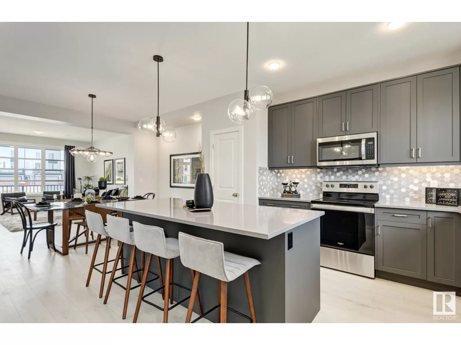 EXCEPTIONAL NEW 2 STORY HOME on CORNER LOT & 20x20 parking pad, constructed by Homes by Avi. Welcome to Marquis West, a picturesque & serene community in Northeast Edmonton. This home is AMAZING! Charming full width front porch, SEPARATE SIDE ENTRANCE, 3 bedrooms, 2.5 baths, pocket office, upper-level loft style family room & laundry closet. Open concept main level floor plan w/stunning design highlights welcoming foyer, spacious living/dining area, deluxe kitchen w/center island, appliance allowance, chimney hood fan & built-in microwave. Private ownerâs suite w/luxurious 4-pc ensuite showcases upgraded shower & WIC. 2 spacious junior rooms & 4pc bath. Numerous upgrades throughout including, quartz countertops, abundance of cabinetry, upgraded lighting/fixtures, blinds, neutral palette, luxury vinyl plank flooring, plush carpet upper level, 9' ceiling height in basement, electric F/P, HRV system, programable thermostat, 10x10 pressure treated deck w/aluminum railing & BBQ gas line on landscaped lot. (id:27476)