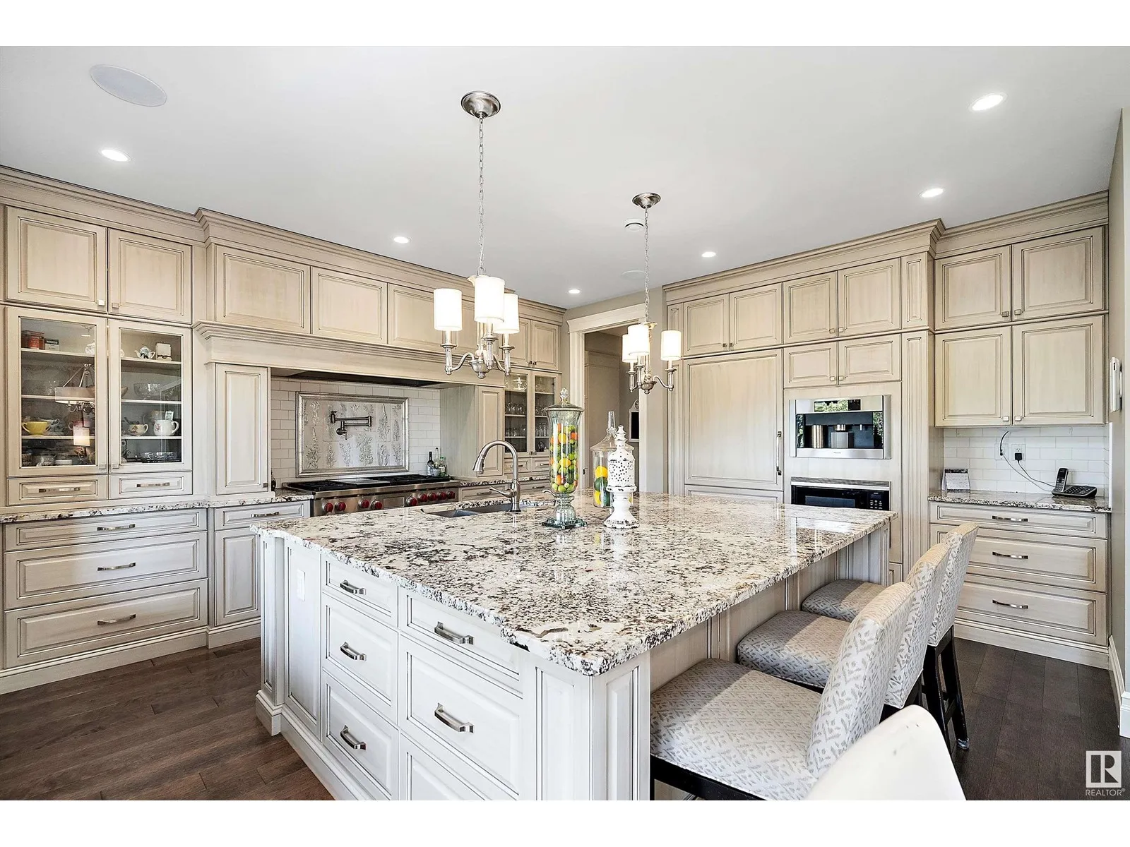 Welcome to this stunning luxury home in Windermere Estates! With nearly 6,900 sq. ft. of exquisite living space, this estate offers a lifestyle of comfort, elegance, and sophistication. Featuring 5 bedrooms, 5.1 bathrooms (including 3 ensuites), every detail is thoughtfully designed. Enjoy movie nights in the private theatre, relax in the swim spa, or entertain on the heated deck. High-end finishes include a built-in Sub-Zero fridge, premium appliances, a Wolfe 6-burner gas stove with grill, a Butlerâs kitchen, and an enjoyable wet bar. Stay fit in your private gym, work from home in the spacious office, or unwind in the tranquil library. Additional features like in-floor heating, a walk-out basement, an elevator, and a triple garage add to the comfort. Overlooking a serene pond, this home blends luxury, privacy, and a refined lifestyleâyour dream home awaits! (id:27476)
