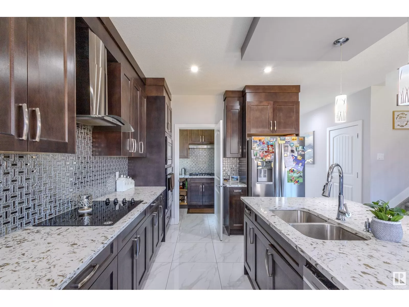 Stunning home in LAUREL on a pie-shaped lot with a LEGAL BASEMENT SUITE AND SEPARATE ENTRANCE! This fully upgraded property features a main kitchen with spice kitchen, maple cabinets, granite countertops, and glass backsplash. Enjoy a separate living and dining area, with the living room featuring a cozy electric fireplace. The main floor also offers a bedroom with ensuite bath, family room, and dining areaâperfect for large or extended families. Upstairs includes 2 master bedrooms, a third bedroom, bonus room, laundry, and 2 full baths including a 5-piece ensuite. The basement offers 2 bedrooms and a full bathroom. Step outside to a huge backyard with deck, fully landscaped and ready to enjoy. Designed with huge windows for natural light, the home feels bright and spacious. Every corner is thoughtfully utilized. Located in the desirable Laurel community near schools, shopping, and transit! (id:27476)