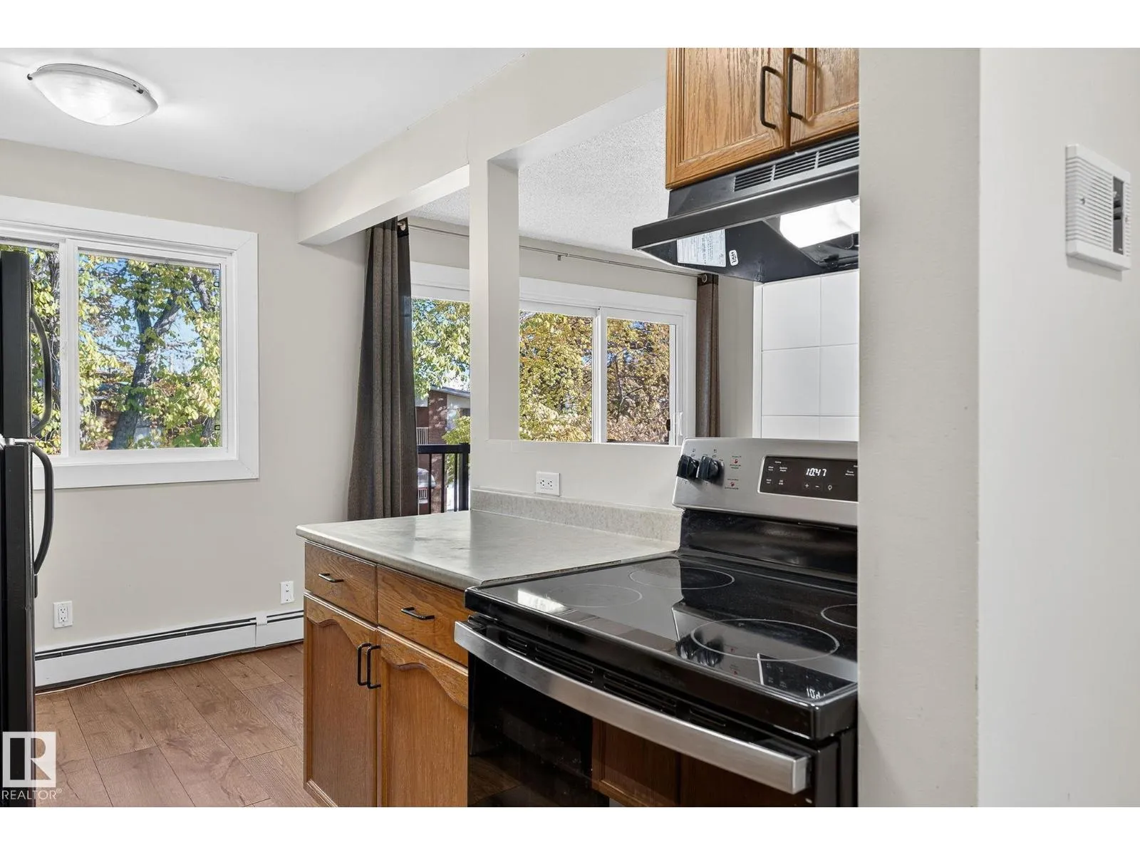 SAFETY AND SECURITY IS ALWAYS NUMBER ONE. CORNER, TOP FLOOR-with a SPACIOUS BALCONY facing a tree lined street. This very quiet unit is unique as there is NO NEIGHBOUR on either side of your living space. ALL NEW WINDOW REPLACEMENT. FRESH PAINT AND NEW KITCHEN FLOORING. The condo has been professionally managed over the years with long term tenants. It is well maintained and upgraded. Property offers 2 bedrooms and one bath. Newer appliances and plenty of added pantry cabinet space in the kitchen. Enjoy your spacious in-suite storage for that special bike or treasure. Additional individual storage is available within the complex for a nominal fee. The condo is close to both the University and transit. Laundry is on the main floor. Parking is assigned at the rear; one stall and additional street parking is available. Building is secure with both interior and exterior cameras. SMOKE FREE COMPLEX, professionally managed. You will be proud to call this home. (id:27476)