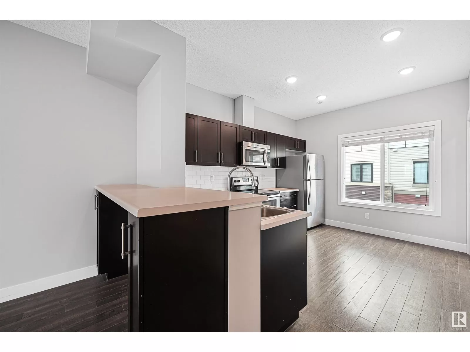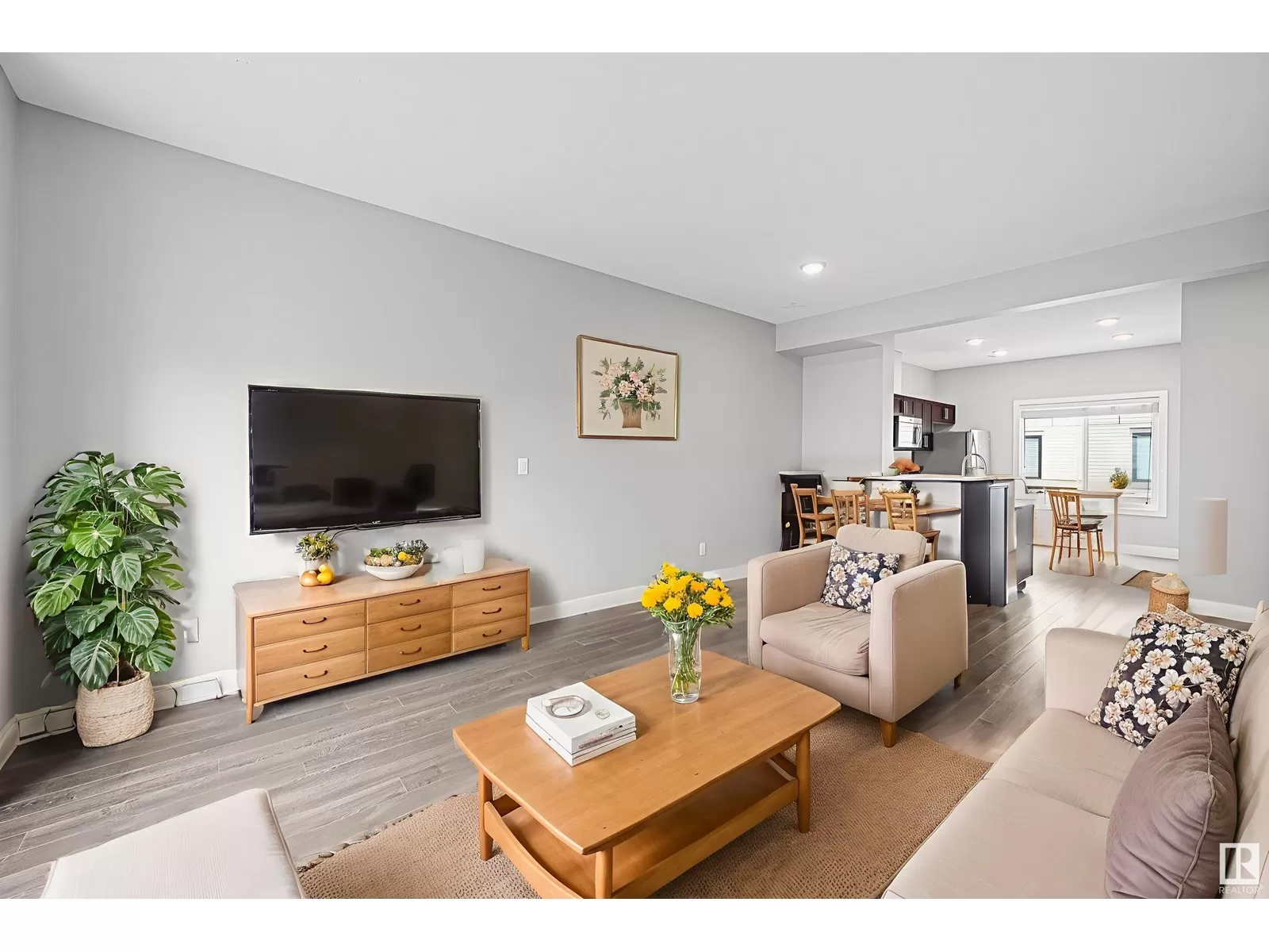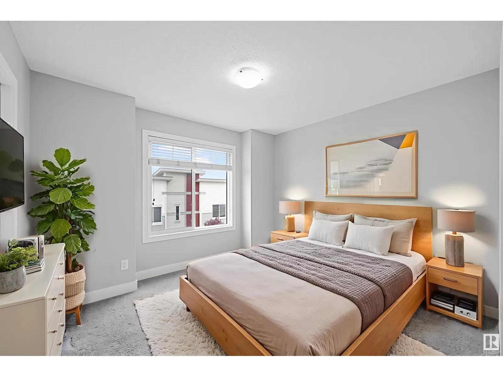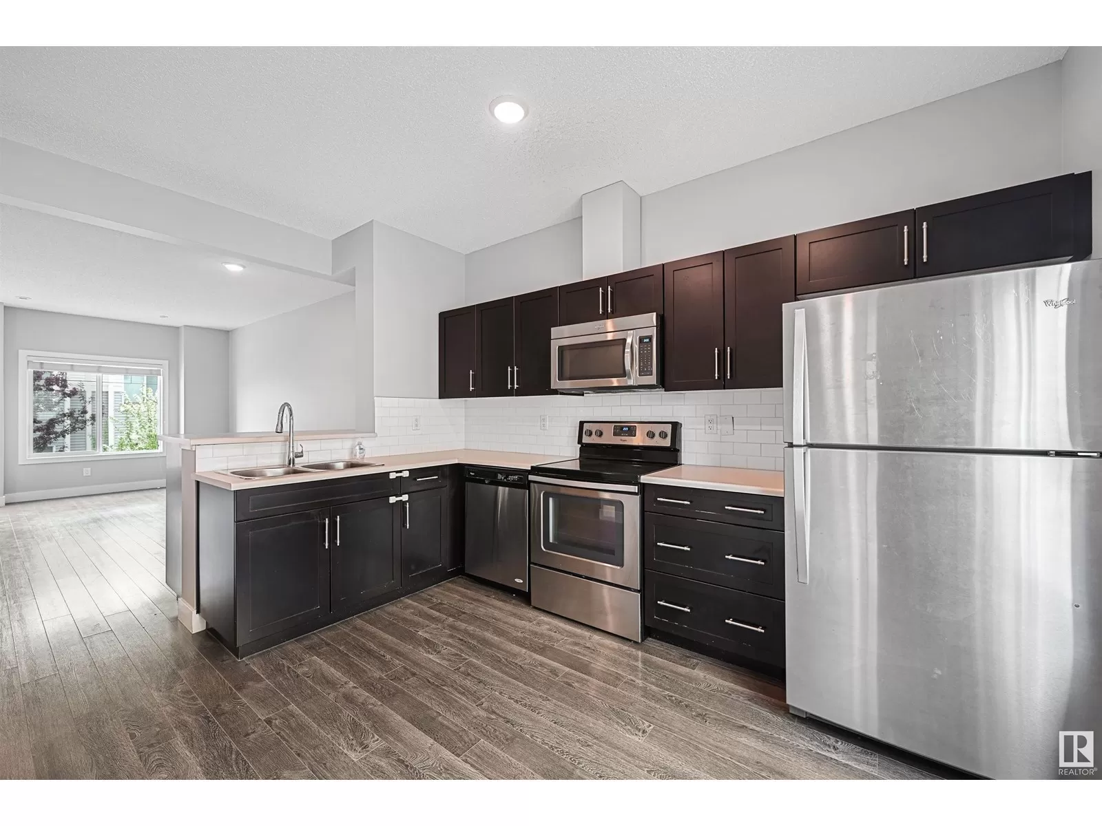 Absolutely stunning and spacious 2 bedroom/2.5 bath townhome in desirable Walker. Main floor boasts 9' ceilings & quality finishings. The gorgeous kitchen has SS appliances, walk-in pantry & eating bar. Living room features an attached balcony to enjoy the fresh air & green space. The main level is equipped with a 2.5 bath & vinyl flooring. Upper level boasts 2 well-sized bedrooms. Primary bedroom has 3pc ensuite & walk in closet. Plus 2nd 4pc bathroom upstairs & laundry. Other features include a single attached garage, a flex room for office or play room, plenty of storage, energy-efficient mechanical including tankless hot water for a lower utility bill. This well maintained complex offers visitor parking & is conveniently located close to shopping, walking trails & lake. Quick proximity to Anthony Henday, South Common, schools & public transportation. A must see! (id:27476)