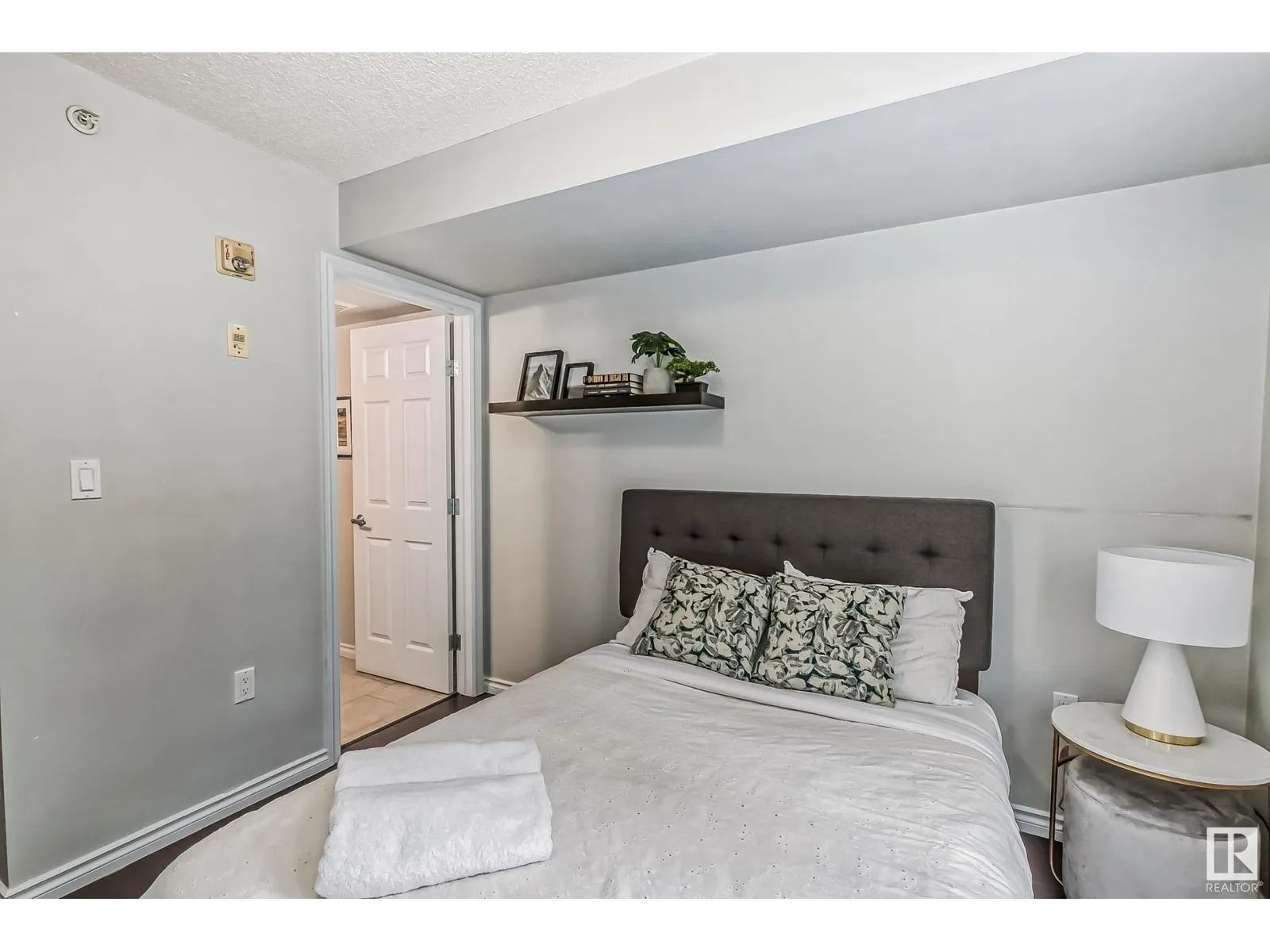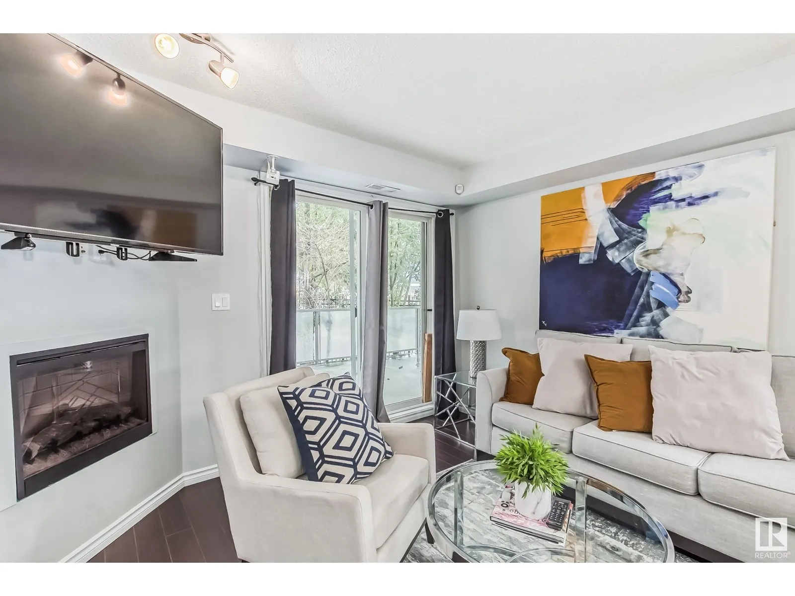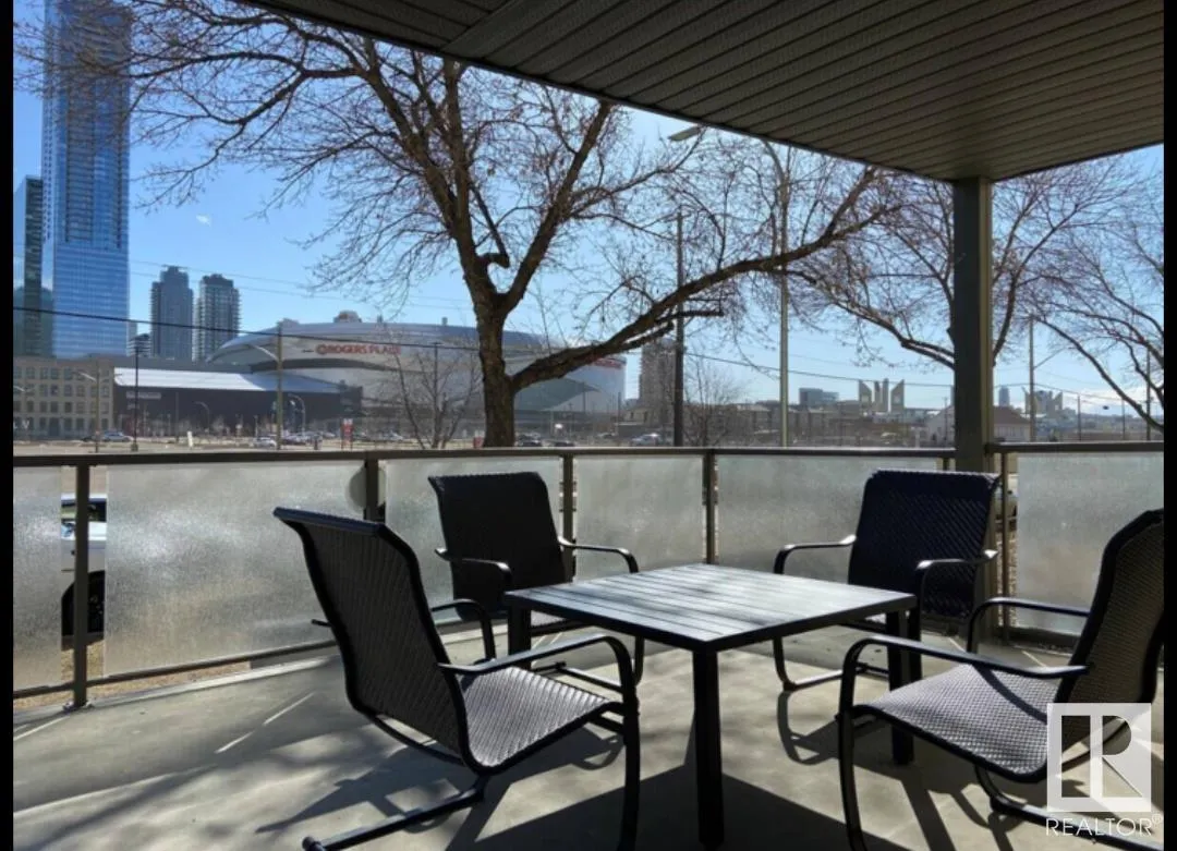 This cozy, 2 bed/2 bath, 854 sq ft unit is well lit with natural light due to its private corner location. It features A/C, a fireplace, stainless steel appliances, as well as a large wrap-around patio that is great for outdoor living and enjoying the city views. Your new home awaits in a vibrant neighborhood surrounded by the Ice District/Rogers Place Arena, MacEwan University, the LRT, and popular dining spots like the Lingnan, & Brew and Bloom. Additionally, the property offers heated underground parking; a valuable feature during the winter months in Edmonton. This property is popular due to its location and proximity to amenities. Come take a look! (id:27476)