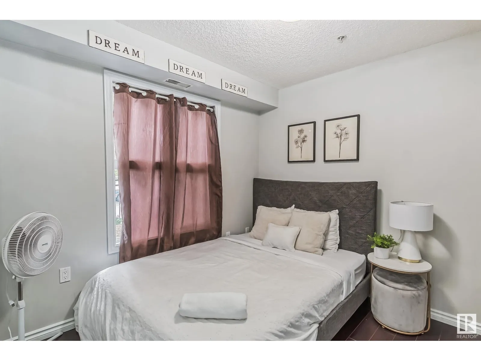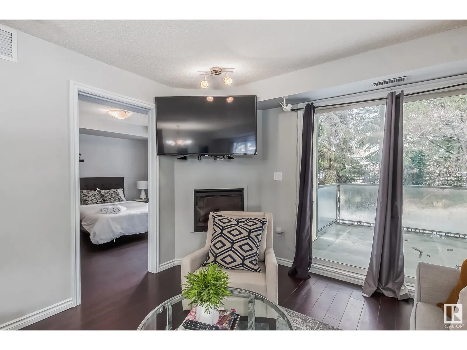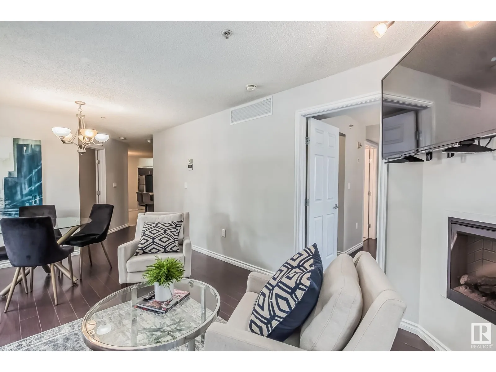 This cozy, 2 bed/2 bath, 854 sq ft unit is well lit with natural light due to its private corner location. It features A/C, a fireplace, stainless steel appliances, as well as a large wrap-around patio that is great for outdoor living and enjoying the city views. Your new home awaits in a vibrant neighborhood surrounded by the Ice District/Rogers Place Arena, MacEwan University, the LRT, and popular dining spots like the Lingnan, & Brew and Bloom. Additionally, the property offers heated underground parking; a valuable feature during the winter months in Edmonton. This property is popular due to its location and proximity to amenities. Come take a look! (id:27476)