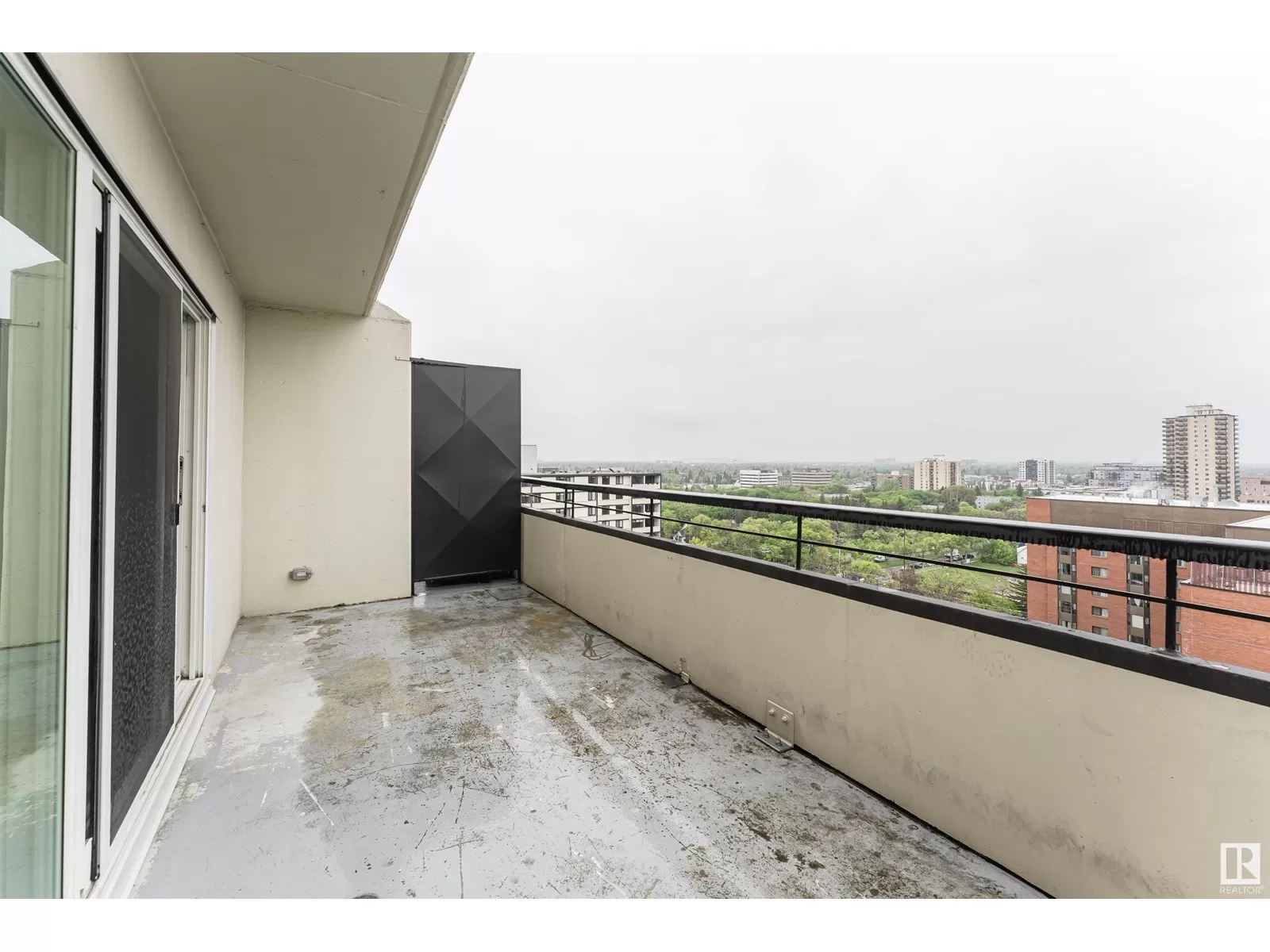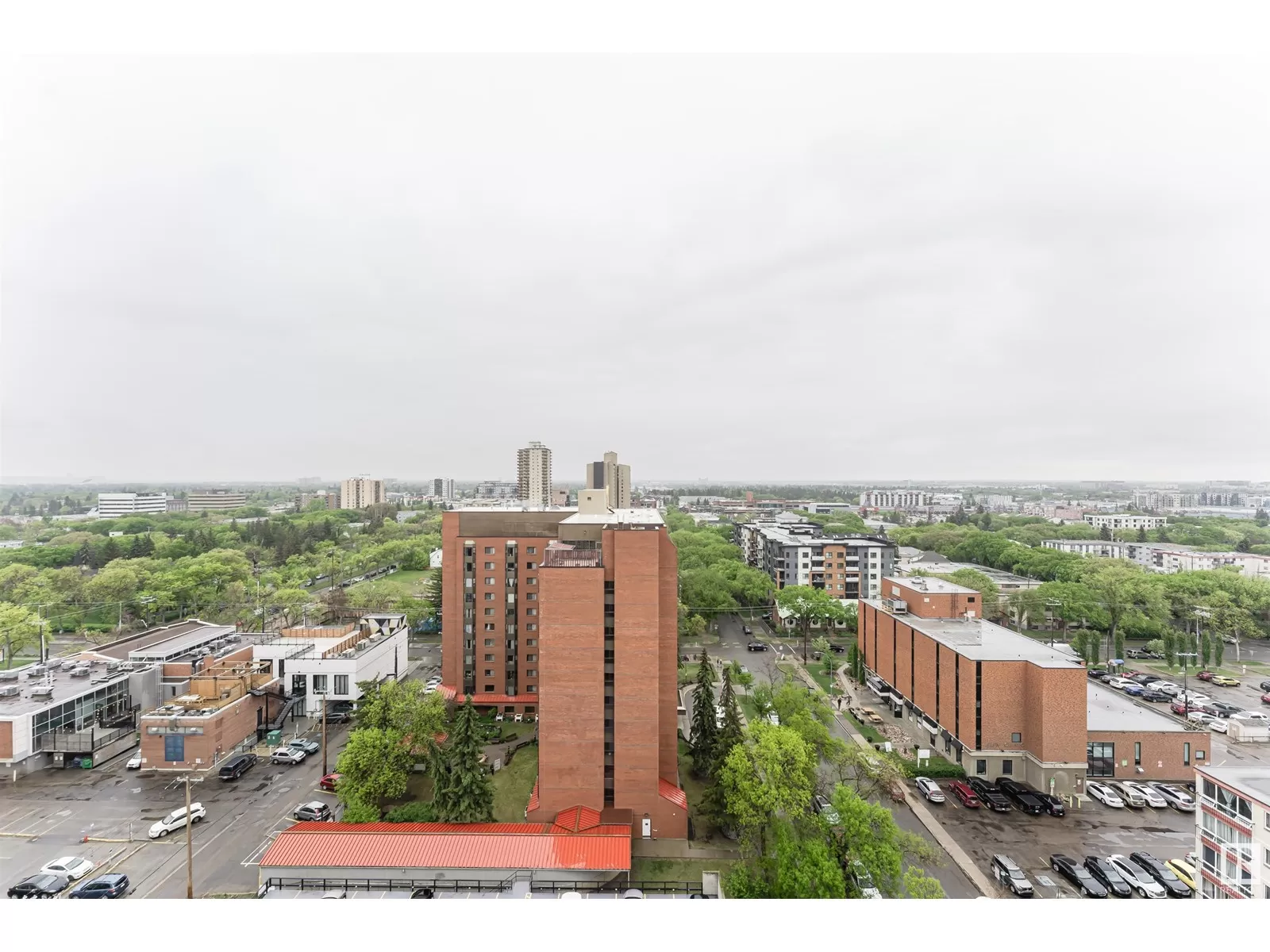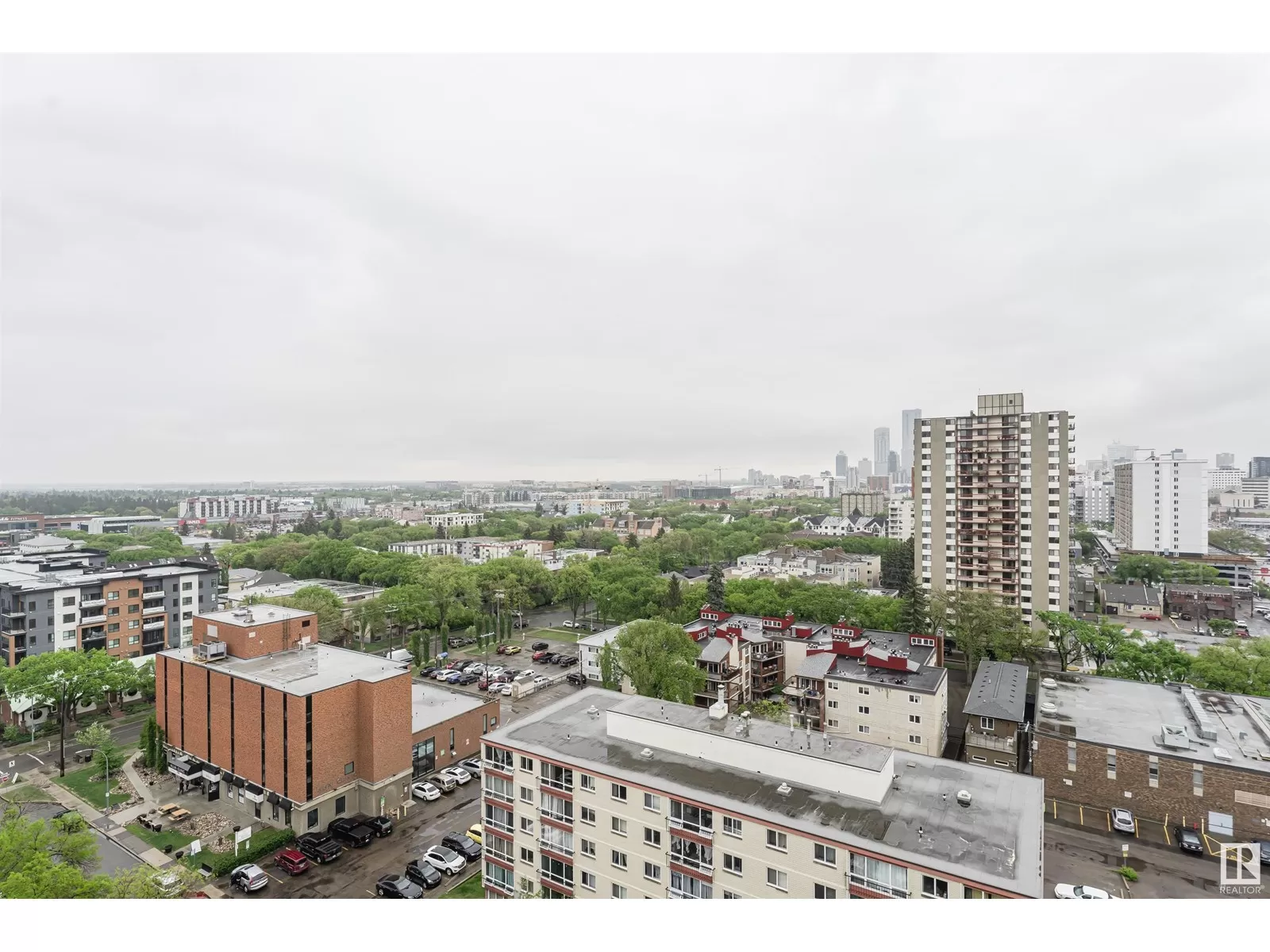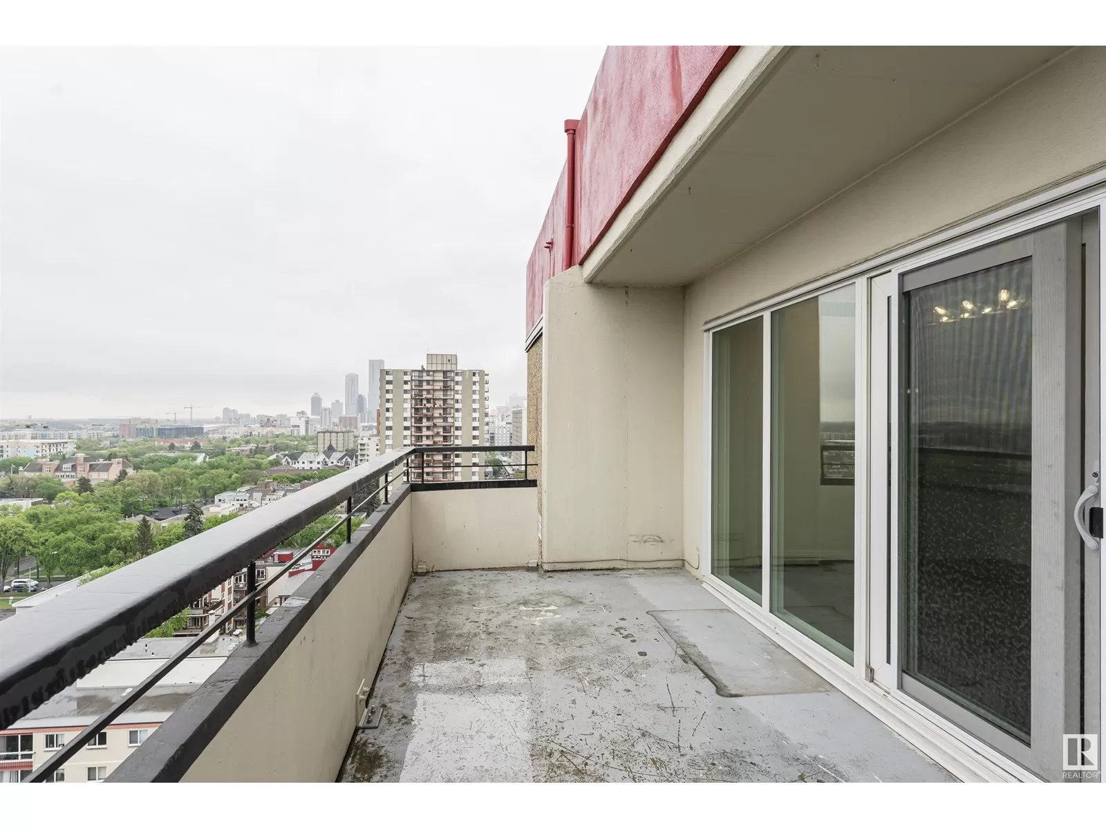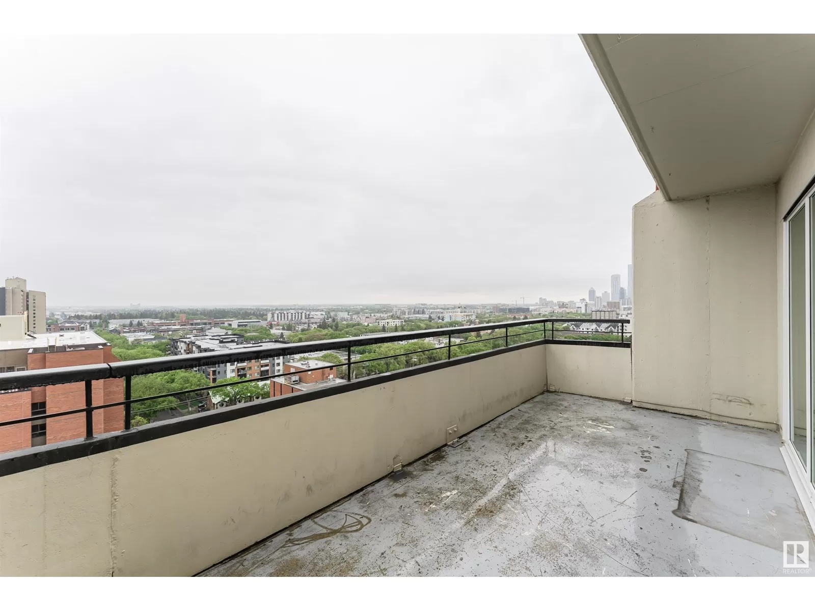 Stunning newly renovated penthouse in Glenora Manor, features 2 bedrooms and 1.5 bathrooms. This 926 sqft condo is located on the 16th floor and offers breathtaking city views. The interior boasts fresh paint, stainless steel appliances, commercial-grade lighting, upgraded hardware, ceramic tile and hardwood floor throughout. With a northeast exposure, the unit includes a massive 140 sqft private balcony, spacious bedrooms, and ample in-suite storage. For your convenience, laundry facilities are located on the same floor, and the unit is equipped with central air conditioning. Building amenities enhance the living experience with an outdoor pool, saunas, social/fitness room, secure underground parking (#73), and an on-site manager. The building is also served by 3 elevators. The condo fee covers all utilities. Recent upgrades to the building include new windows and patio doors. This exceptional location, just steps away from Jasper Ave, River Valley, 124 ST Market and Brewery District. (id:27476)