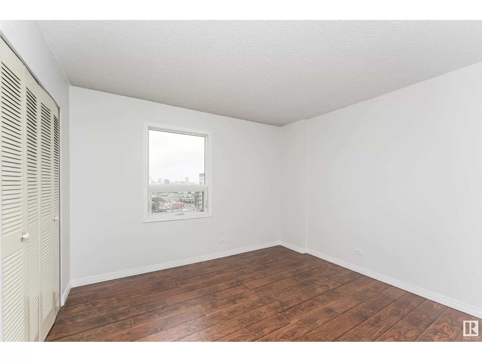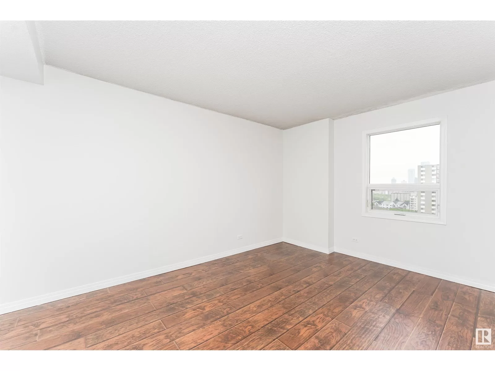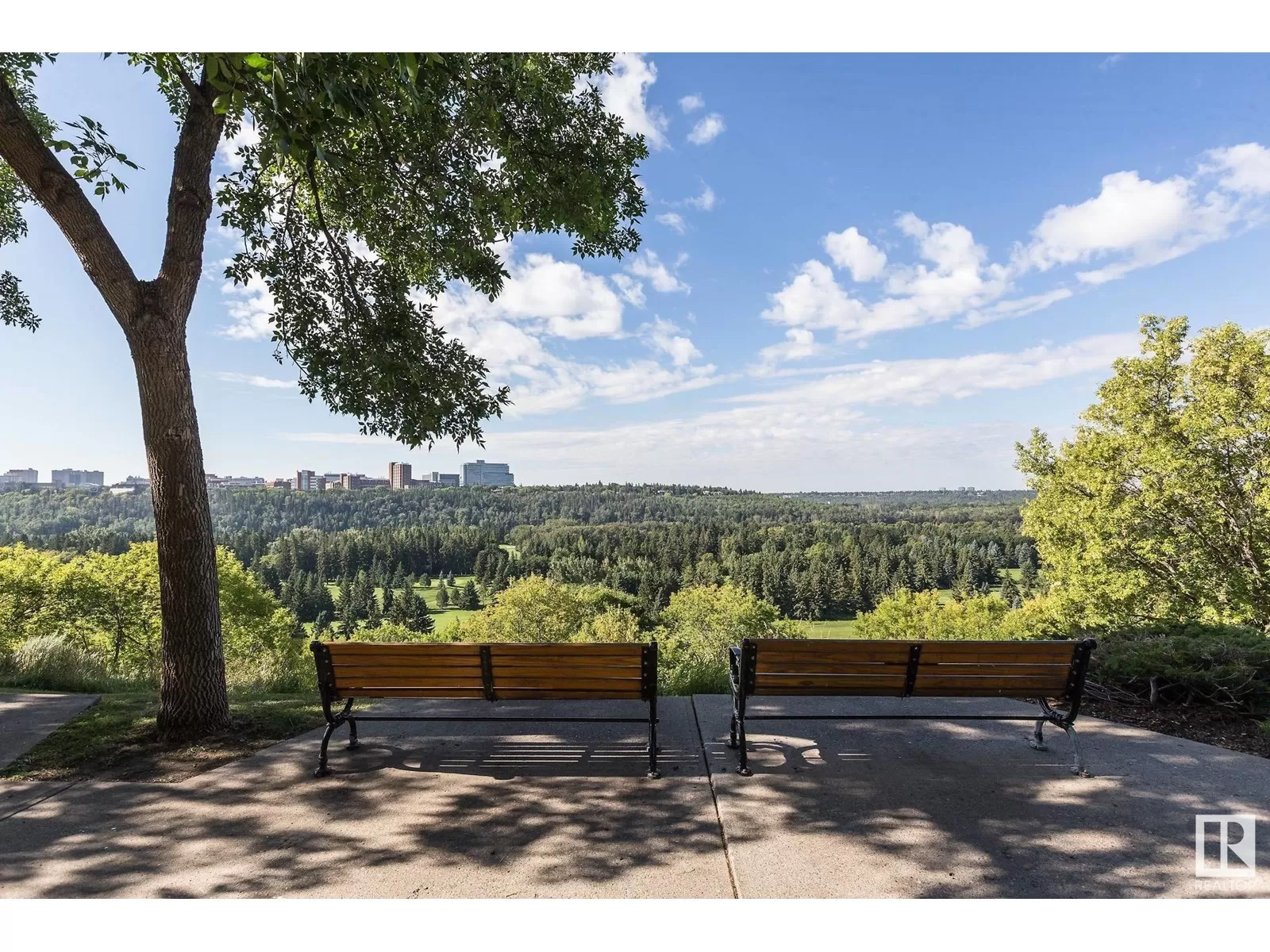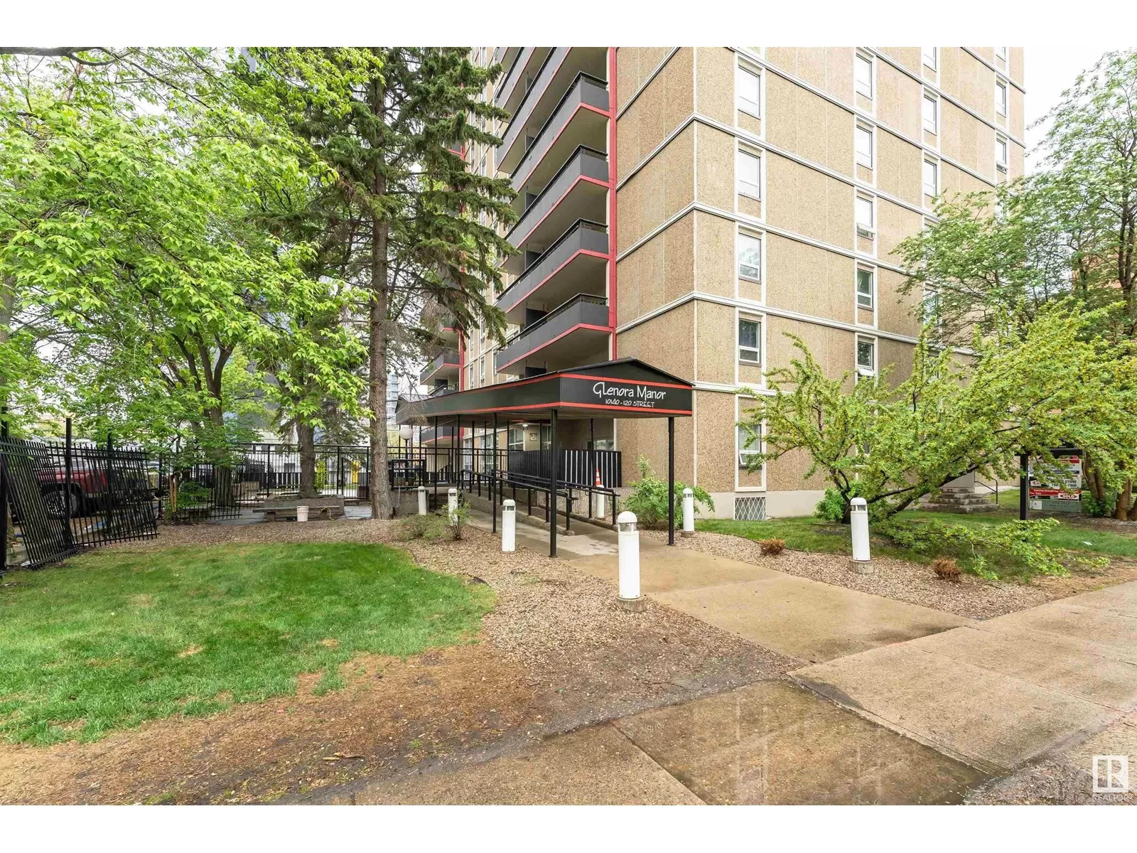 Stunning newly renovated penthouse in Glenora Manor, features 2 bedrooms and 1.5 bathrooms. This 926 sqft condo is located on the 16th floor and offers breathtaking city views. The interior boasts fresh paint, stainless steel appliances, commercial-grade lighting, upgraded hardware, ceramic tile and hardwood floor throughout. With a northeast exposure, the unit includes a massive 140 sqft private balcony, spacious bedrooms, and ample in-suite storage. For your convenience, laundry facilities are located on the same floor, and the unit is equipped with central air conditioning. Building amenities enhance the living experience with an outdoor pool, saunas, social/fitness room, secure underground parking (#73), and an on-site manager. The building is also served by 3 elevators. The condo fee covers all utilities. Recent upgrades to the building include new windows and patio doors. This exceptional location, just steps away from Jasper Ave, River Valley, 124 ST Market and Brewery District. (id:27476)