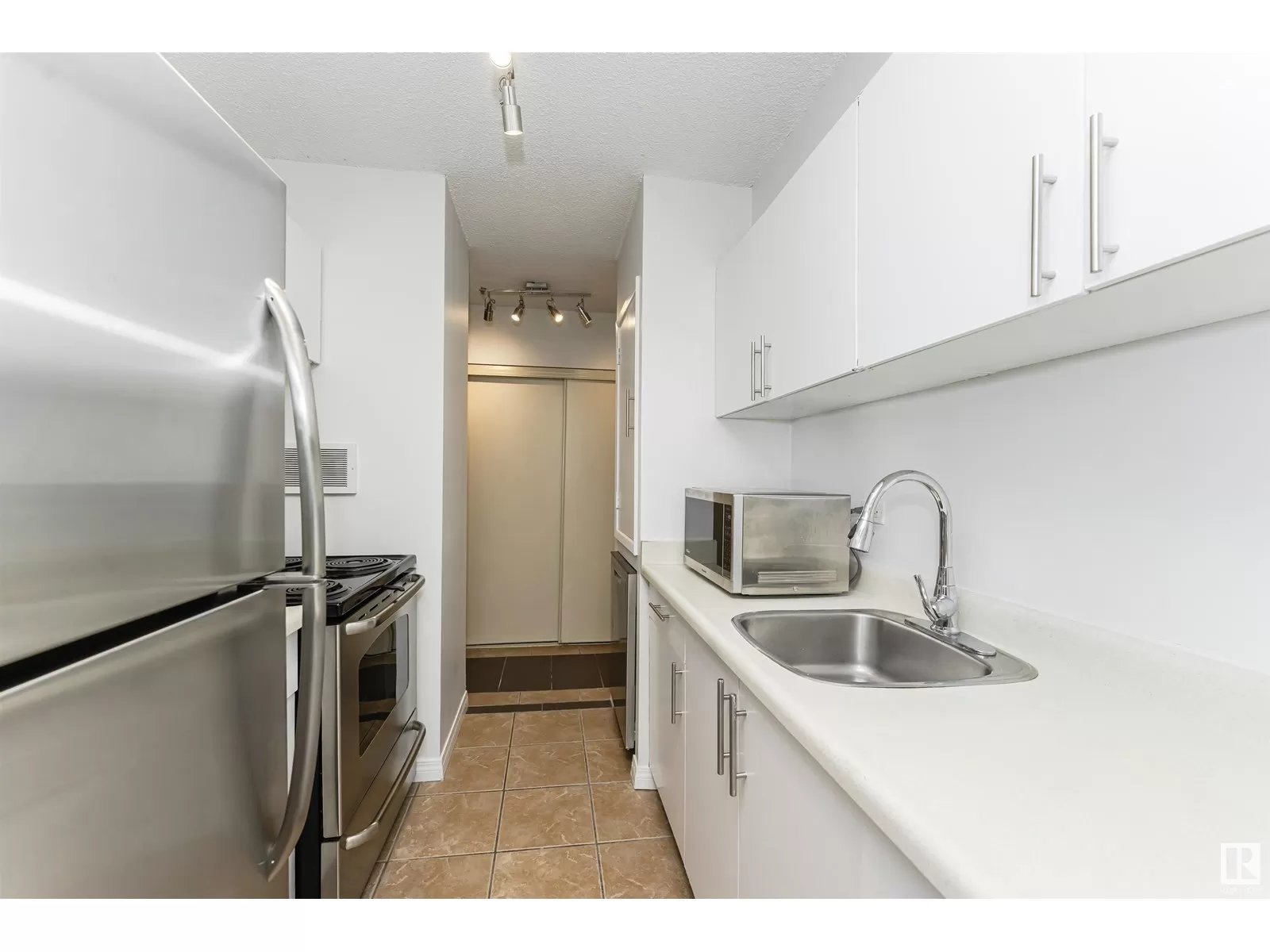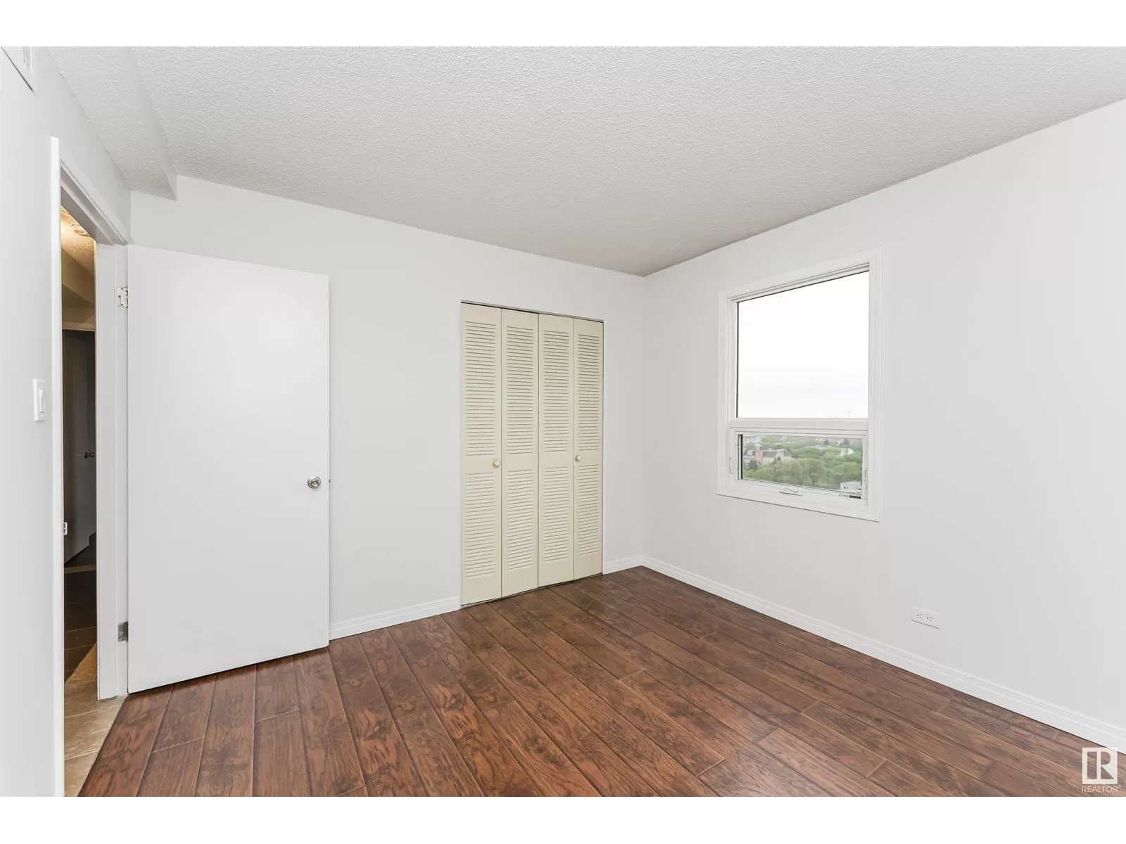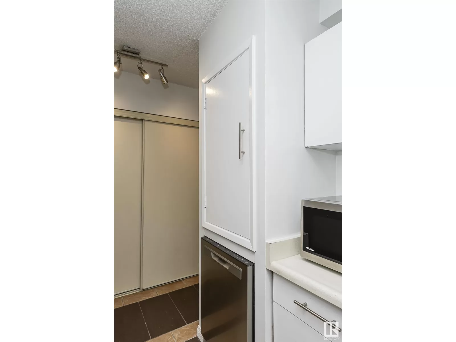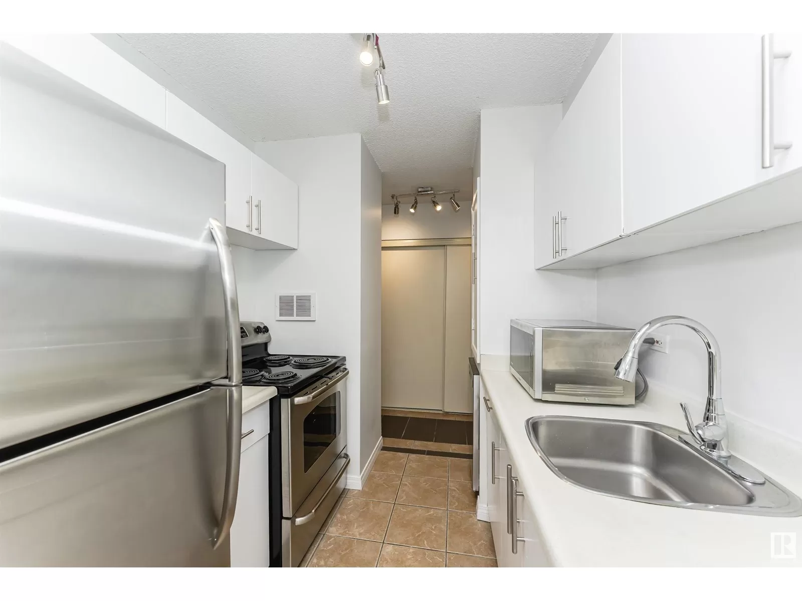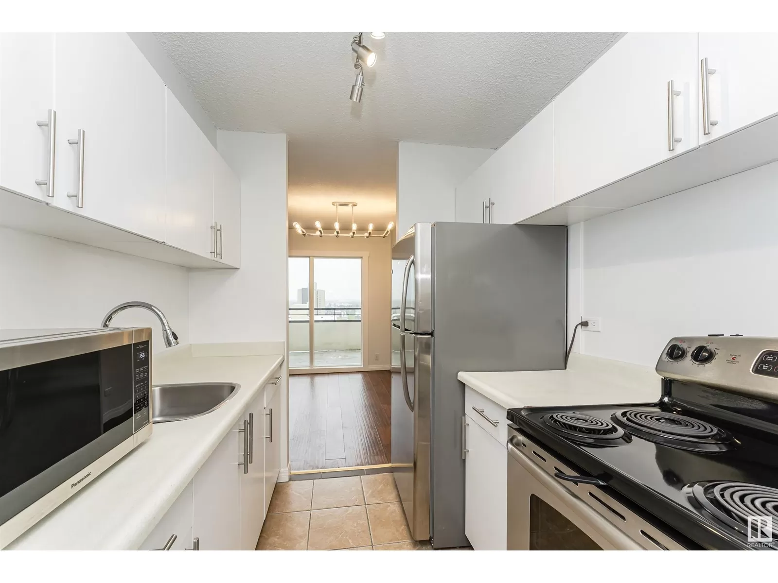 Stunning newly renovated penthouse in Glenora Manor, features 2 bedrooms and 1.5 bathrooms. This 926 sqft condo is located on the 16th floor and offers breathtaking city views. The interior boasts fresh paint, stainless steel appliances, commercial-grade lighting, upgraded hardware, ceramic tile and hardwood floor throughout. With a northeast exposure, the unit includes a massive 140 sqft private balcony, spacious bedrooms, and ample in-suite storage. For your convenience, laundry facilities are located on the same floor, and the unit is equipped with central air conditioning. Building amenities enhance the living experience with an outdoor pool, saunas, social/fitness room, secure underground parking (#73), and an on-site manager. The building is also served by 3 elevators. The condo fee covers all utilities. Recent upgrades to the building include new windows and patio doors. This exceptional location, just steps away from Jasper Ave, River Valley, 124 ST Market and Brewery District. (id:27476)