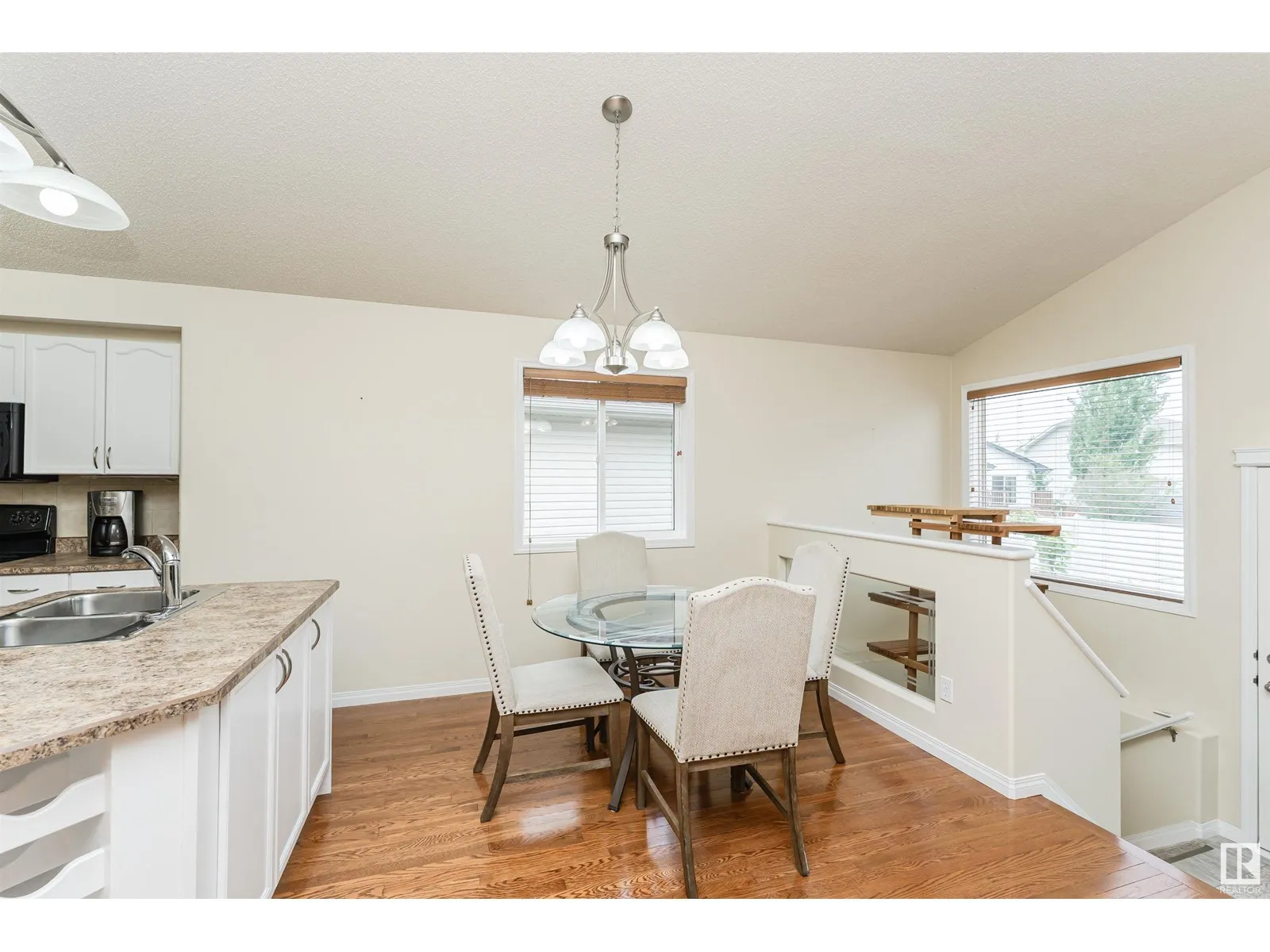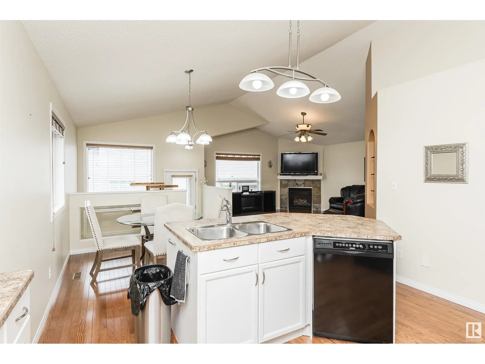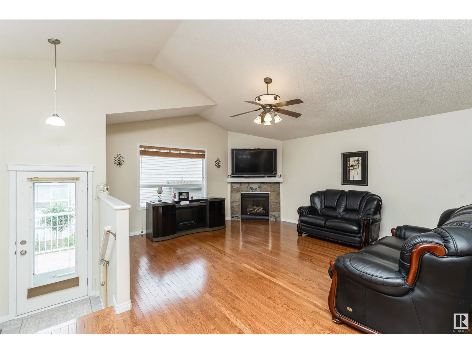 Welcome to this beautiful Air Conditioned 4 Bedroom Bi-level in quiet Canossa, walking distance to Canossa Lake. Enjoy an open concept main floor flooded with natural light, gleaming hardwood floors, soaring vaulted ceilings & a gas FP. Kitchen features a large island w b/in wine rack, abundant cabinets & pot drawers + walk in pantry and is open to large dinette. Upper Primary Bedroom is private and spacious w vaulted ceiling, walk-in closet, window seat & 4 pcs ensuite. Fully finished lower level has large family room with 2nd gas FP, 2 bedrooms, a full bathroom + plenty of storage. The West facing fenced yard is an outdoor oasis. Enjoy a huge maintenance free deck and railing w electric awning + gas line for BBQ. Stunning landscaping & perennials! Heated finished double garage is freshly painted including floor with floor drain + water faucets. New shingles 2016, Bsmt flooring 2021, Furnace 2020, A/C 2021, H2O Tank 2017, and repainted 2020. Easy access to shops, schools, all amenities & Anthony Henday. (id:27476)