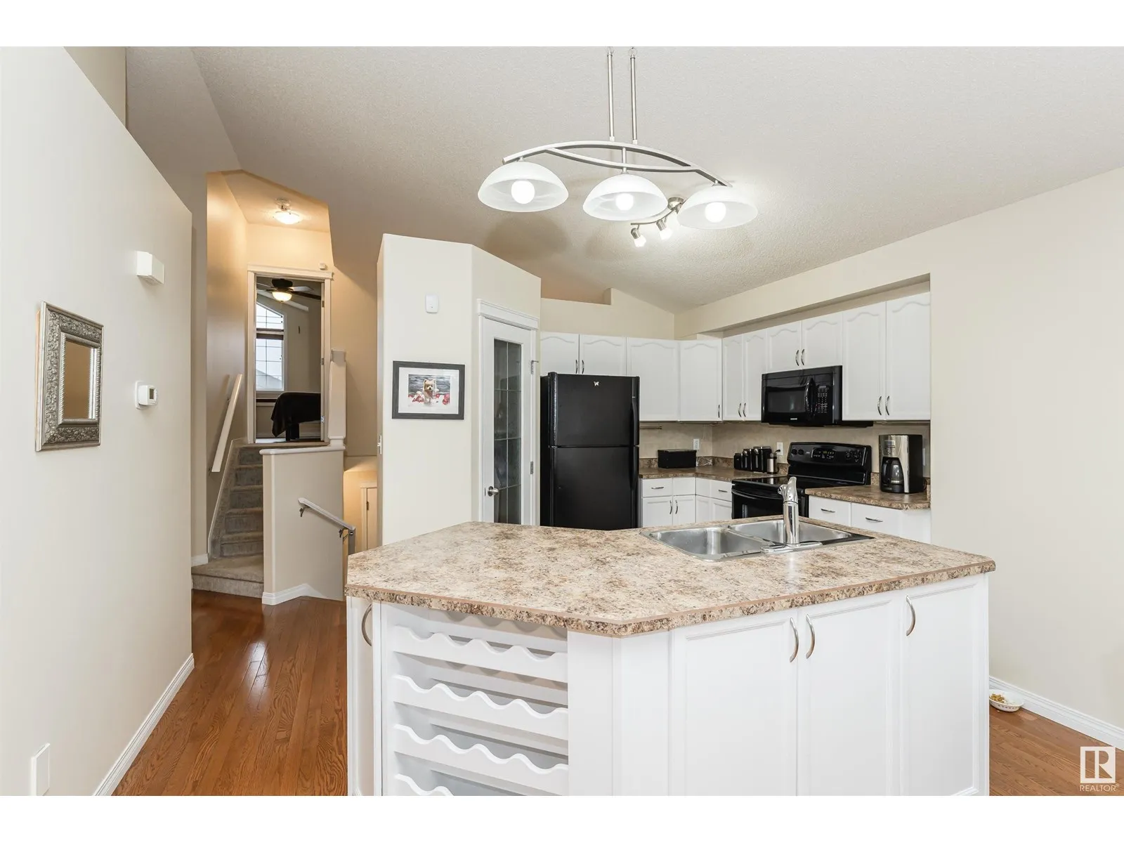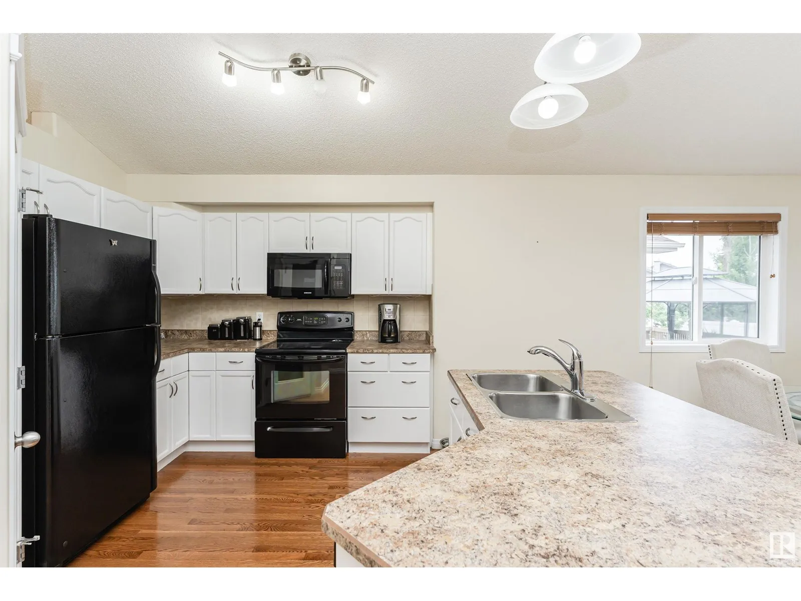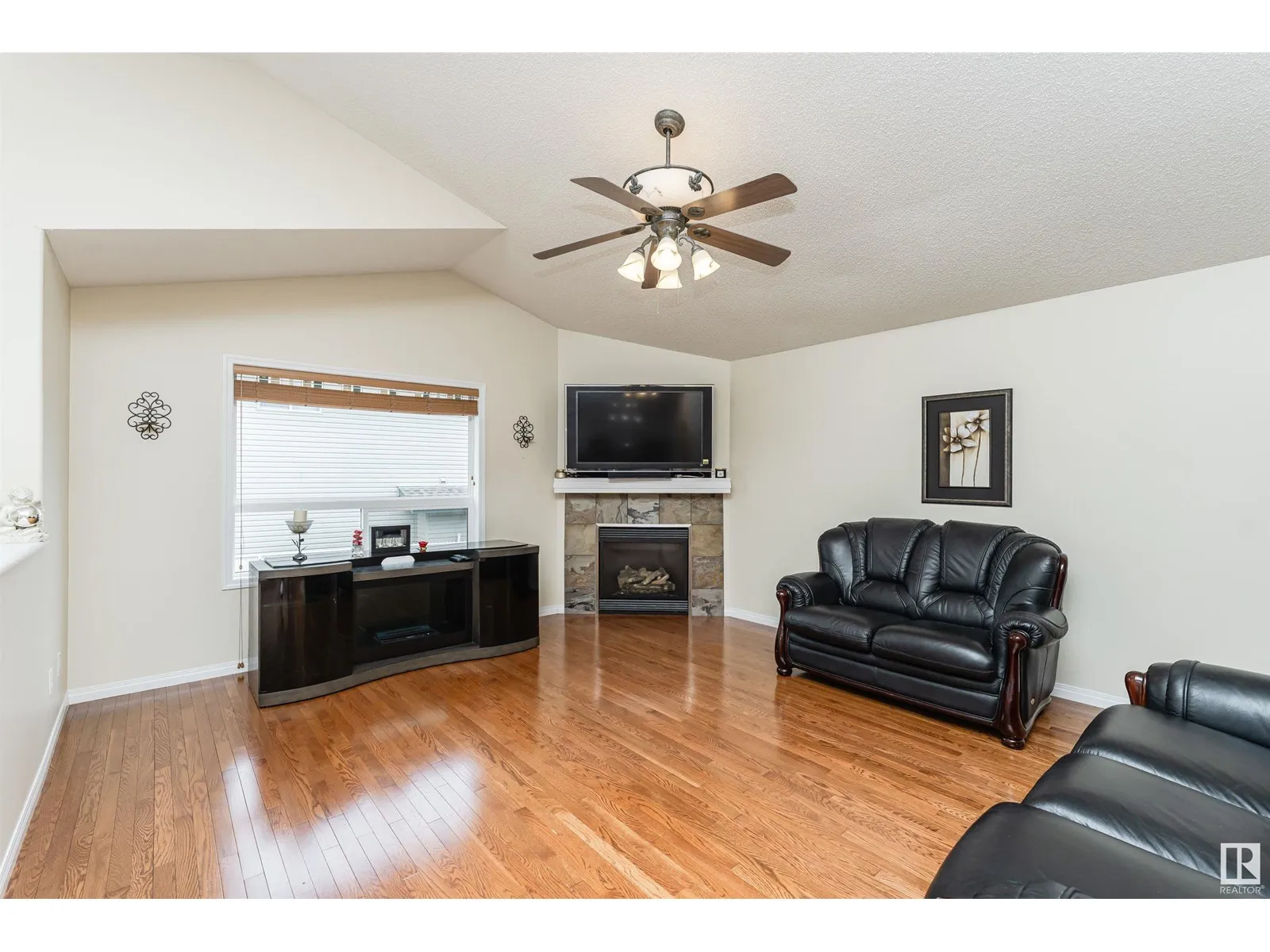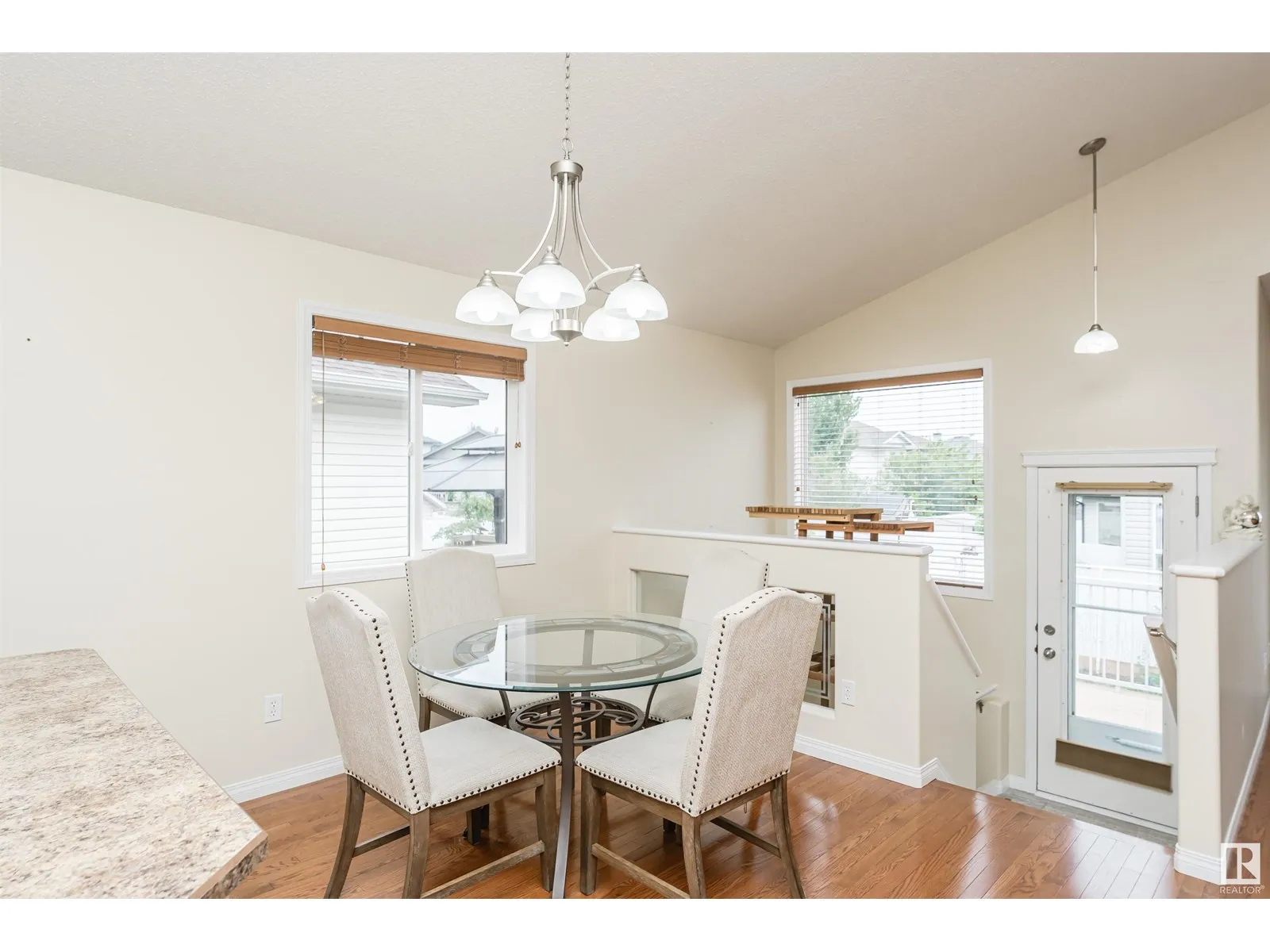 Welcome to this beautiful Air Conditioned 4 Bedroom Bi-level in quiet Canossa, walking distance to Canossa Lake. Enjoy an open concept main floor flooded with natural light, gleaming hardwood floors, soaring vaulted ceilings & a gas FP. Kitchen features a large island w b/in wine rack, abundant cabinets & pot drawers + walk in pantry and is open to large dinette. Upper Primary Bedroom is private and spacious w vaulted ceiling, walk-in closet, window seat & 4 pcs ensuite. Fully finished lower level has large family room with 2nd gas FP, 2 bedrooms, a full bathroom + plenty of storage. The West facing fenced yard is an outdoor oasis. Enjoy a huge maintenance free deck and railing w electric awning + gas line for BBQ. Stunning landscaping & perennials! Heated finished double garage is freshly painted including floor with floor drain + water faucets. New shingles 2016, Bsmt flooring 2021, Furnace 2020, A/C 2021, H2O Tank 2017, and repainted 2020. Easy access to shops, schools, all amenities & Anthony Henday. (id:27476)