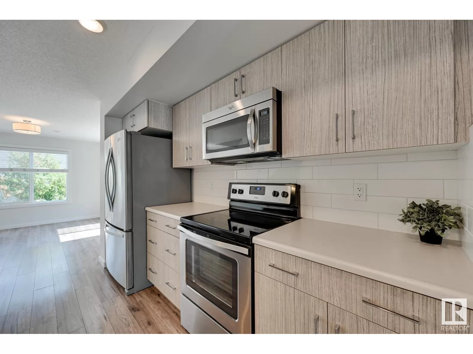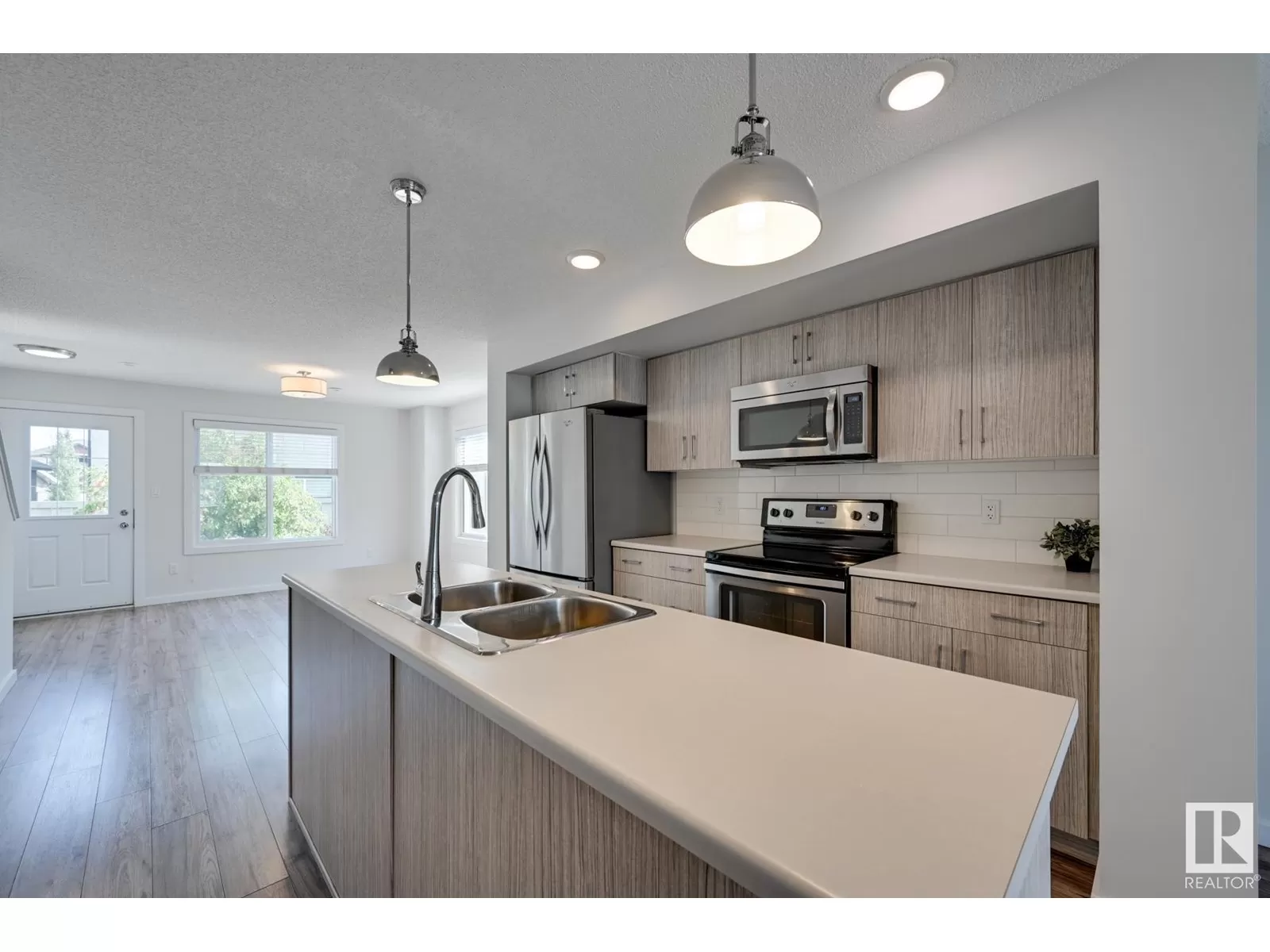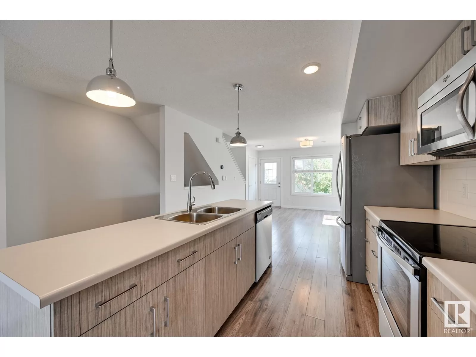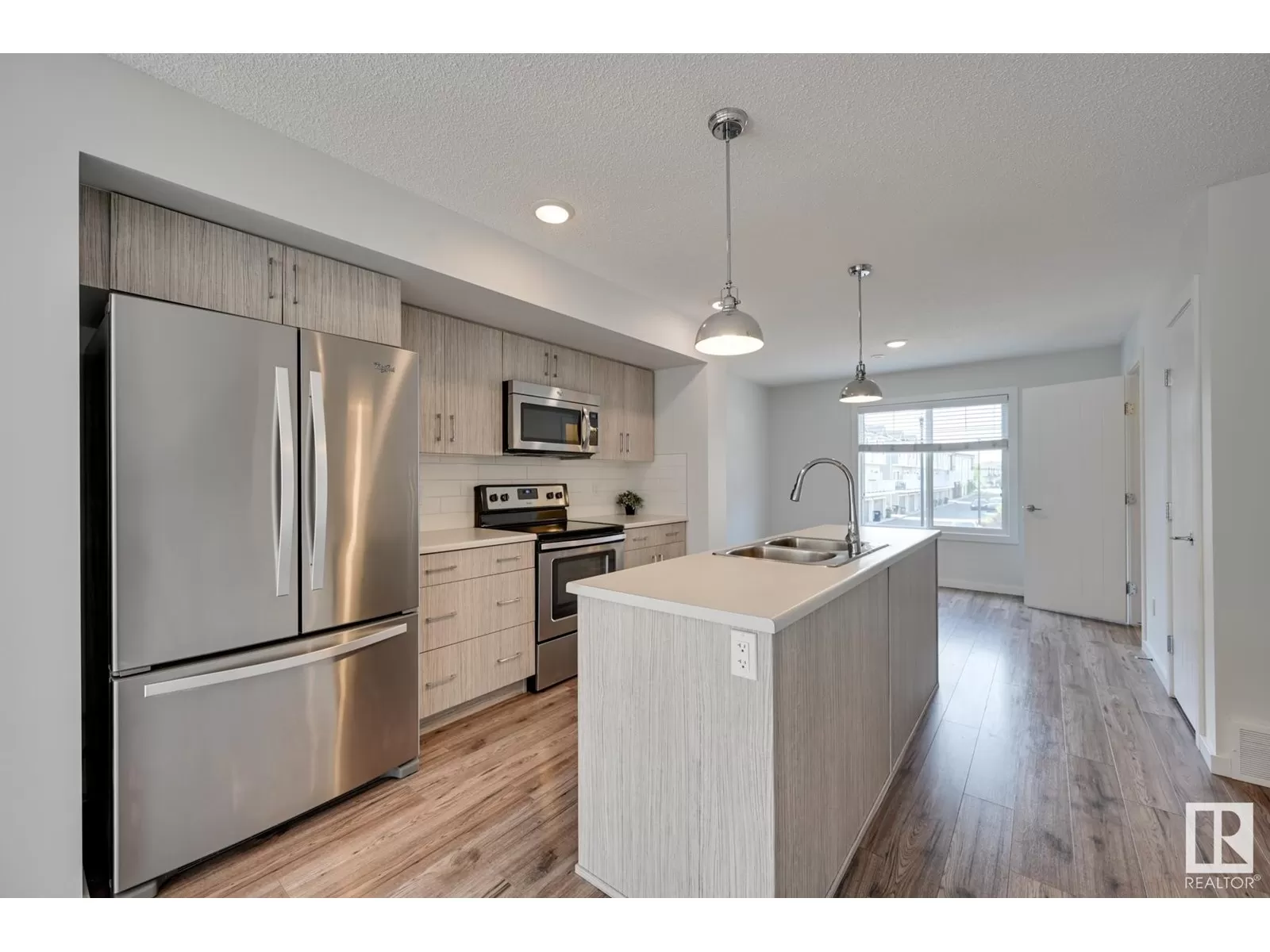 Welcome to this lovely townhouse in Laurel Landing! This is a perfect property for first-time home buyers & investors. This 2 bedrm END UNIT home boasts an open concept, ample natural light, & wide-plank flooring throughout the main level. The kitchen is spacious w/ stainless steel appliances, pantry, full height cabinetry, subway tile backsplash & large island. The upper level offers 2 bedrms, transom windows, & both w/ walk-in closets: the primary including a 4 piece ensuite dual sinks, & walk-in shower. Lower level has an attached single car garage, & mudroom great for the cold winters. This nicely located end unit, & has a desirable low maintenance fenced-in yard to enjoy entertaining in the warmer months. Higher energy efficiency w/tankless hot water & heat recapture for a lower utility bill. This well maintained complex offers visitor parking & is walking distance to tons of amenities. Located close to shopping, a community playground, community league, newer rec centre, schools & public transit. (id:27476)