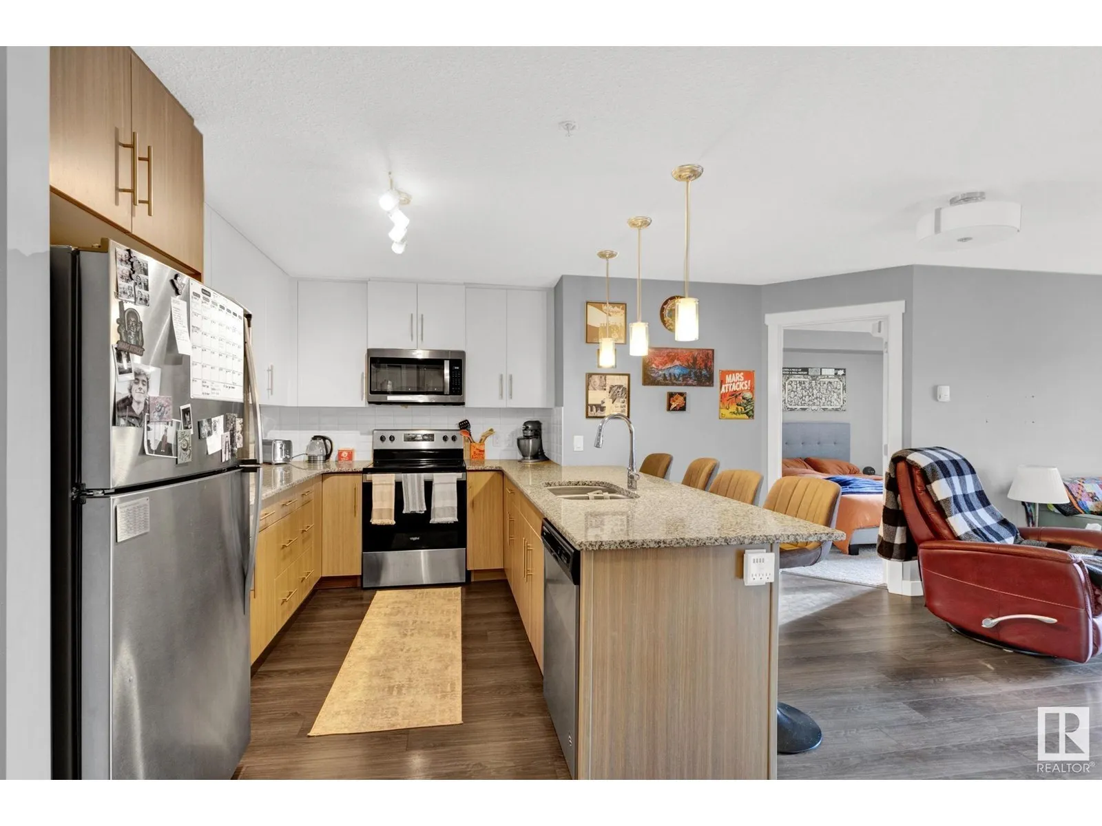 For Investors, Leased till 2026 July for $1950/month. 884 sqft (builder measurement) two bedrooms and two full baths. The Unit has one underground parking, and the condo fee covers all the utilities (Electricity, heat, water, sewer, snow removal and many more). It is suitable for the downtown commuter. The Unit has a balcony with a nice view and a natural gas outlet for your BBQ set. Parks, shopping stores and playgrounds are nearby; Clareview Community Recreation Centre is beside the condominium. The building is quiet and clean. The kitchen offers plenty of cabinets with an open concept. The primary bedroom has a walk-in closet and a 4pc ensuite bathroom. The secondary bedroom is generous in size and located on the other side of the living room. The in-suite laundry room has a front-facing washer, dryer, and storage space next to the second 4pc washroom. It is a few minutes from the Clareview LRT transit and Bus station. There is easy access to Anthony Henday and Yellowhead Trail, Belmont Shopping. (id:27476)