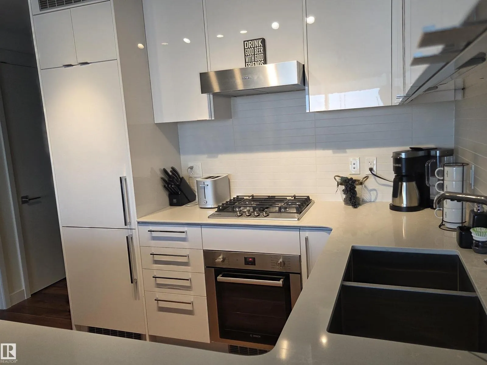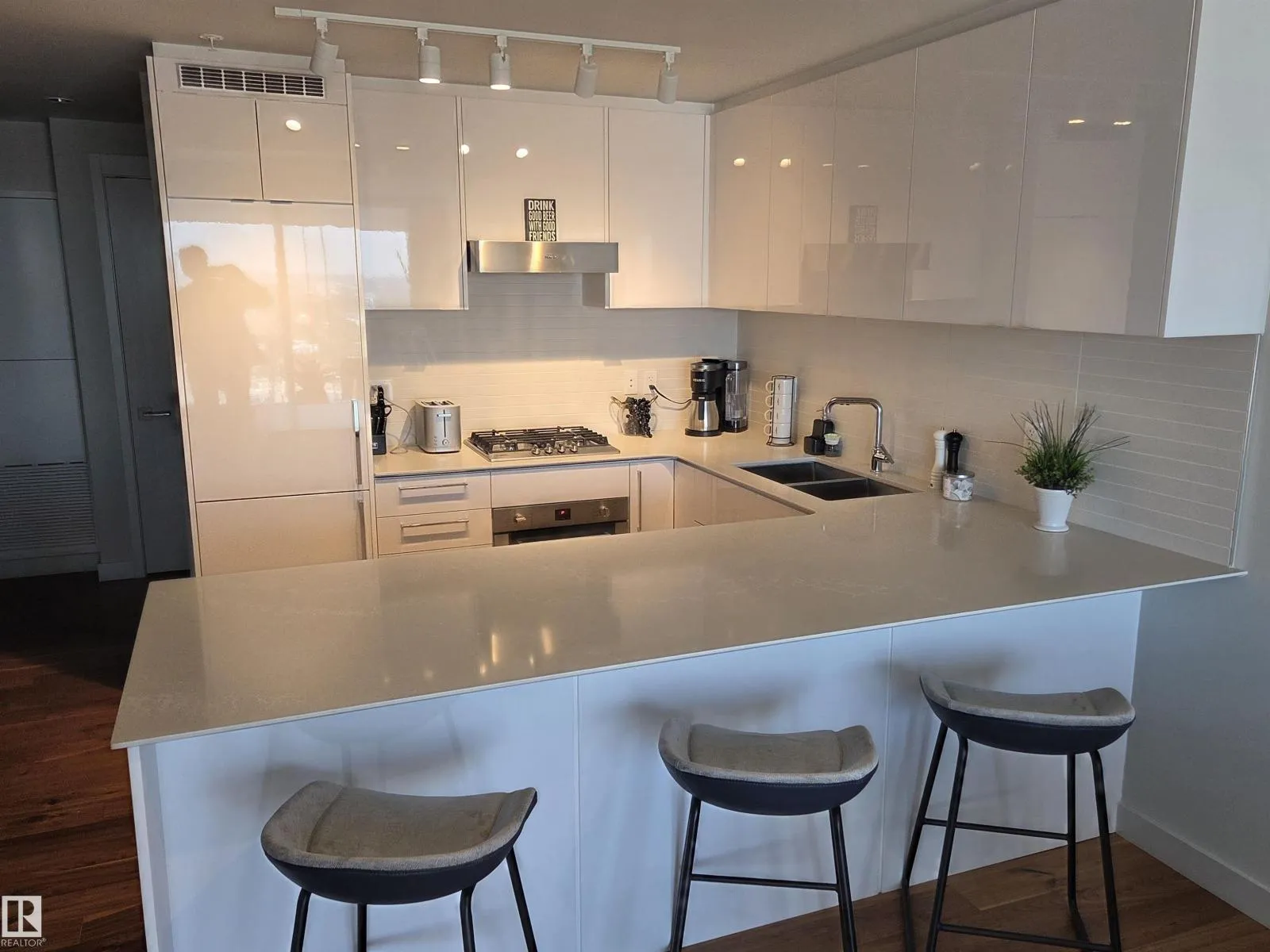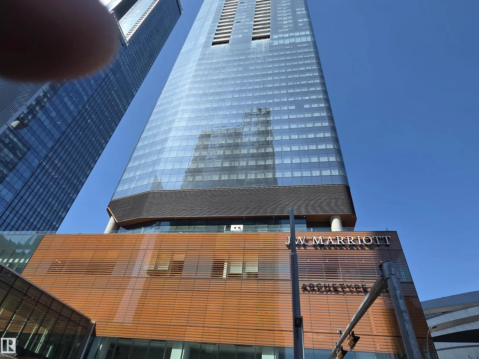 Fall in love with this stunning professionally designed suite on the 42nd Floor!! The highest One Bedroom plus Den suite in Edmonton!! West facing with floor-to-ceiling curtain-wall windows bathe this suite in breathtaking afternoon and golden hour sunlight. One of Edmonton's finest year-round views!! Every detail of this suite radiates luxury featuring; Bosch appliance pkg, gas cooktop, premium interior finishes, quartz countertops, plank flooring, etc. Underground heated parking is included. Also includes a membership to the Archetype fitness facility. Legends Private Residences is in a prime location with access to the JW Marriott Hotel services and the numerous amenities in Edmonton's Ice District. The upscale lounge, pool and spa, restaurants and Rogers Place are just a short walk away via the indoor pedway. Truly an amazing property!! (id:27476)