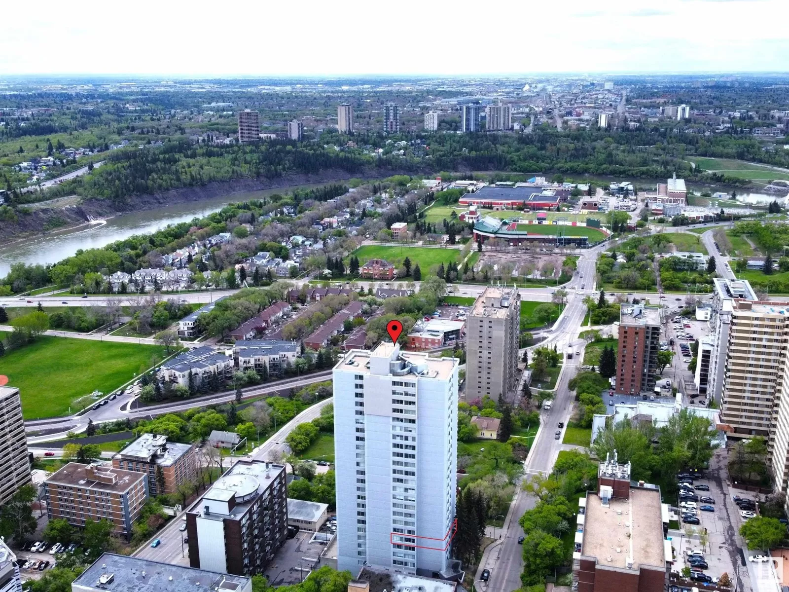 SPECTACULAR RIVER VALLEY VIEWS from this 1,856 SF, 3 Bedroom, 2 bathroom CORNER unit in the prestigious VALLEY TOWERS. Sweeping South facing views from your Living & Dining Room with tons of natural light, Oak Cladding, built in wet bar & cabinetry plus direct access to your private patio with breathtaking River Valley Views. Black & White Poggenpohl designer kitchen, Kitchen Aid Appliances, & functional island. The primary bedroom includes a spacious closet & a renovated spa like ensuite with walk in shower. 2 additional bedroom with lively City Views, a renovated 3 pc bath & insuite Laundry. Additional features including Air Conditioning, secured heated titled underground parking, & a storage unit. Enjoy the NEWLY RENOVATED AMENITIES AREA with salt water pool, jacuzzi, steam room, exercise room, games room, social room, workshop, & patio. Located steps from the majestic RIVER VALLEY, ICE DISTRICT, shopping, restaurants, golf, transportation & more!! (id:27476)
