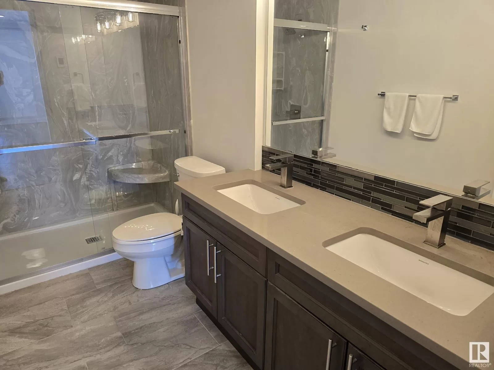 HUGE & stunning 1222 sq.ft. 2 bedroom + DEN, 2 bathroom unit in a CONCRETE & STEEL adult only 18+ building. The best part of owning this property? It is SOUTH facing with a VIEW OF THE POND! Talk about tranquility! This quiet unit has so many desirable features like the 10 foot ceilings, quartz counter tops throughout (including a waterfall edge in the kitchen), kitchen cabinetry & backsplash to the ceiling, heated tile floors in the en suite, an abundance of pot lights, & TWO UNDERGROUND stalls! You will love that view from the second you enter your new home, & you can see it from every room except the den. The open concept of the kitchen, dining area, & living room makes the condo feel even larger. The primary bedroom is large enough for a king suite, & the second bedroom is also a good size. This is the perfect property for someone looking for a quiet place to call home while being walking distance to tons of restaurants, shopping, pathways, & more, with a full-service gym steps from your unit door! (id:27476)