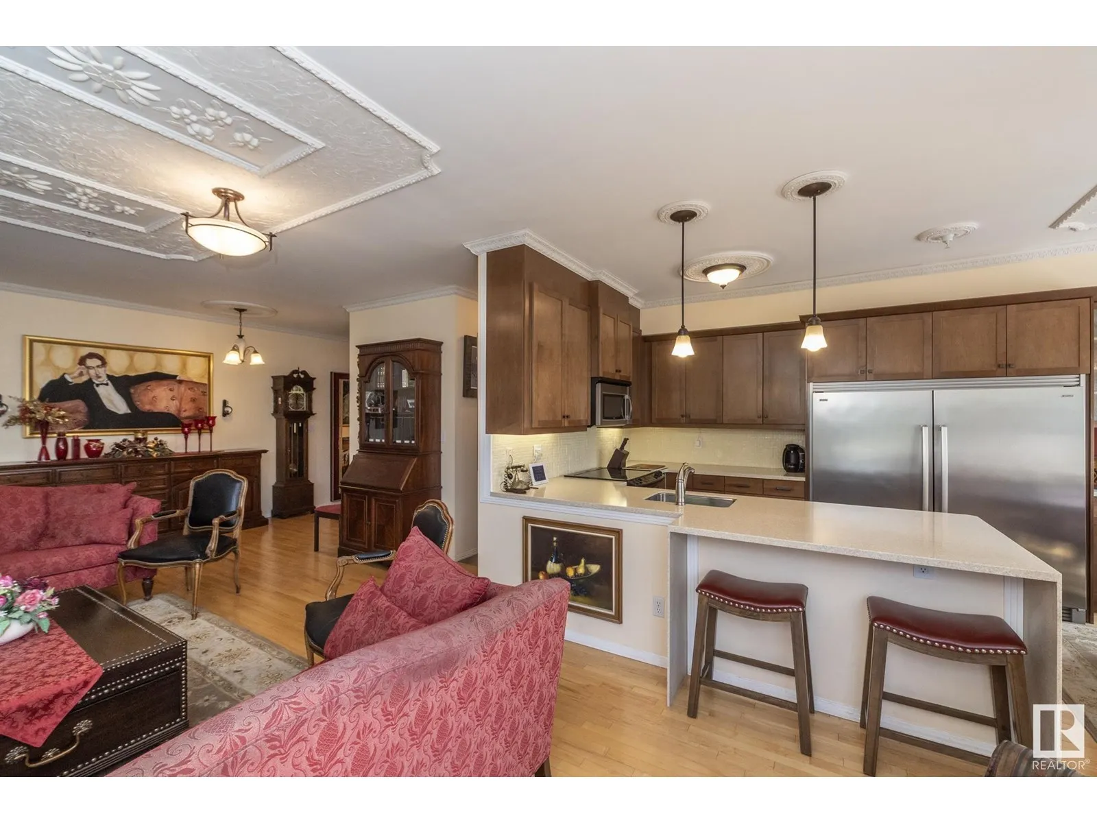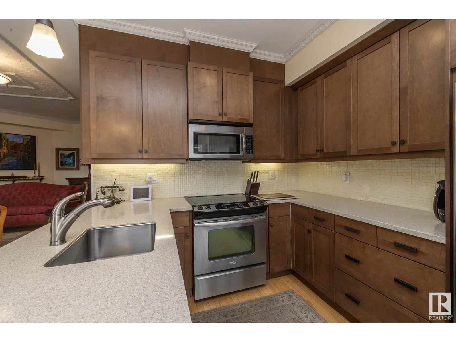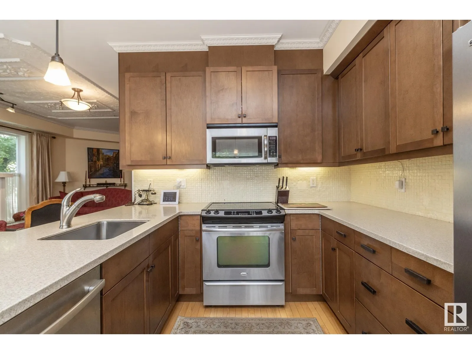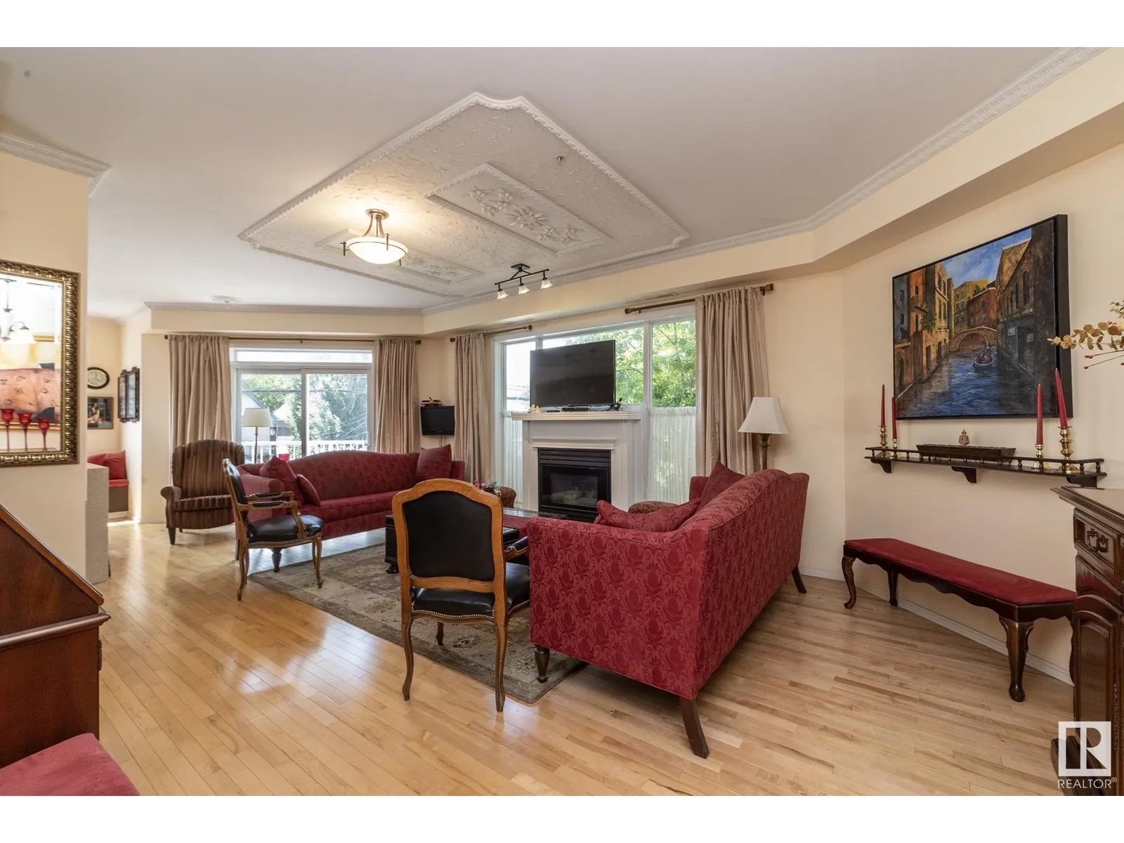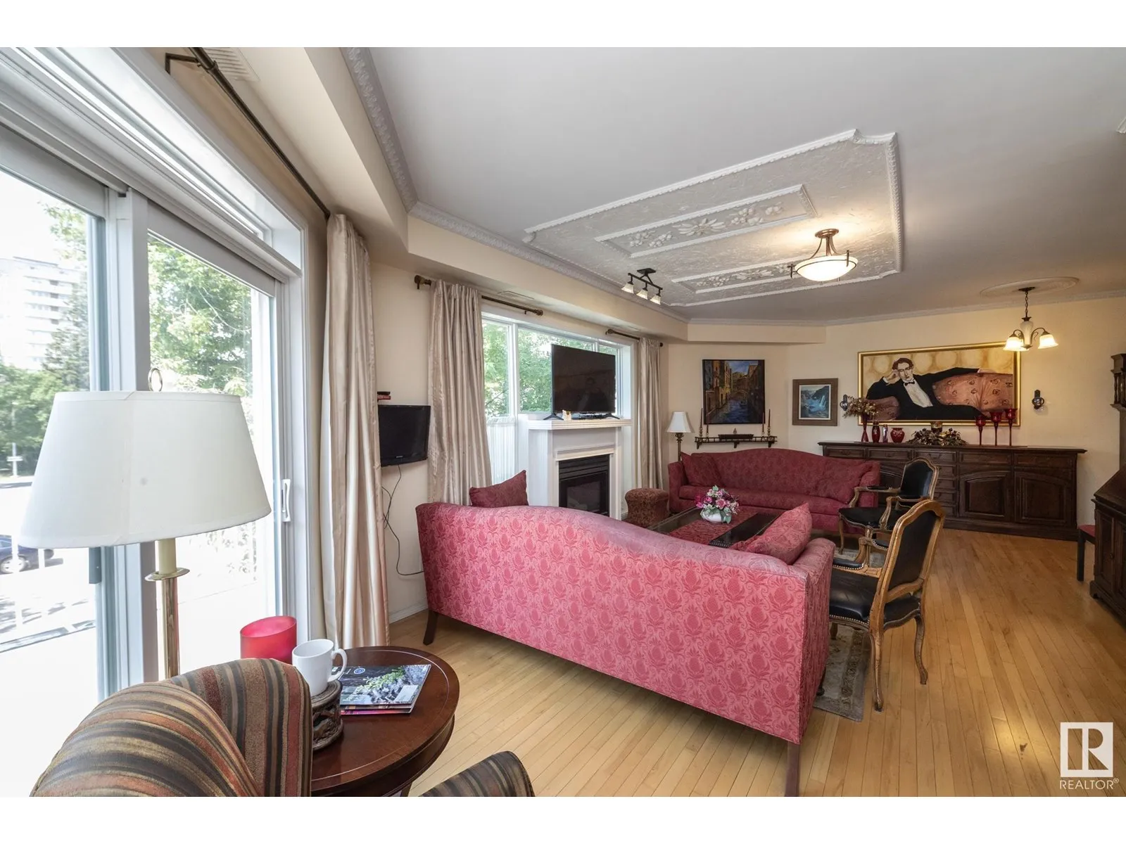 Perfect for the professional! Want to live in one of the city's most sought after areas? This lovely upgraded 2 bedroom, 2 bathroom condo in Garneau Court checks all the boxes and it's just steps from the University of Alberta. This stylish unit features hardwood floors, granite countertops, a commercial-style fridge/freezer, stainless steel appliances, & custom Hunter Douglas blinds. Elegant crown mouldings, sculpted plaster ceilings, & a cozy gas fireplace add character & warmth. Enjoy the private, oversized southwest-facing balcony located high above ground level. Additional features include air conditioning, in-suite laundry, a titled underground parking stall with a storage cage, & a secure building with elevator & interior courtyard. Recent capital improvements to the building include boiler system, elevator, & enhanced building security. This well-managed complex offers peace of mind and unbeatable access to U of A, Whyte Avenue, shopping, restaurants, and transit. Take a peek & fall in love. (id:27476)