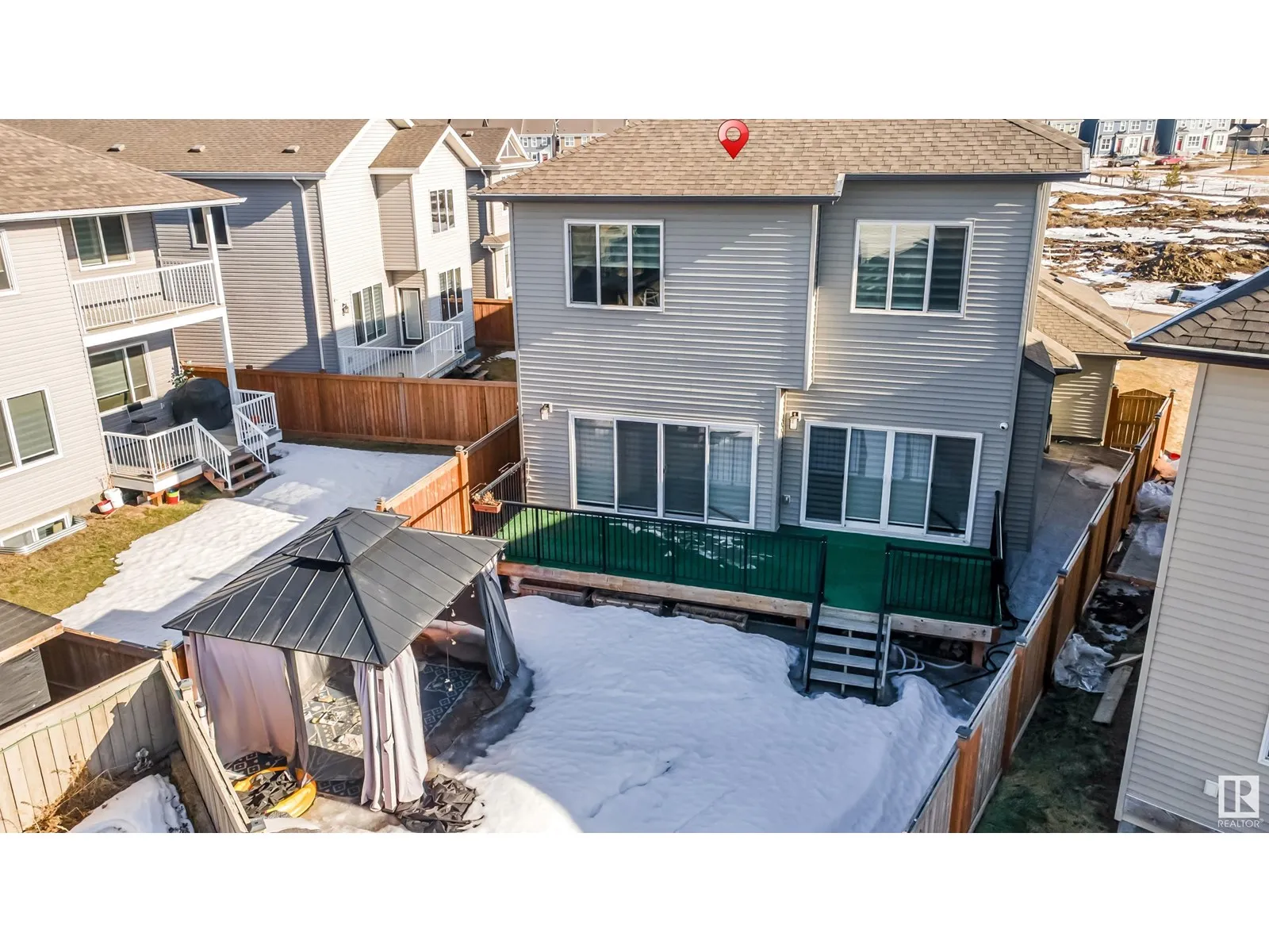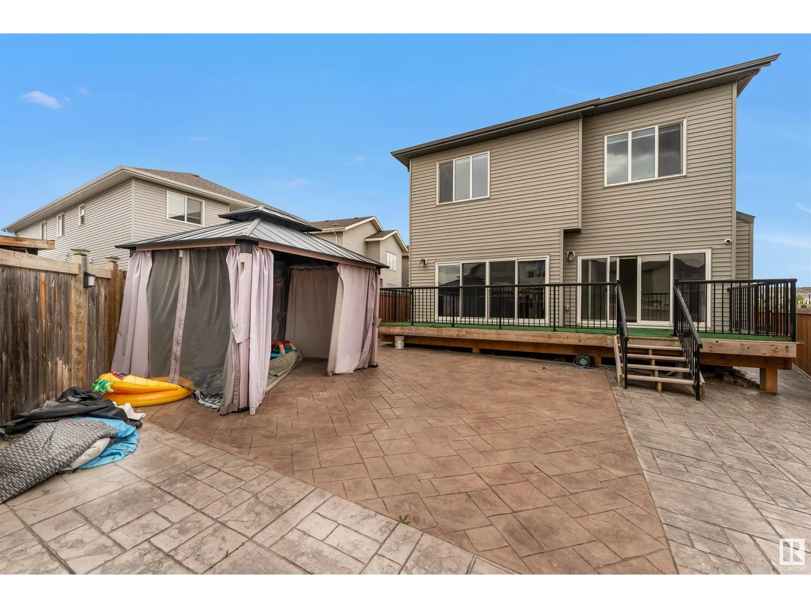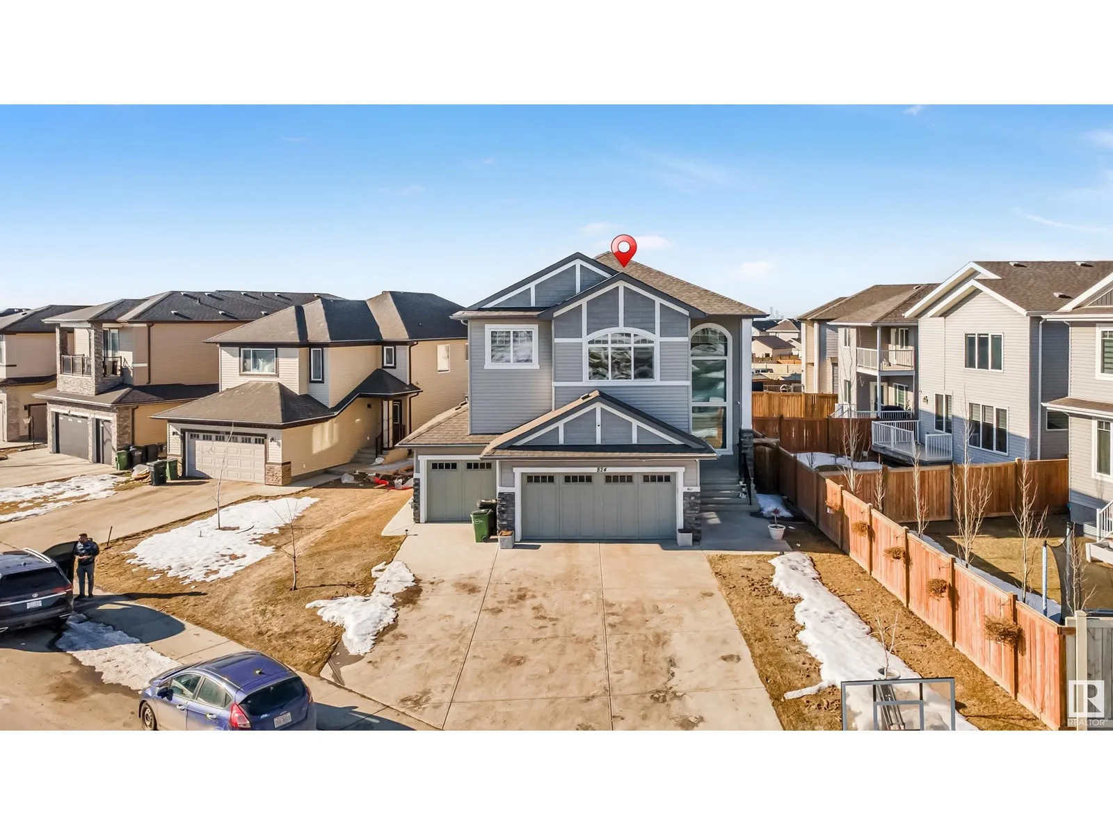 Stunning Custom Home â Over 4,485 Sq.Ft. of Luxury Living! This exceptional home offers 6 bedrooms, 5 full bath, a TRIPLE car garage, and fully FINISHED basement with 1 Bedroom, Rec area, full Bath & rough-ins for Kitchen and SEPERATE ENTERANCE. Step into the grand open-to-below living room, attached to the dining area. Family room and an extended kitchen, both overlooking large window AND complemantry SPICE KITCHEN with PANTRY. Main floor has a FULL Bedroom with ensuite, and POWDER ROOM. Upstairs, 2 MASTER Bedrooms with ensuites and WIC, plus two additional bedrooms with Jack & Jill. Bonus room and convenient upstairs laundry with SINK, providing function and flexibility for the whole family. Enjoy the maintenance-free stamped concrete backyard & sidewalks, a large deck, and the comfort of central A/C. Located near a Kâ9 school, new high school, REC centre, cinema, shopping, grocery stores, and with easy access to Whitemud Drive and Anthony Henday, this home offers both luxury and unbeatable convenience. (id:27476)