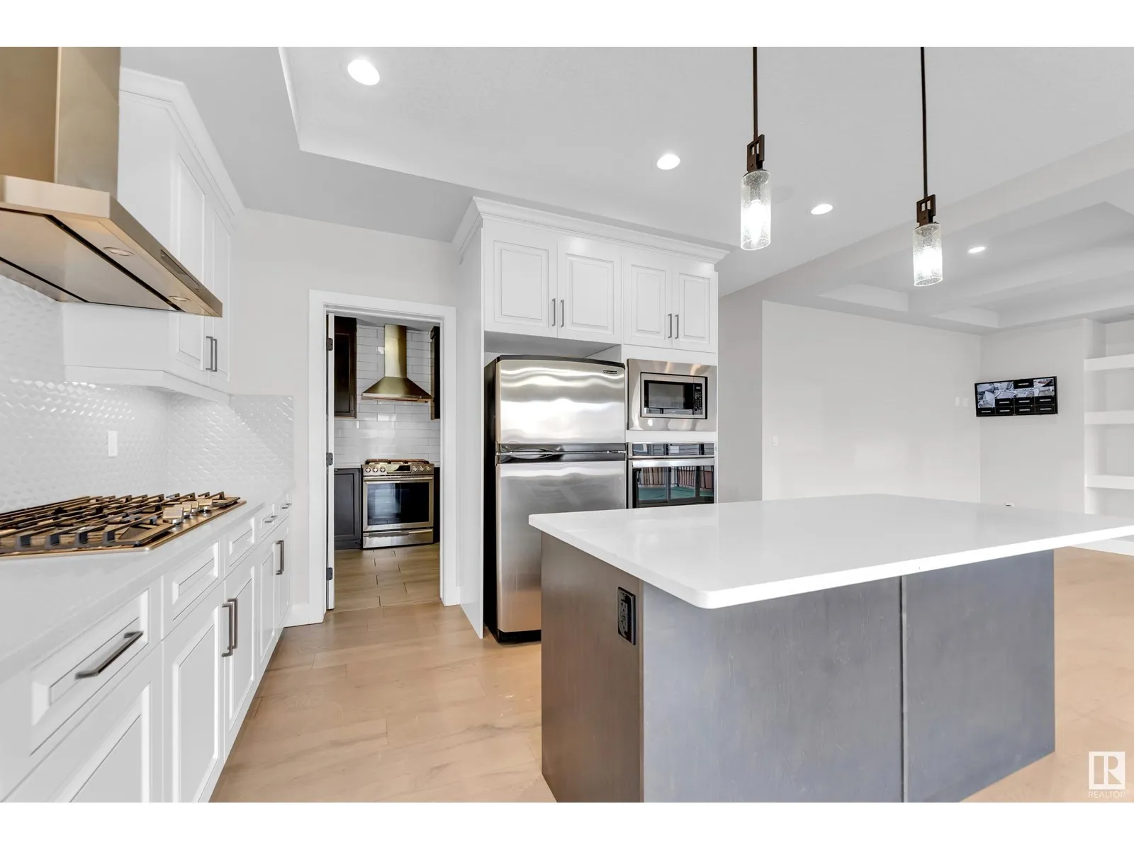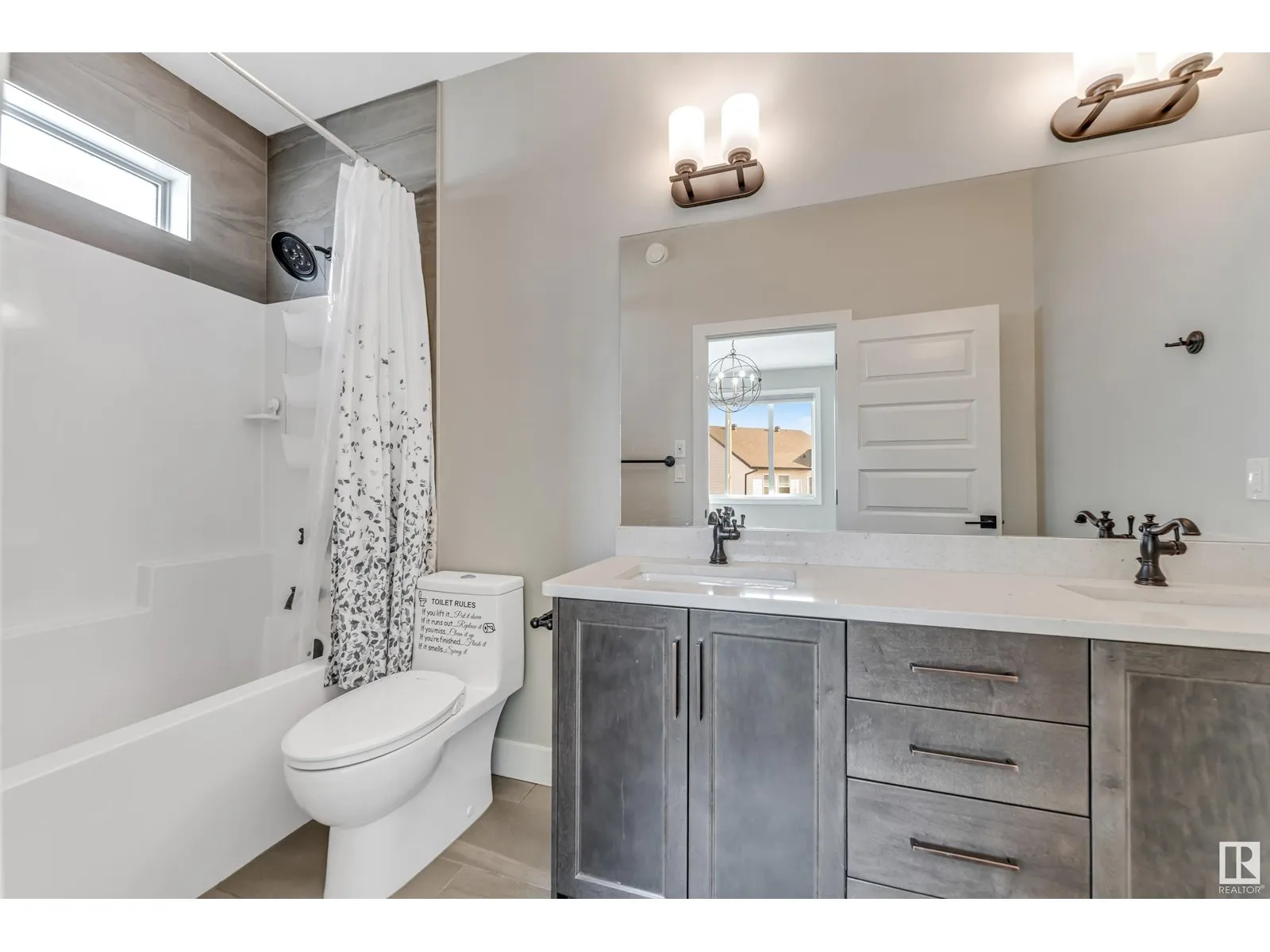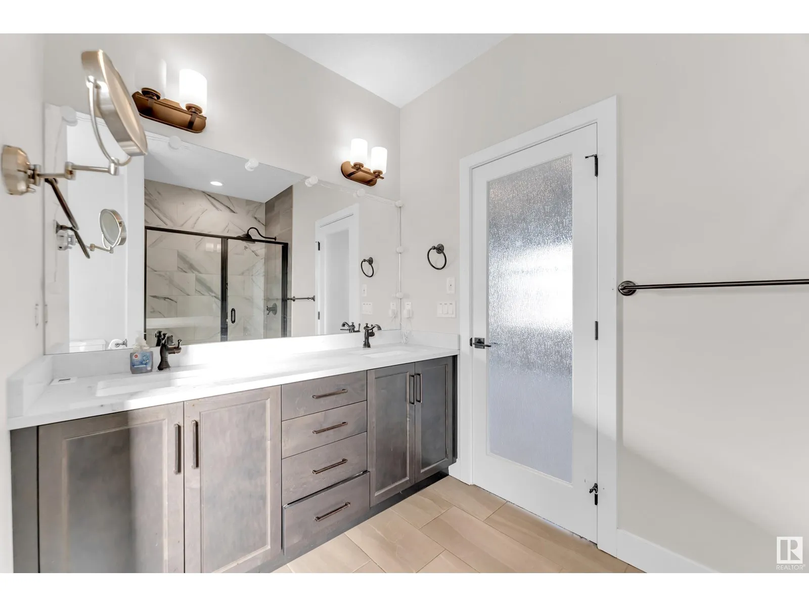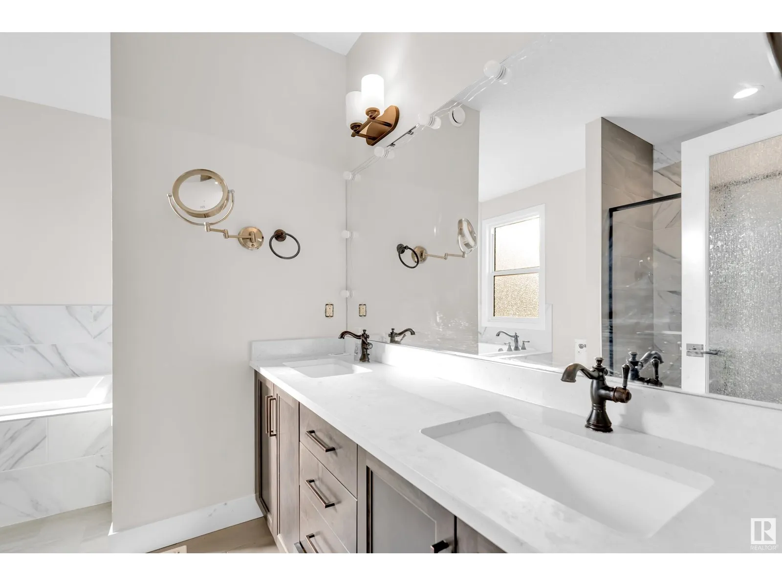 Stunning Custom Home â Over 4,485 Sq.Ft. of Luxury Living! This exceptional home offers 6 bedrooms, 5 full bath, a TRIPLE car garage, and fully FINISHED basement with 1 Bedroom, Rec area, full Bath & rough-ins for Kitchen and SEPERATE ENTERANCE. Step into the grand open-to-below living room, attached to the dining area. Family room and an extended kitchen, both overlooking large window AND complemantry SPICE KITCHEN with PANTRY. Main floor has a FULL Bedroom with ensuite, and POWDER ROOM. Upstairs, 2 MASTER Bedrooms with ensuites and WIC, plus two additional bedrooms with Jack & Jill. Bonus room and convenient upstairs laundry with SINK, providing function and flexibility for the whole family. Enjoy the maintenance-free stamped concrete backyard & sidewalks, a large deck, and the comfort of central A/C. Located near a Kâ9 school, new high school, REC centre, cinema, shopping, grocery stores, and with easy access to Whitemud Drive and Anthony Henday, this home offers both luxury and unbeatable convenience. (id:27476)
