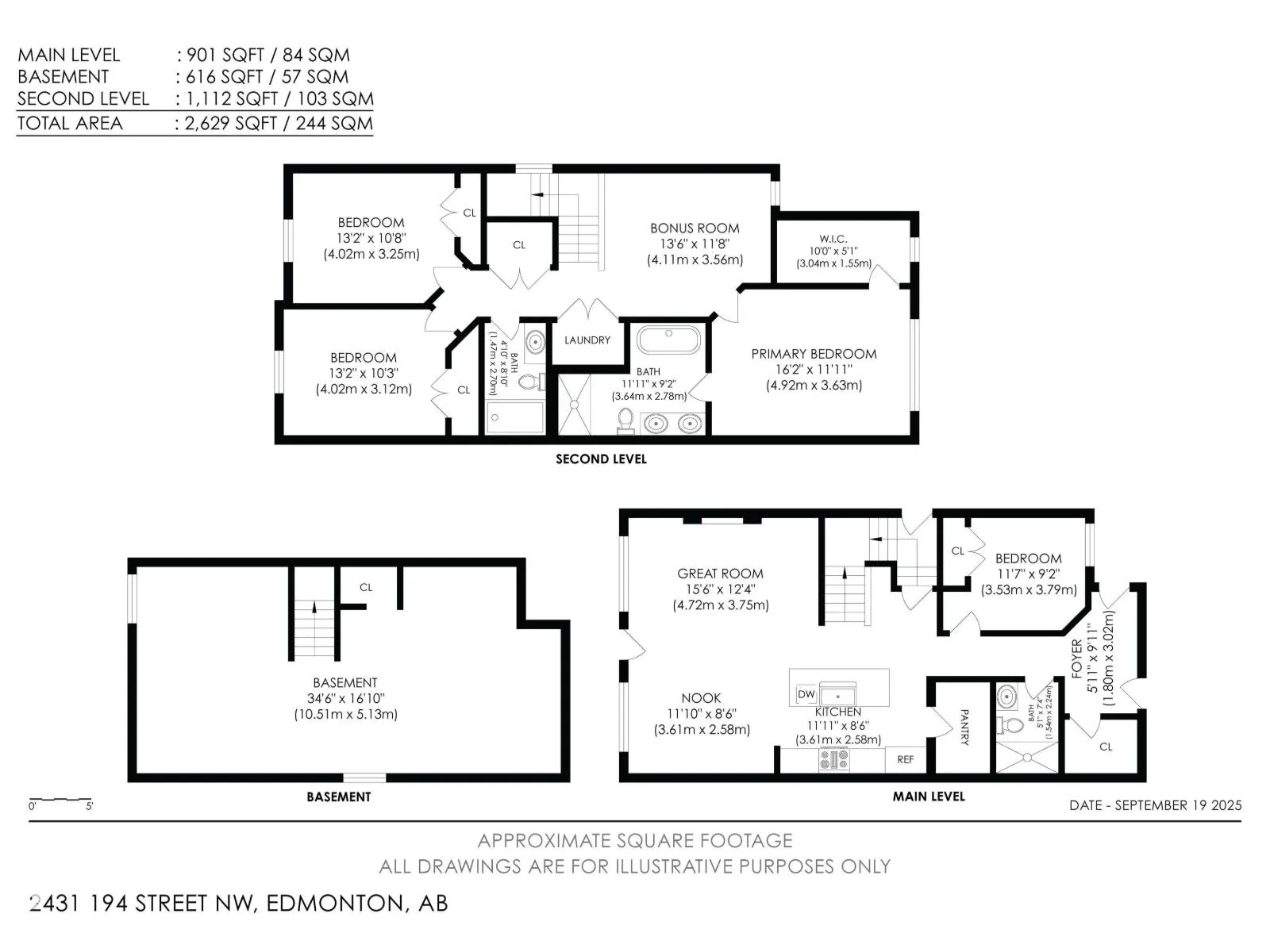 The Affinity model blends elegance and smart design for todayâs families. It features an extended double attached garage with a floor drain, side entry, 9' ceilings on main & basement levels, and LVP flooring throughout the main. The foyer leads to a 3-piece bath with walk-in shower and a versatile den. The open-concept kitchen, nook & great room are perfect for gatherings. The kitchen includes a flush island, built-in microwave, full-height tiled backsplash, Silgranit sink, chimney hood fan, soft-close cabinetry & corner pantry. Great room with fireplace & nook offer large windows and access to the backyard. Upstairs, the bright primary suite features a 5-piece ensuite with double sinks, walk-in shower, freestanding tub & walk-in closet. Youâll also find a bonus room, 3-piece bath, laundry, and two additional bedrooms with generous closets. Includes black fixtures, upgraded railings, basement rough-in & our new Sterling Signature Specification. (id:27476)