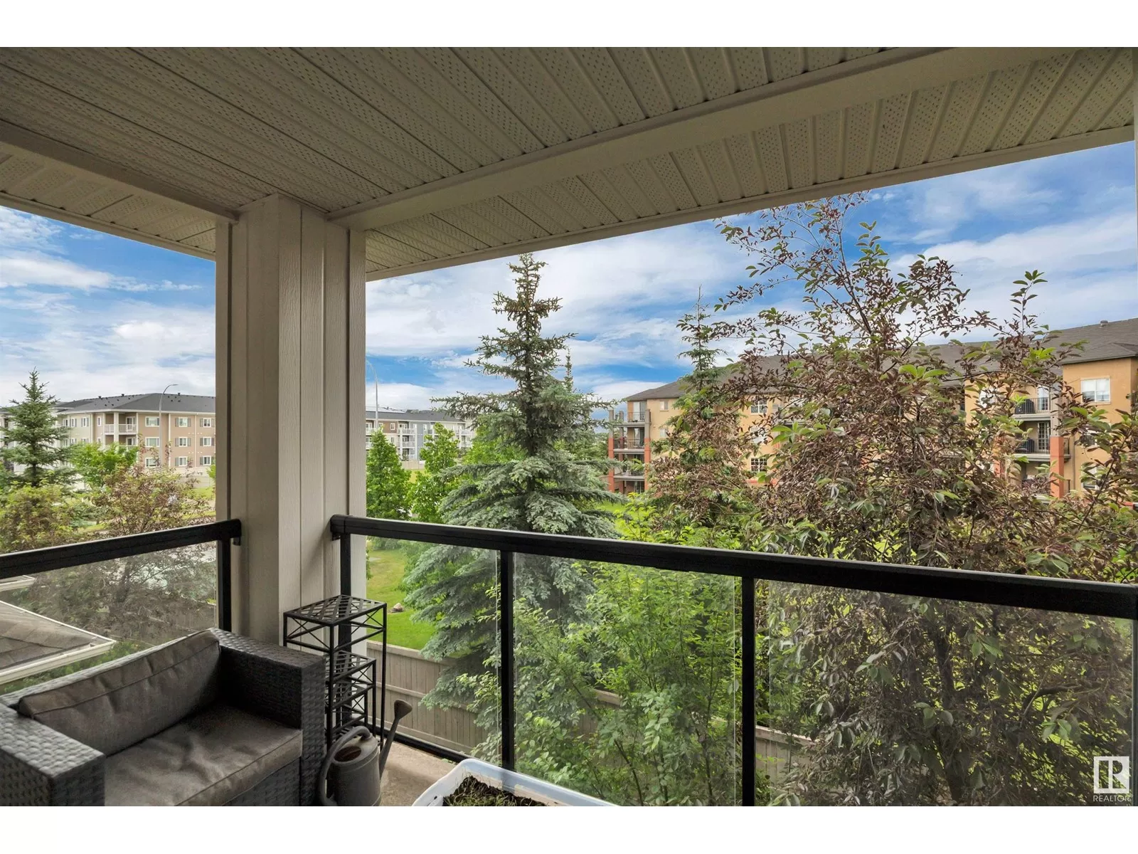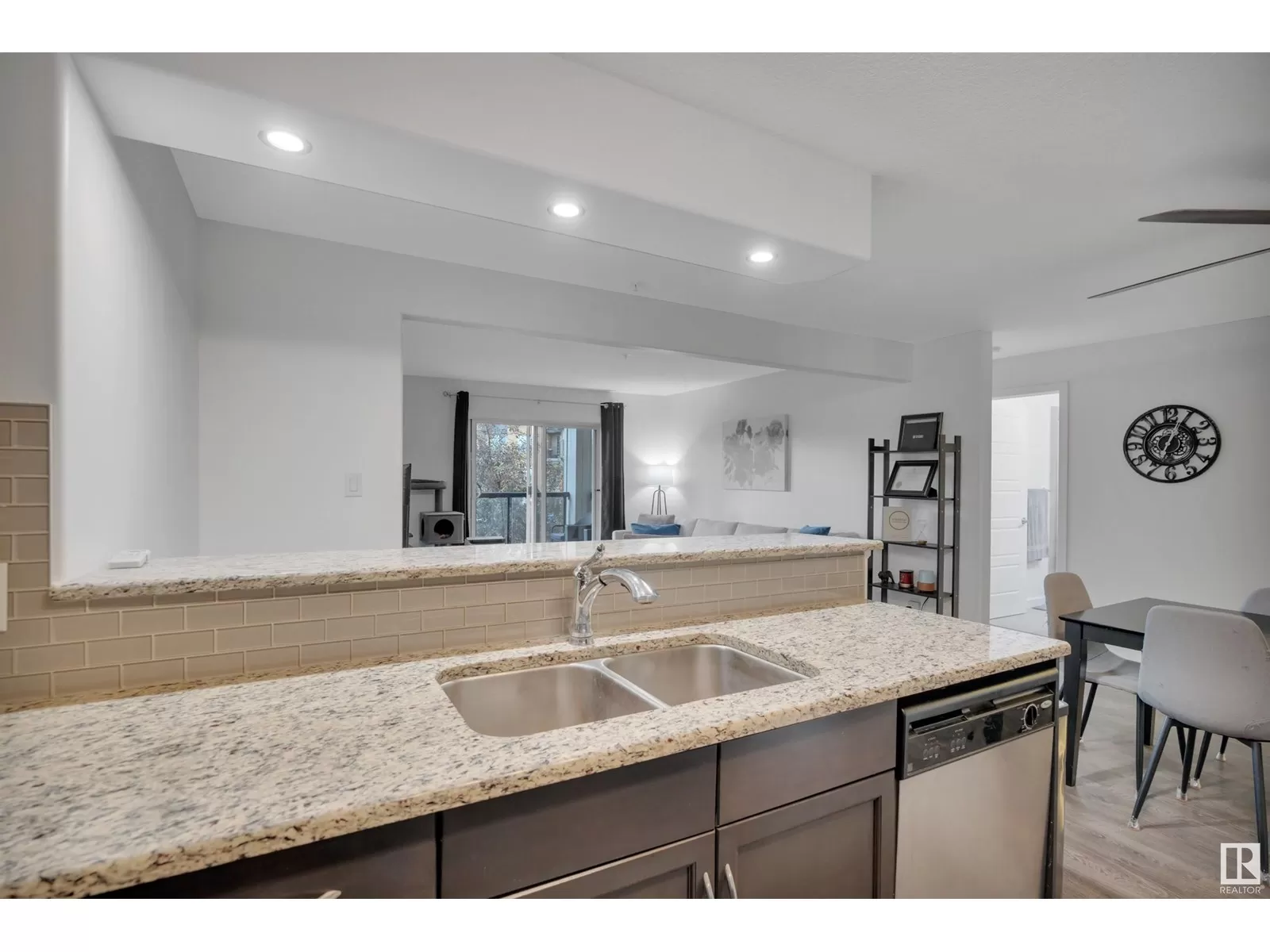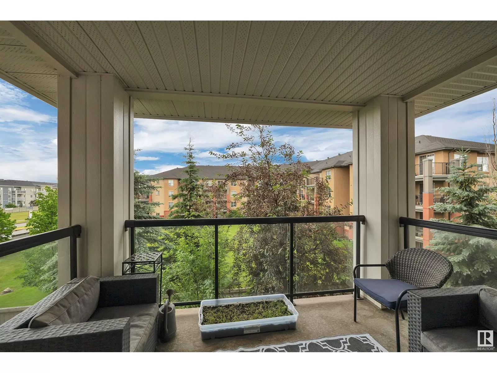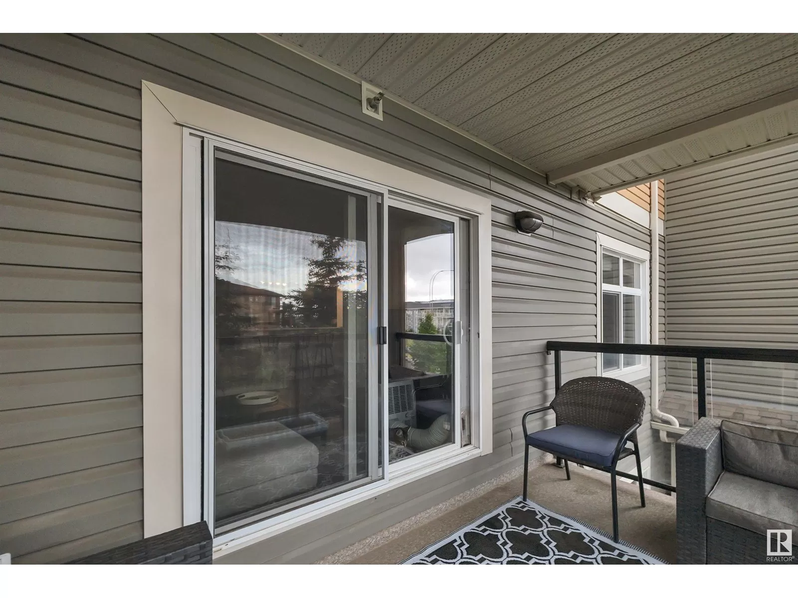 Beautiful well cared for building in a great neighborhood. This clean & nicely finished condo offers extras like a fitness centre, social room with pool table & guest suite. A Carrington Communities development in an ideal location. Laminate floors run through the open kitchen, living & dining areas. The kitchen features granite counters, raised bar, pantry & stainless steel appliances. Split-bedroom layout offers privacyâtwo bedrooms separated by the living room. Laundry/storage room. The sliding door opens to a private, treed patio overlooking greenspace. The primary suite includes a walk-through closet & 3-pce ensuite with oversized shower & seat. Second bedroom is generous with a large closet. Quick access to Ellerslie, Henday & Hwy 2 to EIA, with all essential shopping nearby. Two titled Parking spots! One outdoor stall & one underground parking with storage locker. A perfect balance of comfort, convenience & low-maintenance living! (id:27476)