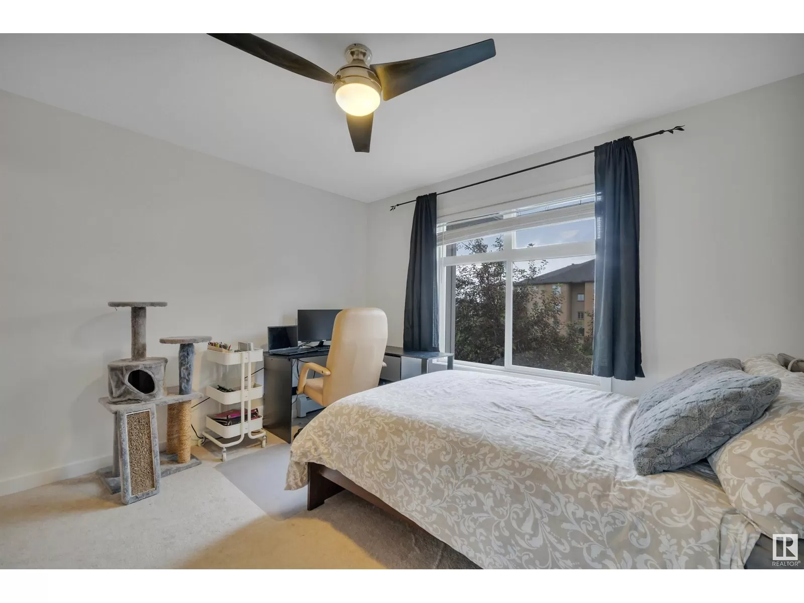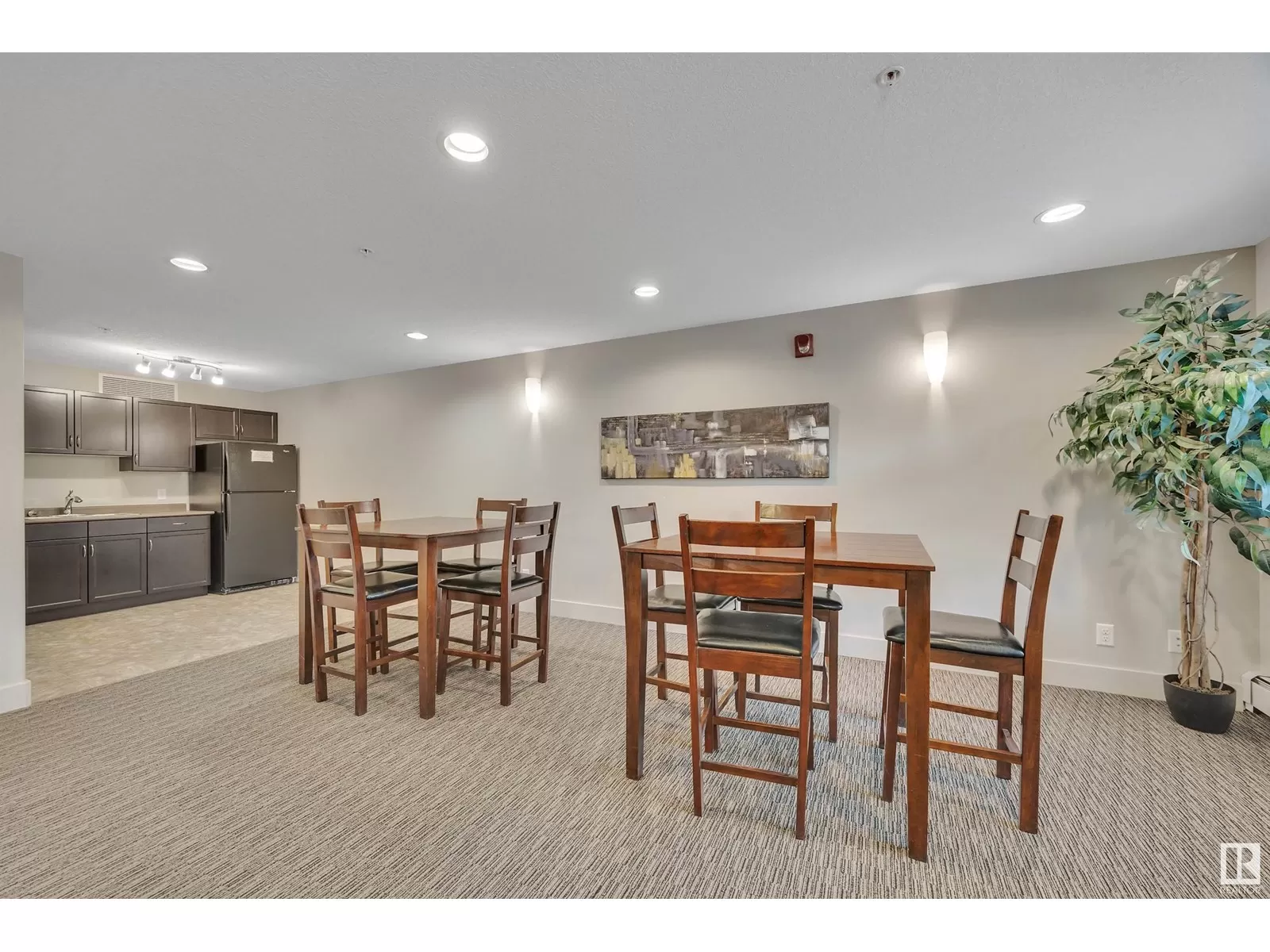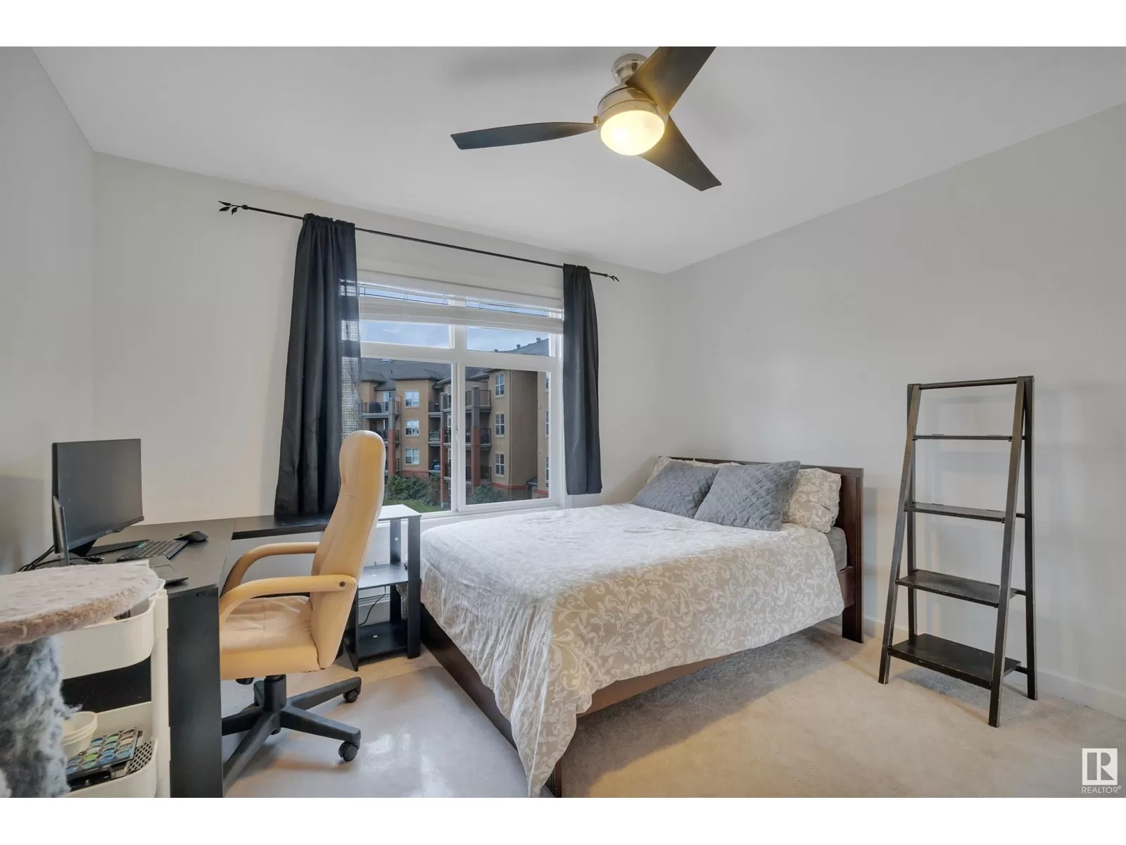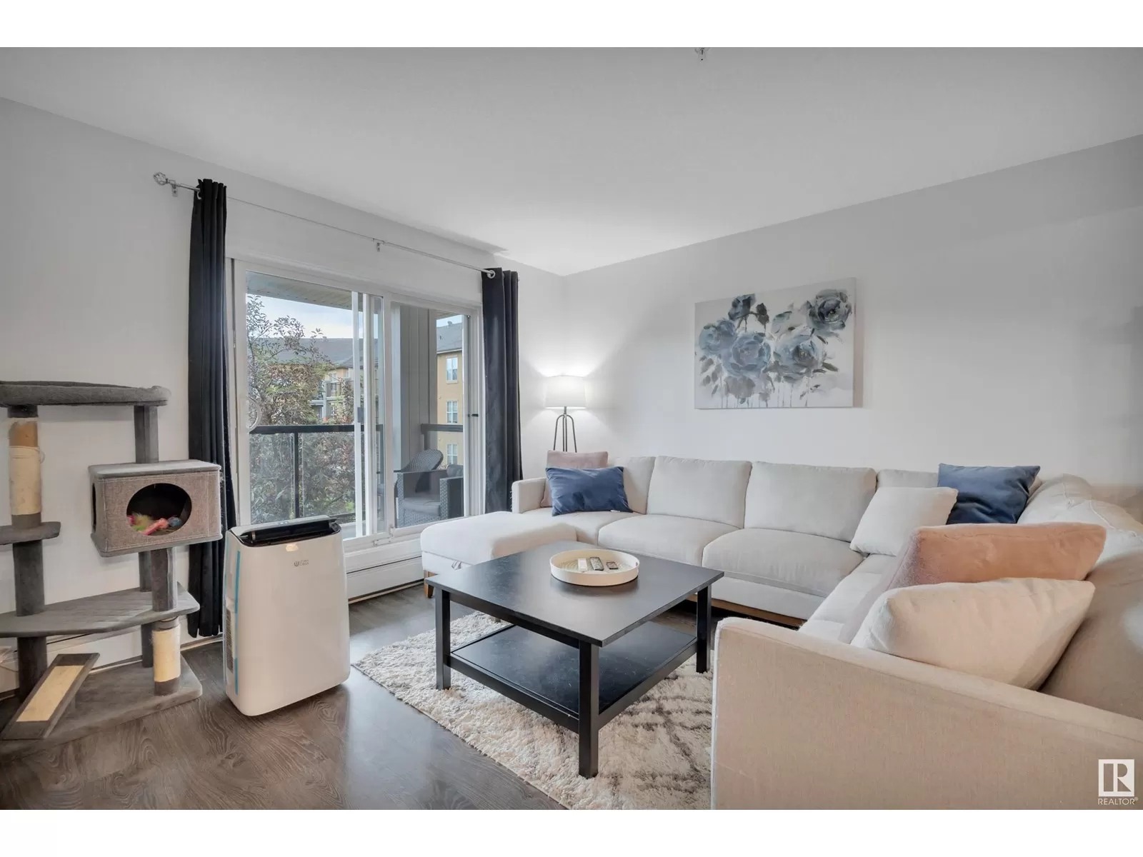 Beautiful well cared for building in a great neighborhood. This clean & nicely finished condo offers extras like a fitness centre, social room with pool table & guest suite. A Carrington Communities development in an ideal location. Laminate floors run through the open kitchen, living & dining areas. The kitchen features granite counters, raised bar, pantry & stainless steel appliances. Split-bedroom layout offers privacyâtwo bedrooms separated by the living room. Laundry/storage room. The sliding door opens to a private, treed patio overlooking greenspace. The primary suite includes a walk-through closet & 3-pce ensuite with oversized shower & seat. Second bedroom is generous with a large closet. Quick access to Ellerslie, Henday & Hwy 2 to EIA, with all essential shopping nearby. Two titled Parking spots! One outdoor stall & one underground parking with storage locker. A perfect balance of comfort, convenience & low-maintenance living! (id:27476)
