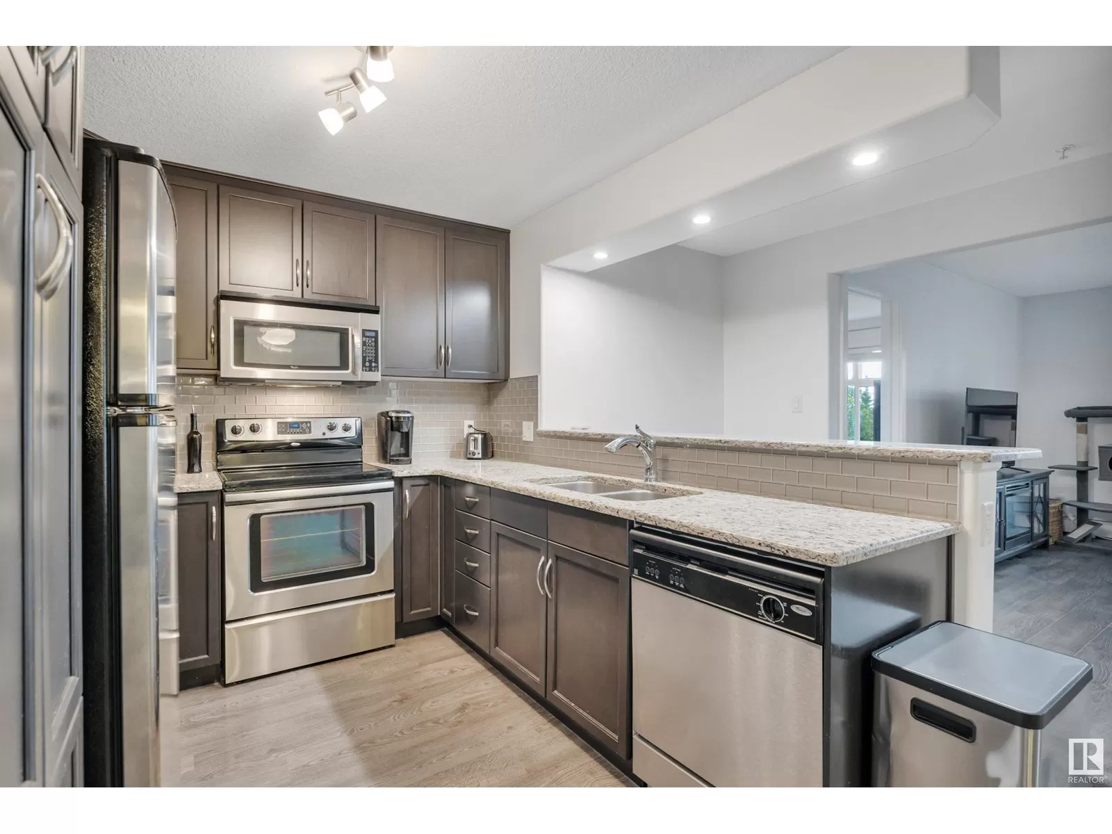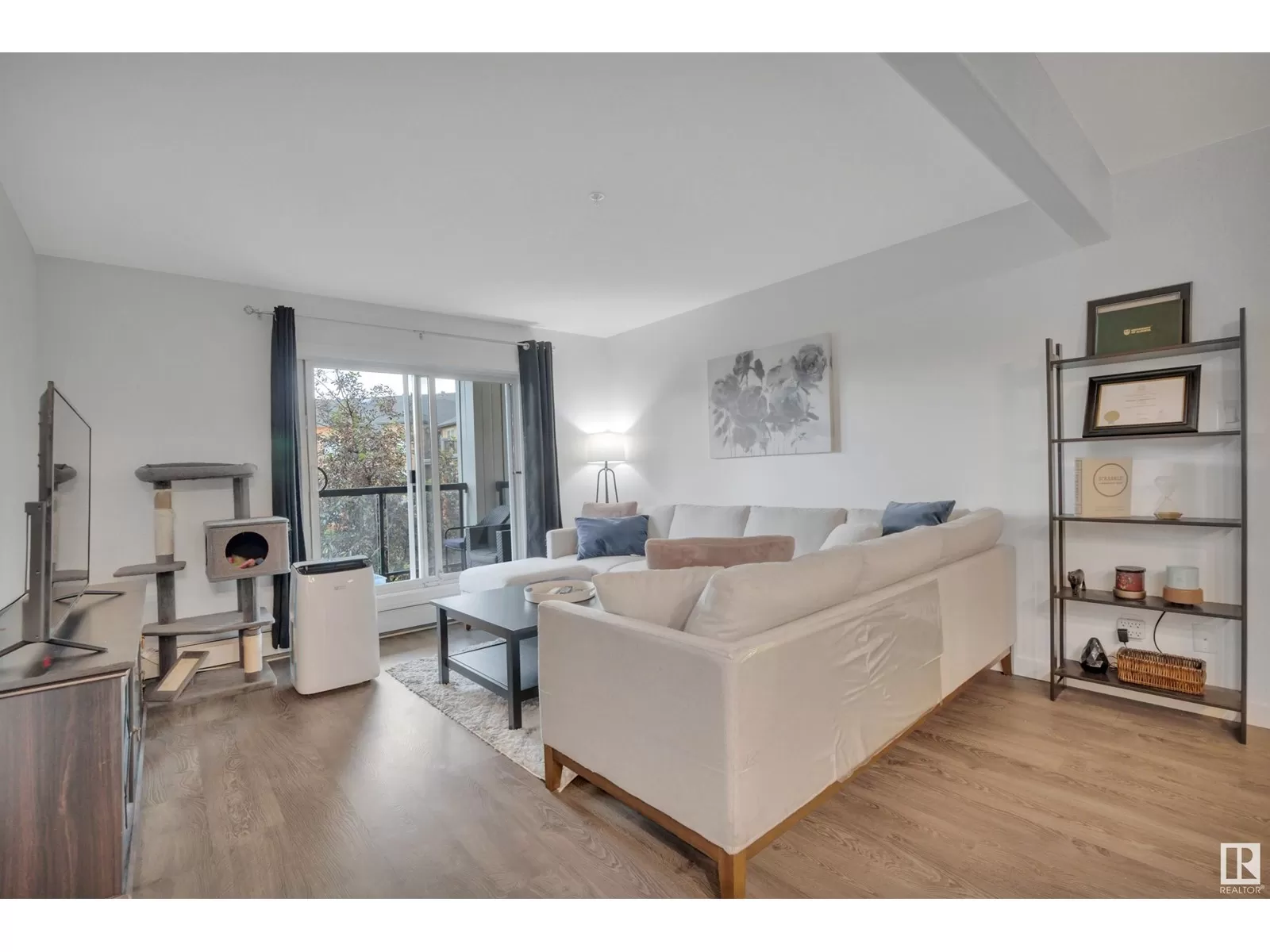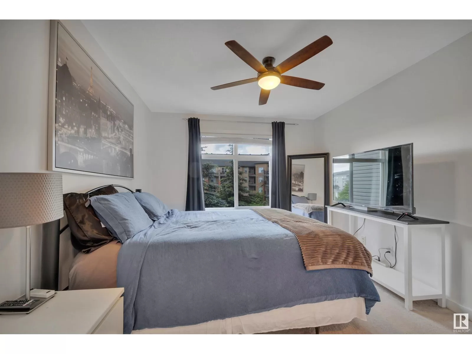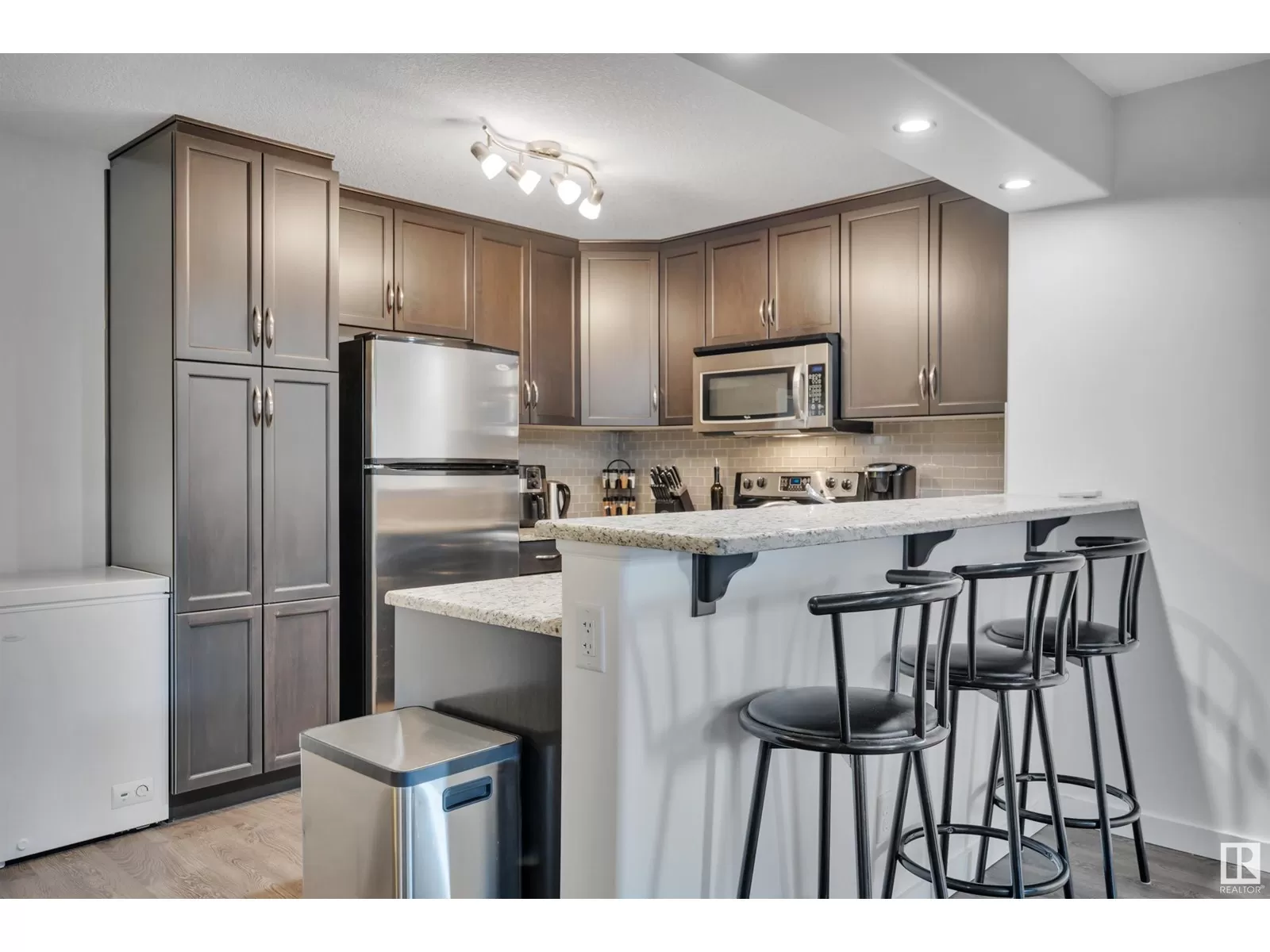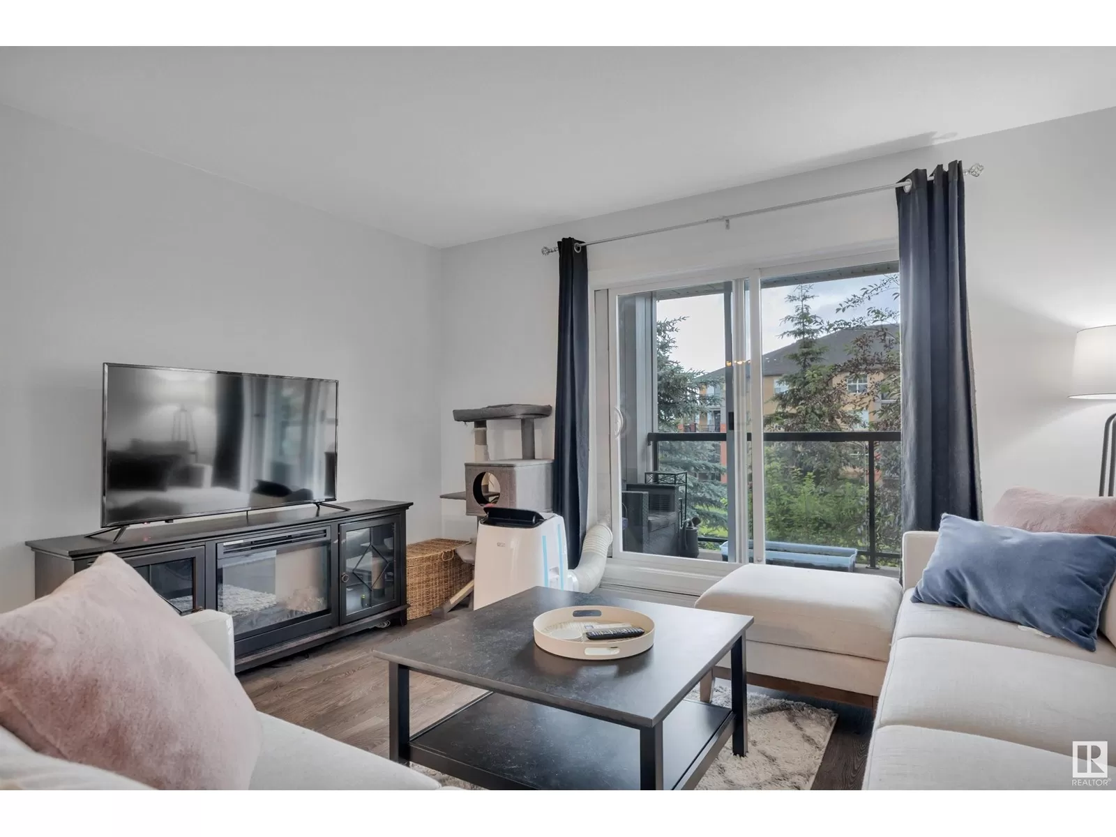 Beautiful well cared for building in a great neighborhood. This clean & nicely finished condo offers extras like a fitness centre, social room with pool table & guest suite. A Carrington Communities development in an ideal location. Laminate floors run through the open kitchen, living & dining areas. The kitchen features granite counters, raised bar, pantry & stainless steel appliances. Split-bedroom layout offers privacyâtwo bedrooms separated by the living room. Laundry/storage room. The sliding door opens to a private, treed patio overlooking greenspace. The primary suite includes a walk-through closet & 3-pce ensuite with oversized shower & seat. Second bedroom is generous with a large closet. Quick access to Ellerslie, Henday & Hwy 2 to EIA, with all essential shopping nearby. Two titled Parking spots! One outdoor stall & one underground parking with storage locker. A perfect balance of comfort, convenience & low-maintenance living! (id:27476)