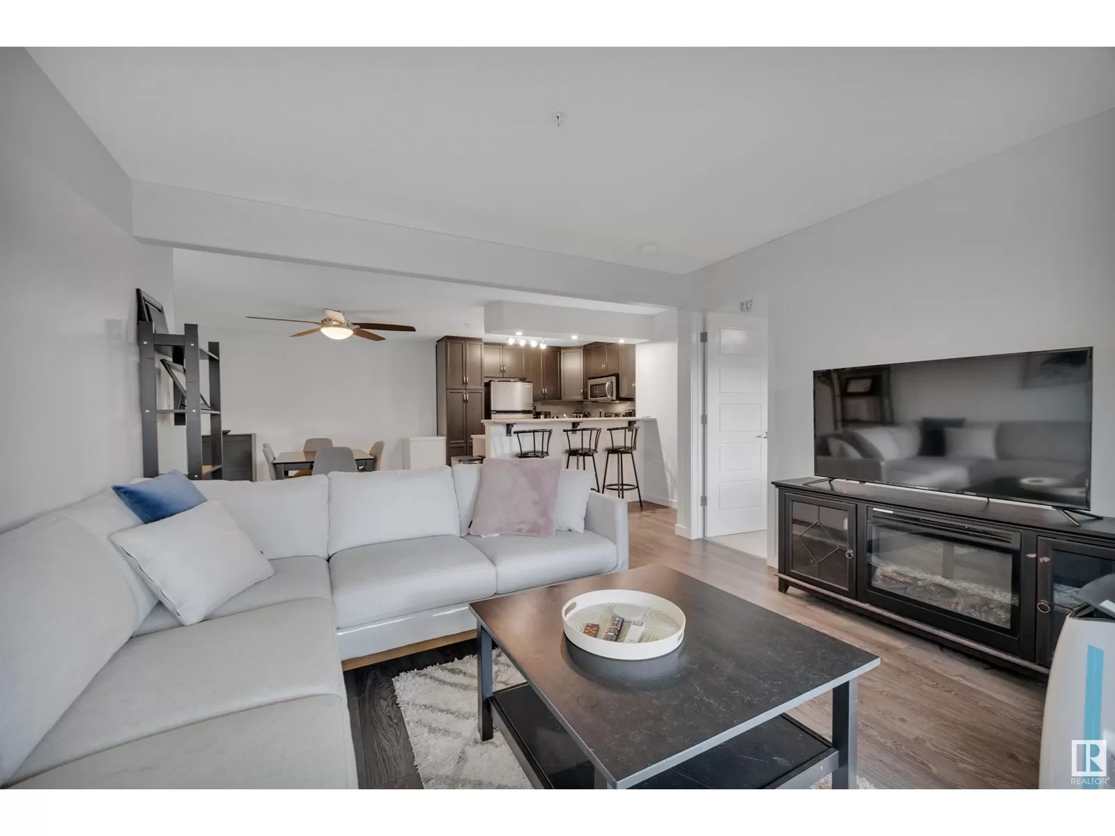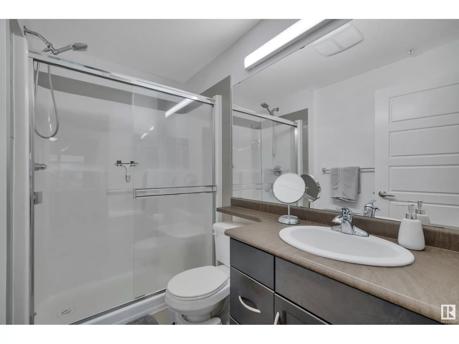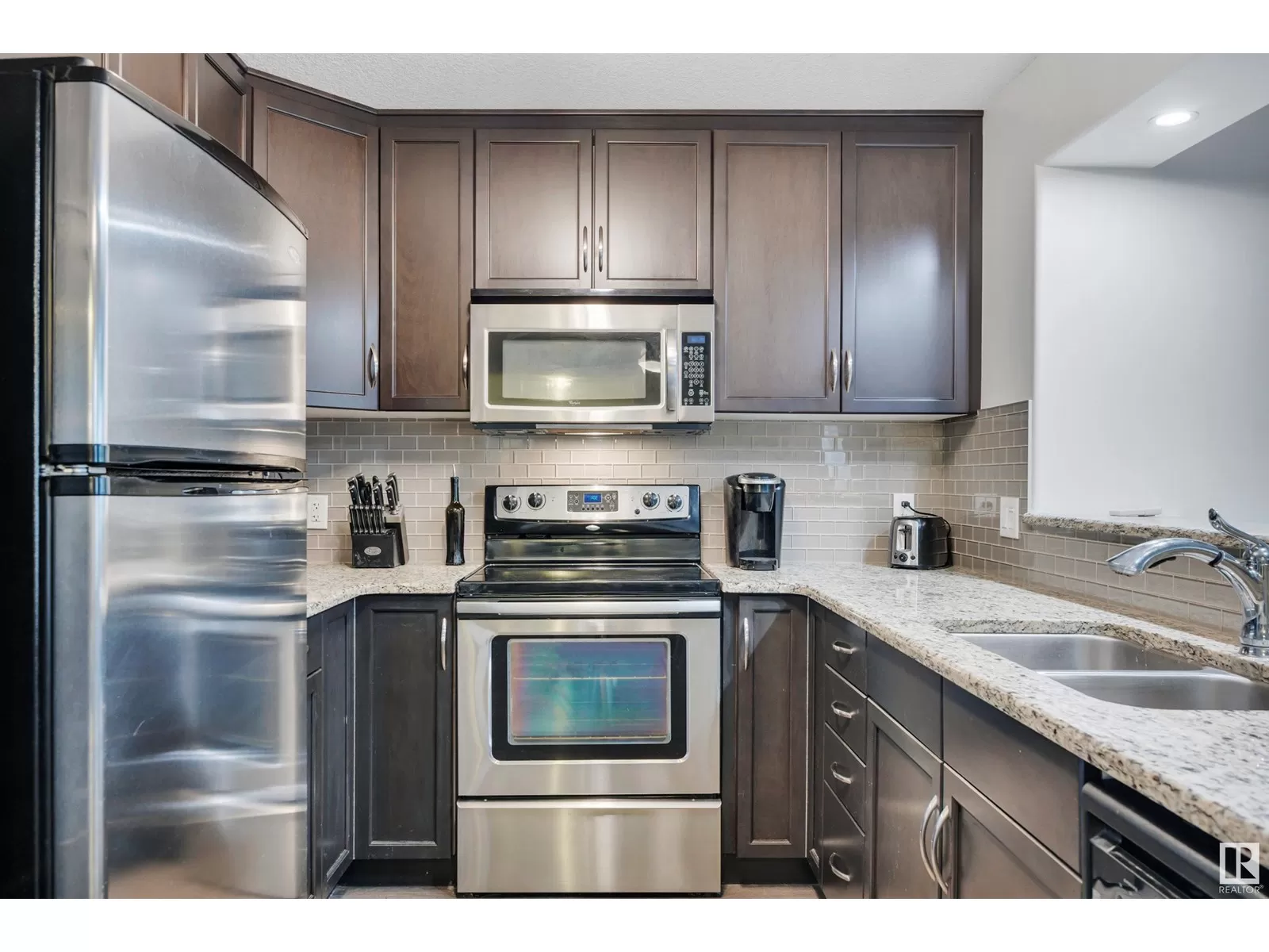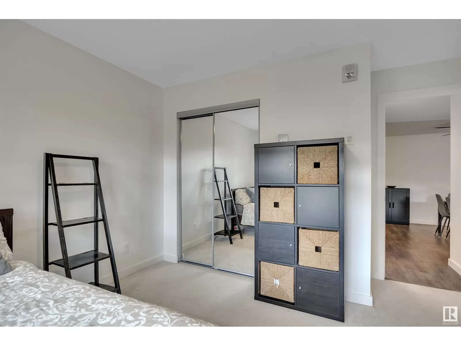 Beautiful well cared for building in a great neighborhood. This clean & nicely finished condo offers extras like a fitness centre, social room with pool table & guest suite. A Carrington Communities development in an ideal location. Laminate floors run through the open kitchen, living & dining areas. The kitchen features granite counters, raised bar, pantry & stainless steel appliances. Split-bedroom layout offers privacyâtwo bedrooms separated by the living room. Laundry/storage room. The sliding door opens to a private, treed patio overlooking greenspace. The primary suite includes a walk-through closet & 3-pce ensuite with oversized shower & seat. Second bedroom is generous with a large closet. Quick access to Ellerslie, Henday & Hwy 2 to EIA, with all essential shopping nearby. Two titled Parking spots! One outdoor stall & one underground parking with storage locker. A perfect balance of comfort, convenience & low-maintenance living! (id:27476)