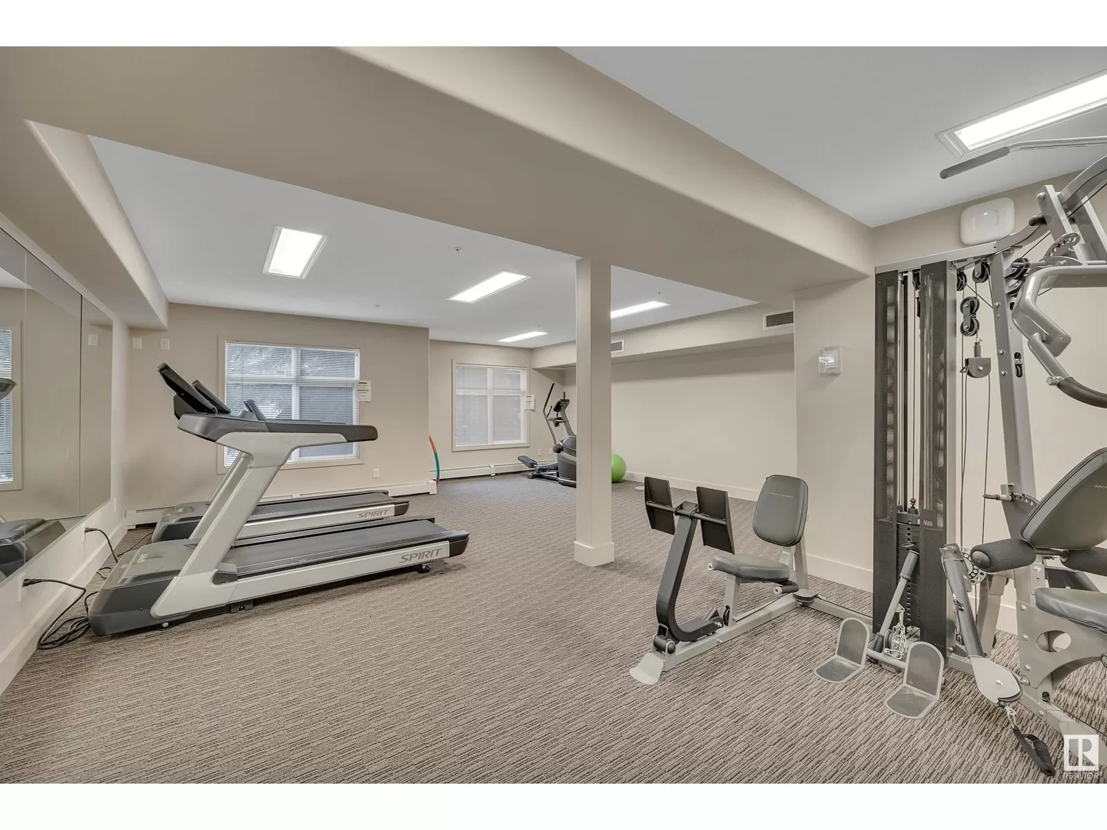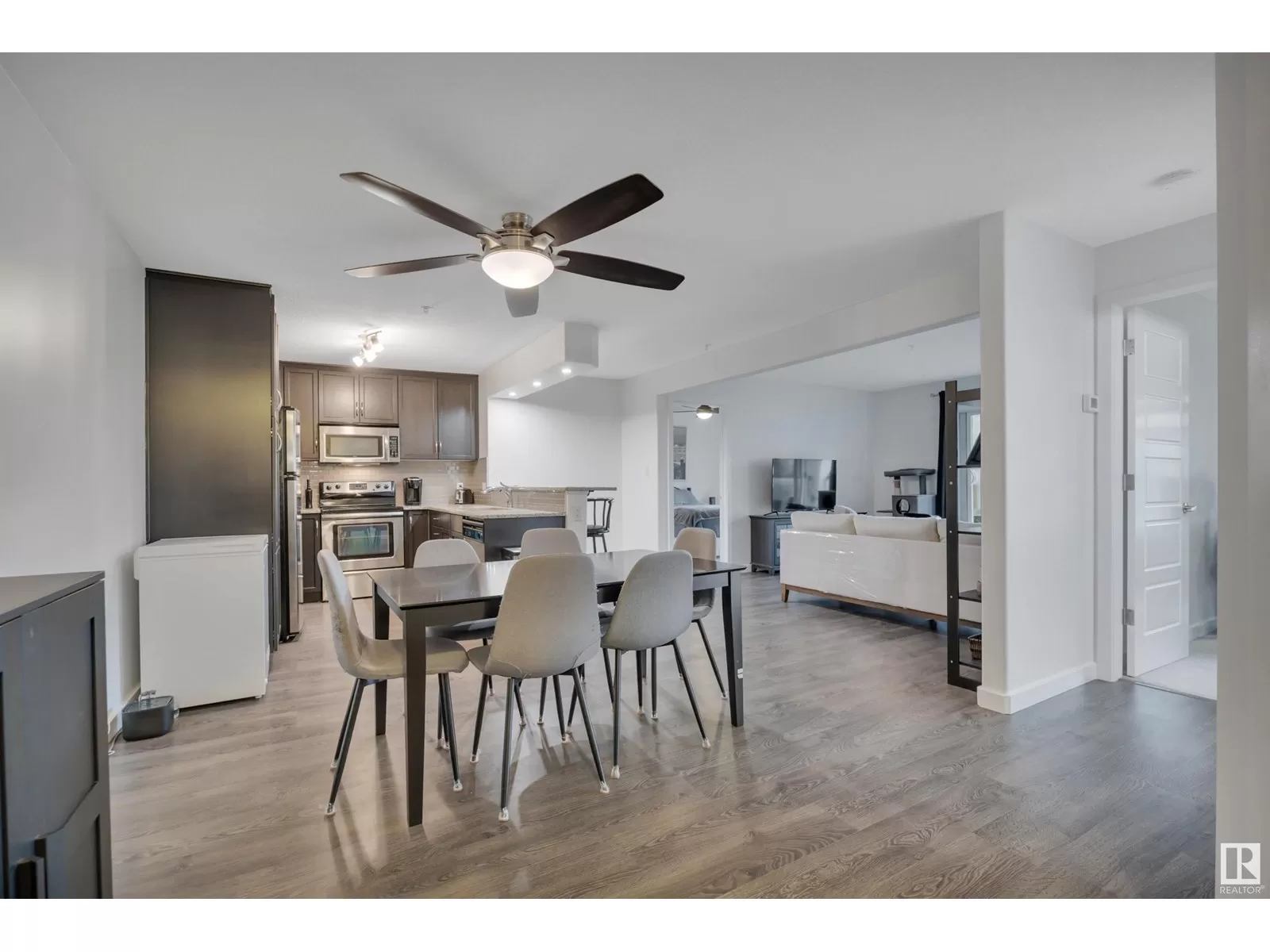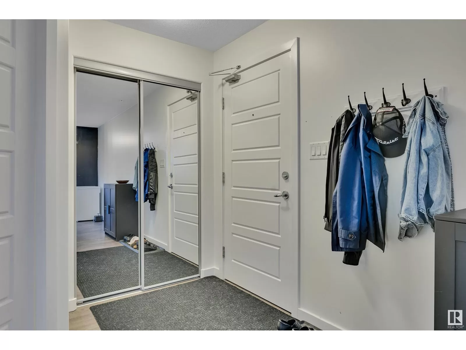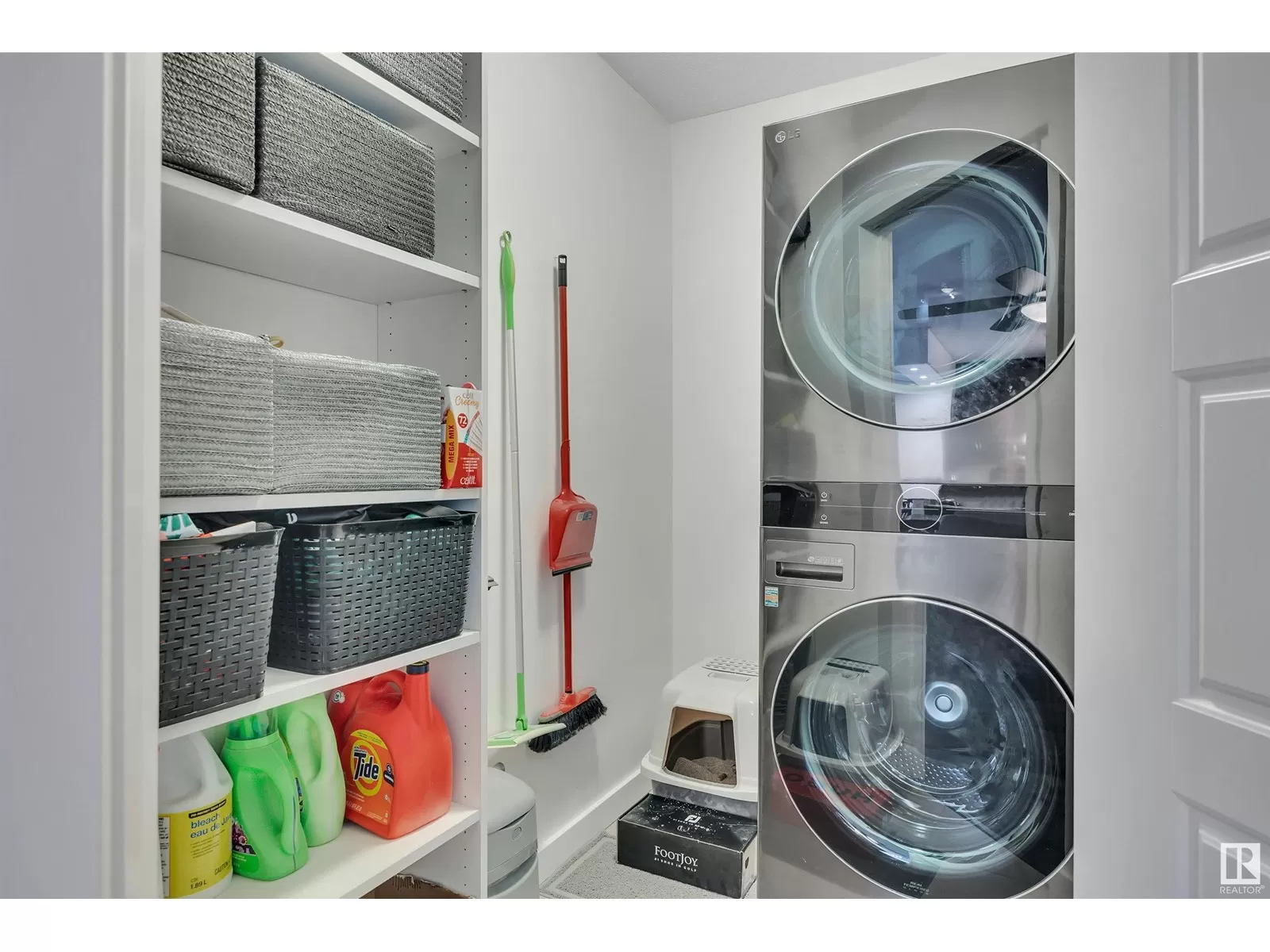 Beautiful well cared for building in a great neighborhood. This clean & nicely finished condo offers extras like a fitness centre, social room with pool table & guest suite. A Carrington Communities development in an ideal location. Laminate floors run through the open kitchen, living & dining areas. The kitchen features granite counters, raised bar, pantry & stainless steel appliances. Split-bedroom layout offers privacyâtwo bedrooms separated by the living room. Laundry/storage room. The sliding door opens to a private, treed patio overlooking greenspace. The primary suite includes a walk-through closet & 3-pce ensuite with oversized shower & seat. Second bedroom is generous with a large closet. Quick access to Ellerslie, Henday & Hwy 2 to EIA, with all essential shopping nearby. Two titled Parking spots! One outdoor stall & one underground parking with storage locker. A perfect balance of comfort, convenience & low-maintenance living! (id:27476)