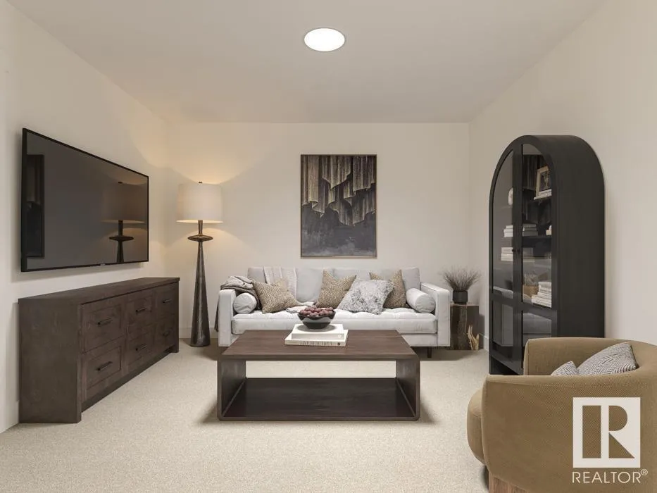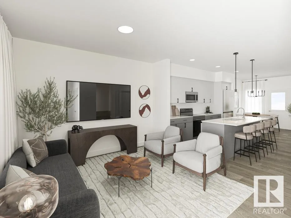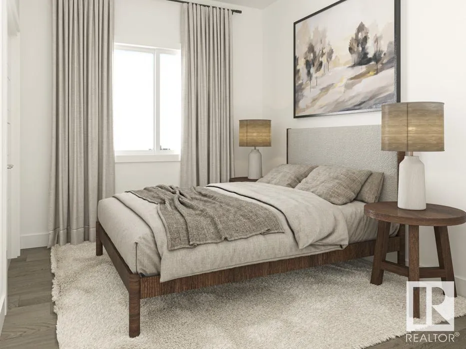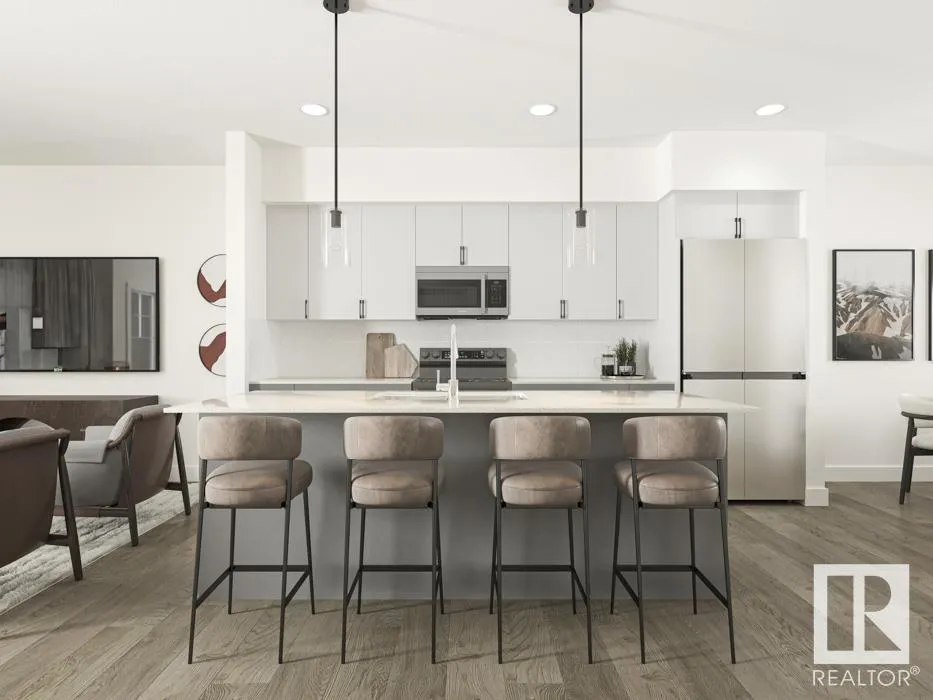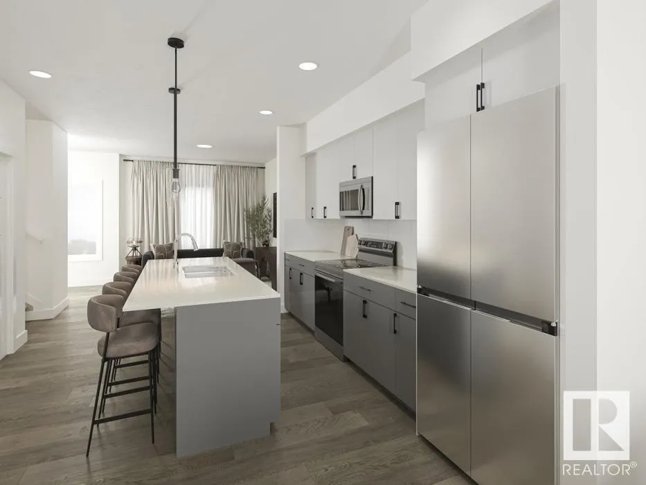 Discover The Sylvanâcrafted with elegance and function, nestled on a large pie lot. Luxury vinyl plank flooring flows through the main floor, starting with a spacious foyer and walk-in coat closet. The bright great room leads to a kitchen with quartz countertops, an island with eating ledge, Silgranit undermount sink, over-the-range microwave, soft-close Thermofoil cabinets, and a tucked-away pantry. At the rear, the sunlit nook offers backyard views, with a garden door to the outdoor space. A main floor bedroom and full 3-piece bath add convenience. The included parking pad can be upgraded to a double detached garage. Upstairs, enjoy a bright primary suite with walk-in closet and 3-piece ensuite with tub/shower combo. Two more bedrooms with ample closets, a full bath, and laundry closet complete the upper level. Extra side windows in the nook and bonus room, brushed nickel fixtures, 9' ceilings on the main and basement, separate side entrance, and basement rough-ins are all included. (id:27476)