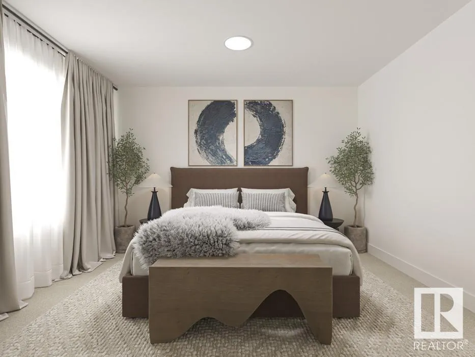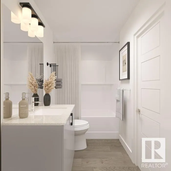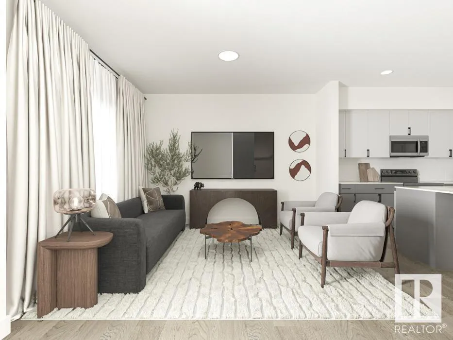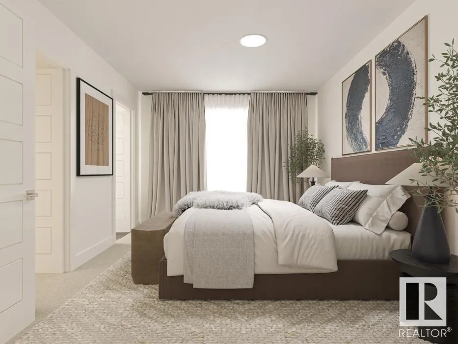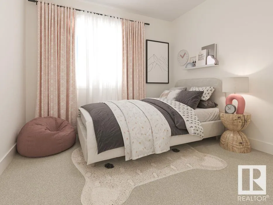 Discover The Sylvanâcrafted with elegance and function, nestled on a large pie lot. Luxury vinyl plank flooring flows through the main floor, starting with a spacious foyer and walk-in coat closet. The bright great room leads to a kitchen with quartz countertops, an island with eating ledge, Silgranit undermount sink, over-the-range microwave, soft-close Thermofoil cabinets, and a tucked-away pantry. At the rear, the sunlit nook offers backyard views, with a garden door to the outdoor space. A main floor bedroom and full 3-piece bath add convenience. The included parking pad can be upgraded to a double detached garage. Upstairs, enjoy a bright primary suite with walk-in closet and 3-piece ensuite with tub/shower combo. Two more bedrooms with ample closets, a full bath, and laundry closet complete the upper level. Extra side windows in the nook and bonus room, brushed nickel fixtures, 9' ceilings on the main and basement, separate side entrance, and basement rough-ins are all included. (id:27476)