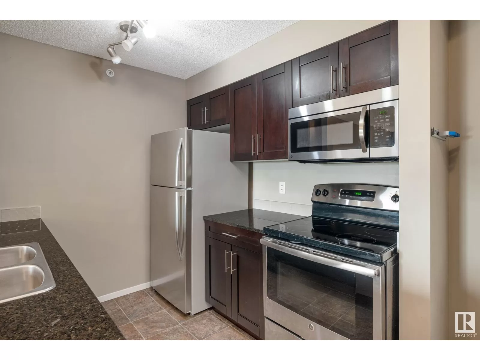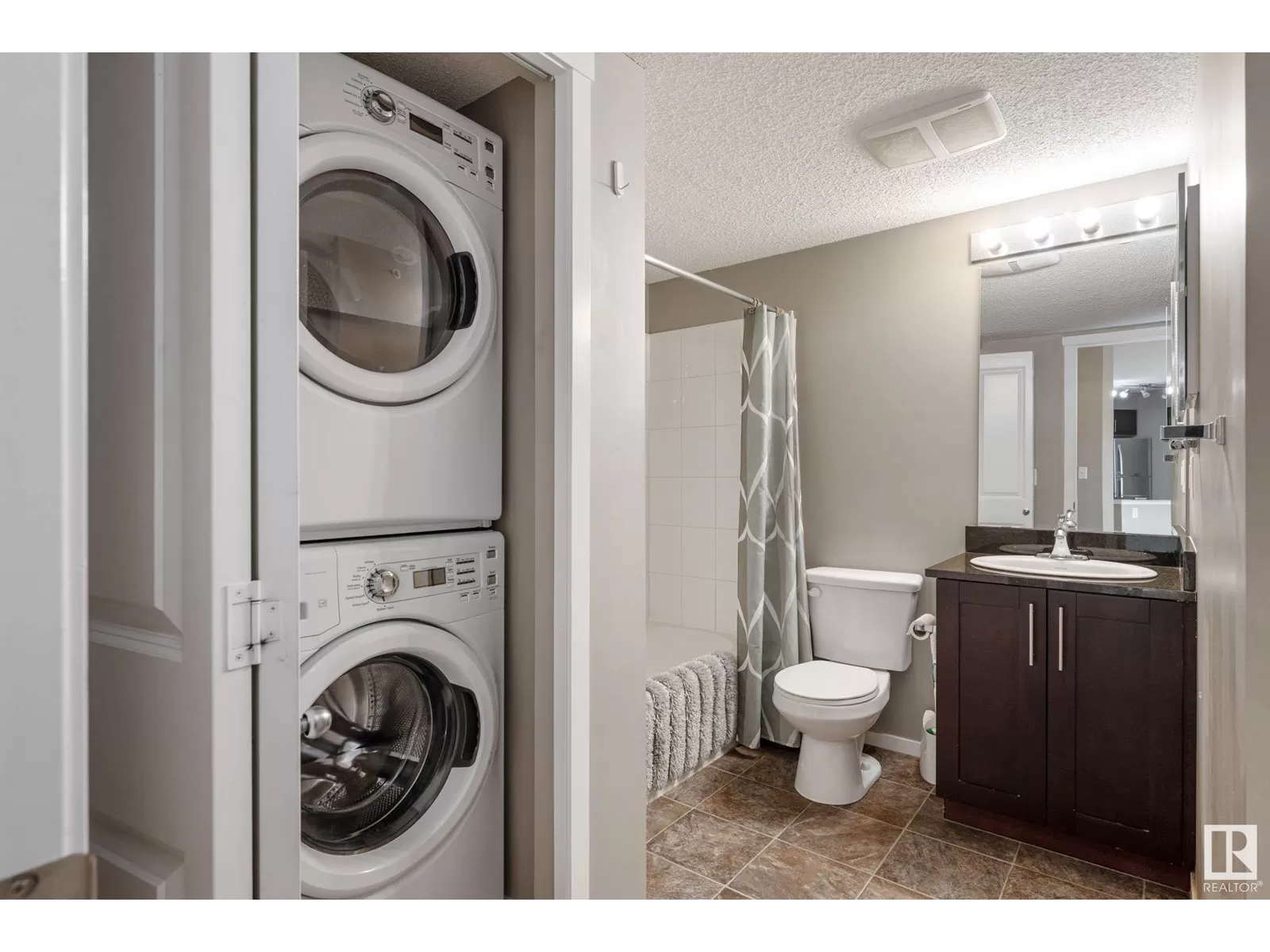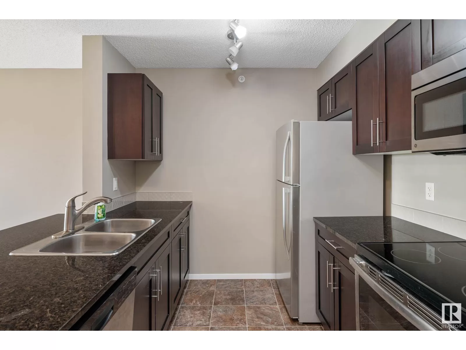 Cute As A Button, This TOP FLOOR Chappelle Garden Charmer Features AIR CONDITIONING, 2 TITLED PARKING STALLS (1 Heated Underground & 1 Above Ground Stall), & 1 TITLED STORAGE UNIT. Unbeatable Value, Welcome Home To This Adorable 1 Bathroom, 1 Bedroom Plus Den Condo. Enjoy The Open Concept Floor Plan Featuring Modern Cabinetry, Granite Countertops with Eating Bar Ledge & Stainless Steel Appliances. The Living Room Is An Ample Size Showcasing Modern Paint & Vinyl Plank Flooring. Step Out Through The Sliding Doors On To Your Covered Patio & Enjoy Your Top Floor View With A Cup Of Coffee Or A Glass Of Wine! The Bedroom, The Office Nook (Den), 4 PC Bath & Convenient IN-SUITE LAUNDRY Complete The Unit. Close To All Amenities, Including Shopping, Schools, Parks, Golf, ETS, The Henday, Airport, Walking Trails & More (Great For Young Professionals Or First Time Home Buyers), Your New Abode Awaits YOU! Note: Excellent Self Managed Condo, Secure Building & Low Condo Fees. *Photos Are Virtually Staged.* (id:27476)