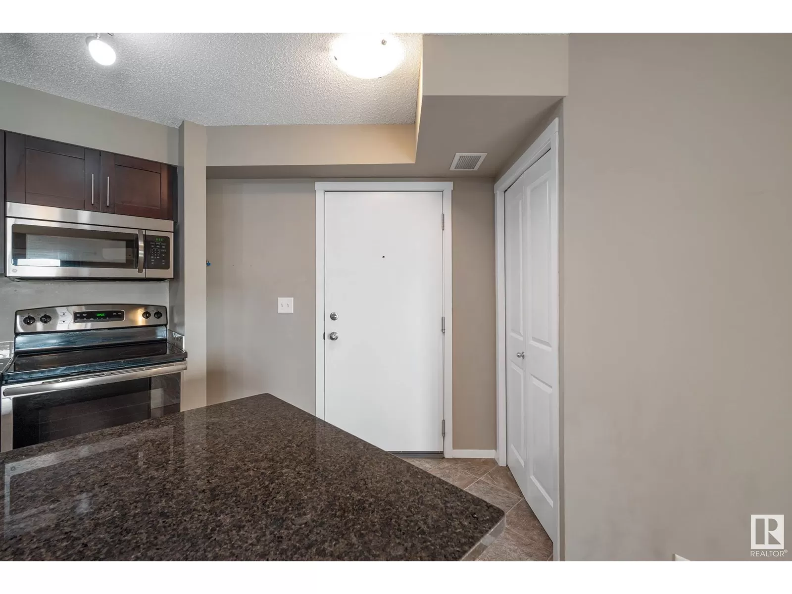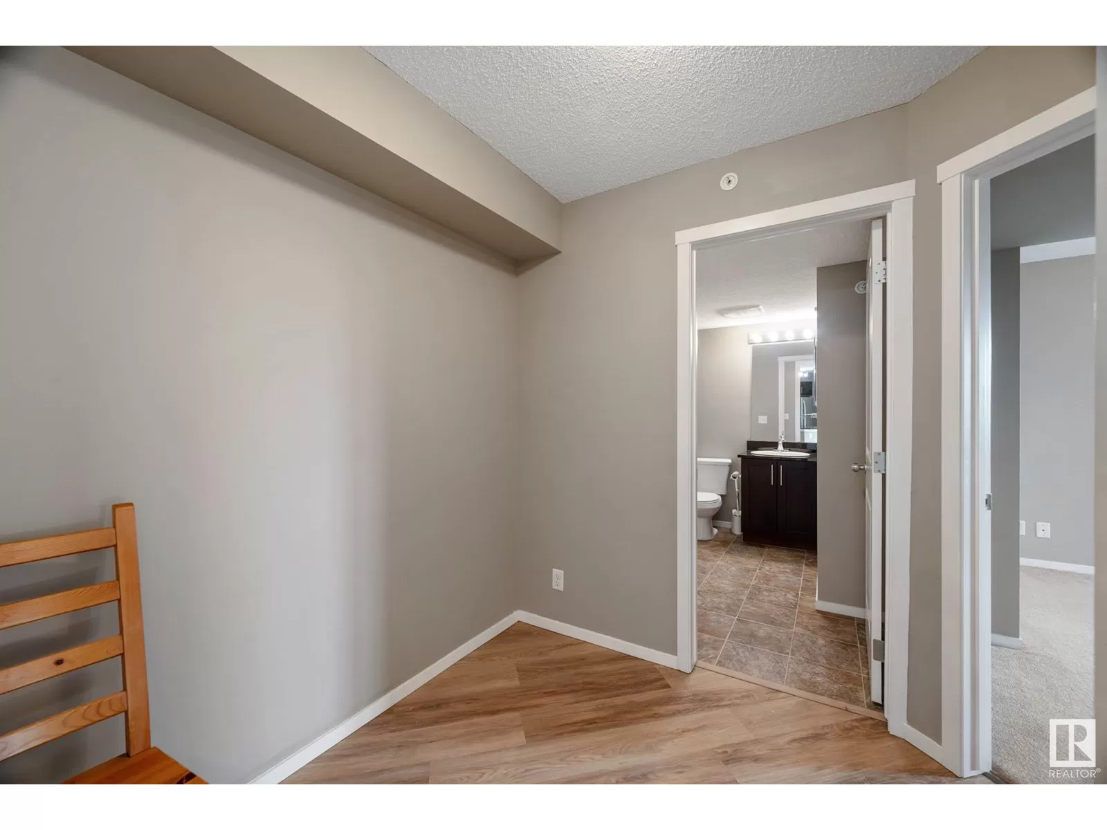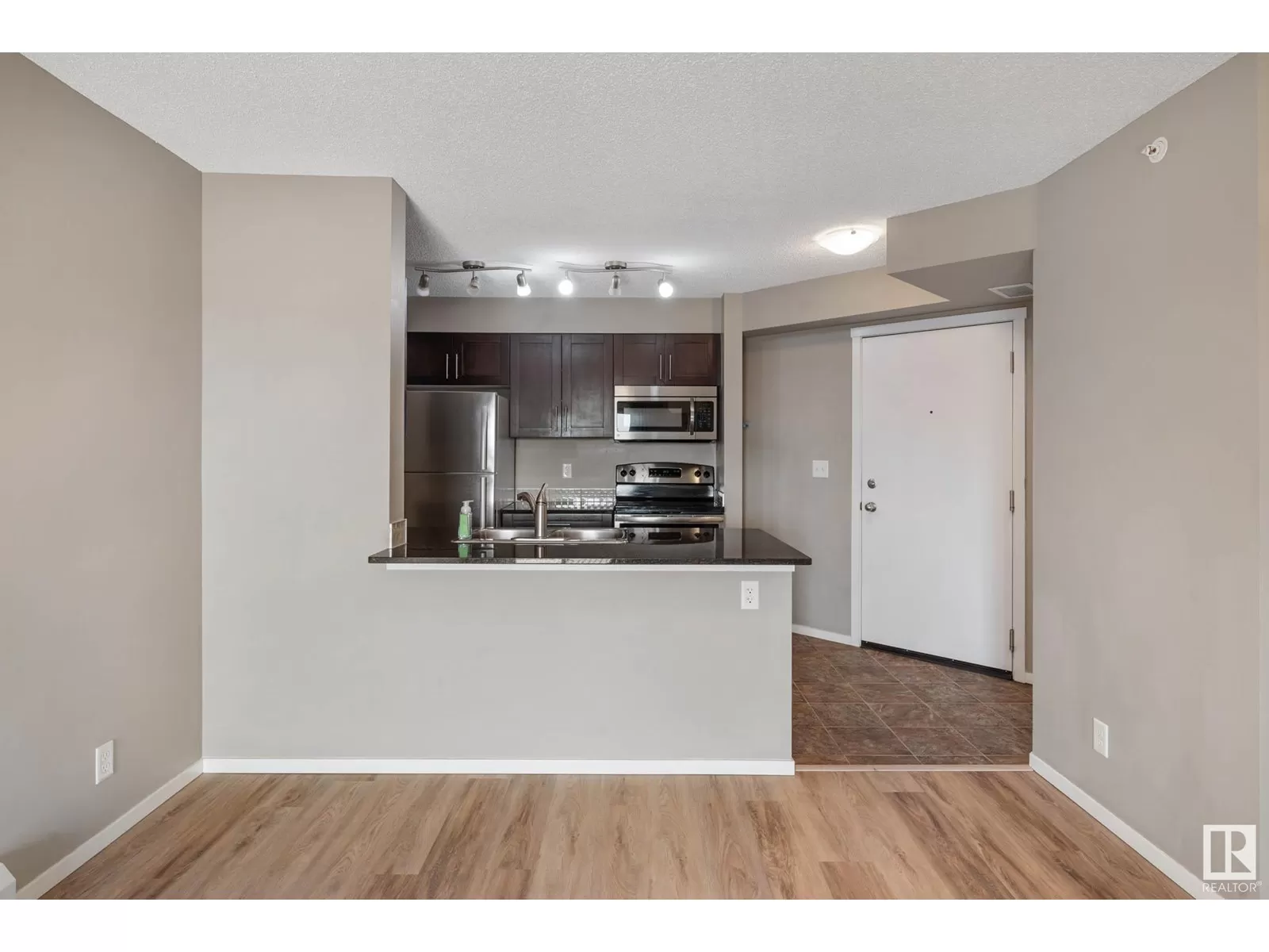Cute As A Button, This TOP FLOOR Chappelle Garden Charmer Features AIR CONDITIONING, 2 TITLED PARKING STALLS (1 Heated Underground & 1 Above Ground Stall), & 1 TITLED STORAGE UNIT. Unbeatable Value, Welcome Home To This Adorable 1 Bathroom, 1 Bedroom Plus Den Condo. Enjoy The Open Concept Floor Plan Featuring Modern Cabinetry, Granite Countertops with Eating Bar Ledge & Stainless Steel Appliances. The Living Room Is An Ample Size Showcasing Modern Paint & Vinyl Plank Flooring. Step Out Through The Sliding Doors On To Your Covered Patio & Enjoy Your Top Floor View With A Cup Of Coffee Or A Glass Of Wine! The Bedroom, The Office Nook (Den), 4 PC Bath & Convenient IN-SUITE LAUNDRY Complete The Unit. Close To All Amenities, Including Shopping, Schools, Parks, Golf, ETS, The Henday, Airport, Walking Trails & More (Great For Young Professionals Or First Time Home Buyers), Your New Abode Awaits YOU! Note: Excellent Self Managed Condo, Secure Building & Low Condo Fees. *Photos Are Virtually Staged.* (id:27476)