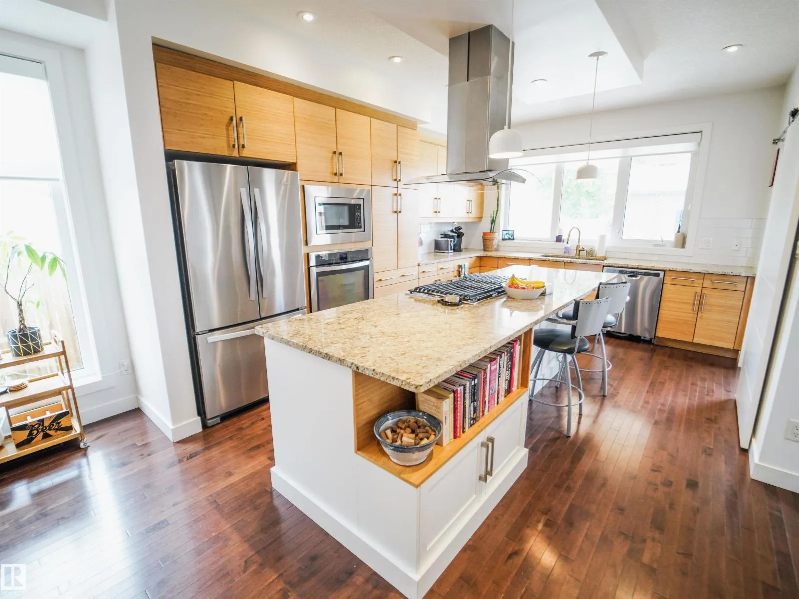 BEAUTIFUL HOME in WESTMOUNT welcomes you! This custom-built executive home offers over 2,800 sq. feet of luxurious living space. With a total of 4 specious bedrooms and 3.5 bathrooms, this home is designed for comfort and elegance. The main floor boasts a bright, open, layout with soaring 10ft ceilings throughout, rich hardwood floors, and a modern BAMBOO CHEF'S kitchen, featuring a gas range stove, quartz countertops, and ample cabinetry. A cozy fireplace anchors the living and dining rooms, along with a well placed half-bath. Upstairs you will find 3 large bedrooms and two full bathrooms. The master bedroom has a spa-like ensuite and walk-through closet. ON TOP OF THE HOME IS PATIO WITH NICE VIEW.The PROFESSIONALLY FULLY finished basement offers an additional bedroom, full bath, and LARGE REC ROOM. The West-facing backyard is complete with a covered deck, and lush greenery, perfect for relaxing with family. LOCATED on a tree-lined street in sought-after WESTMOUNT, close to schools, shopping, parks. (id:27476)