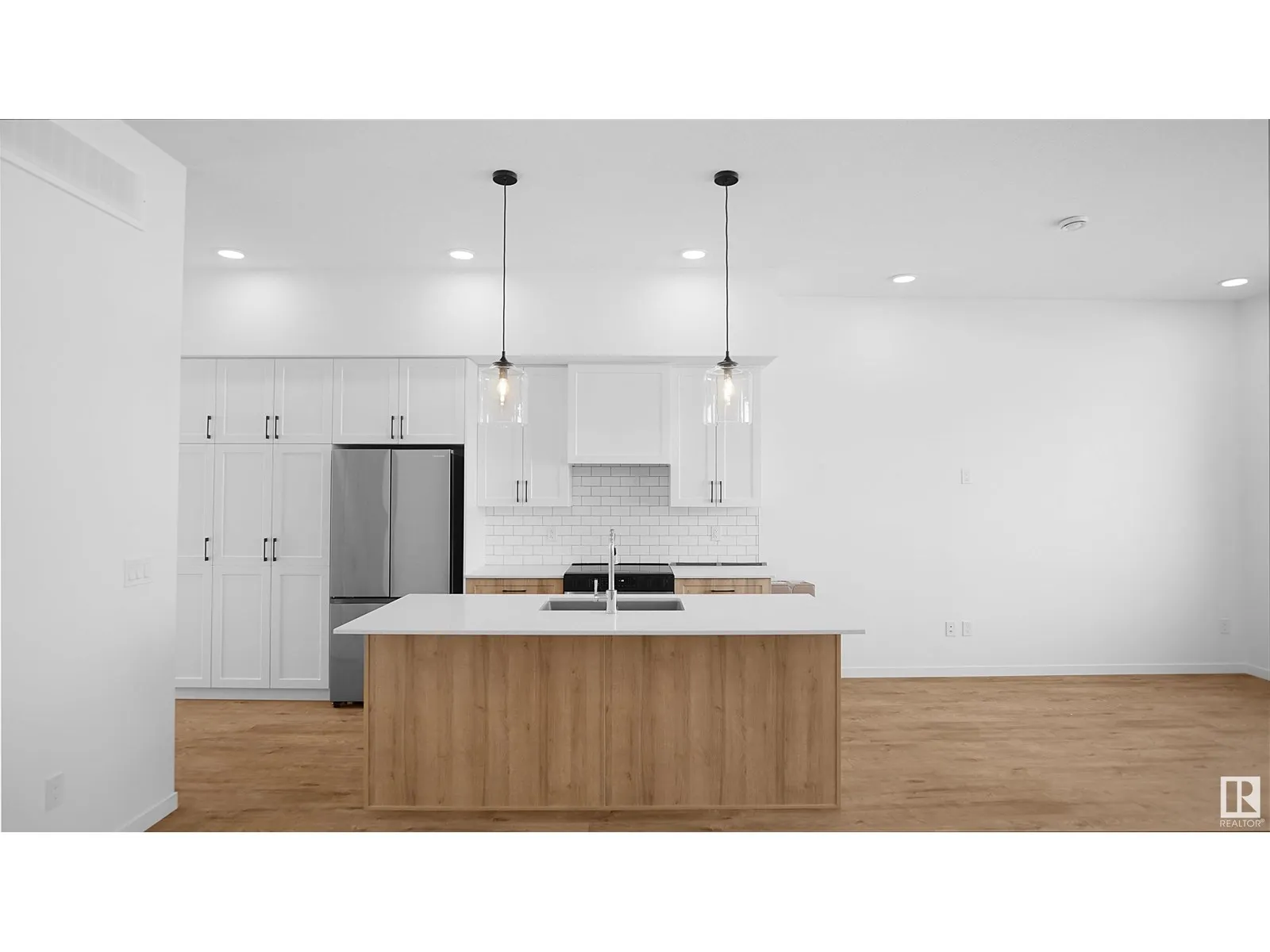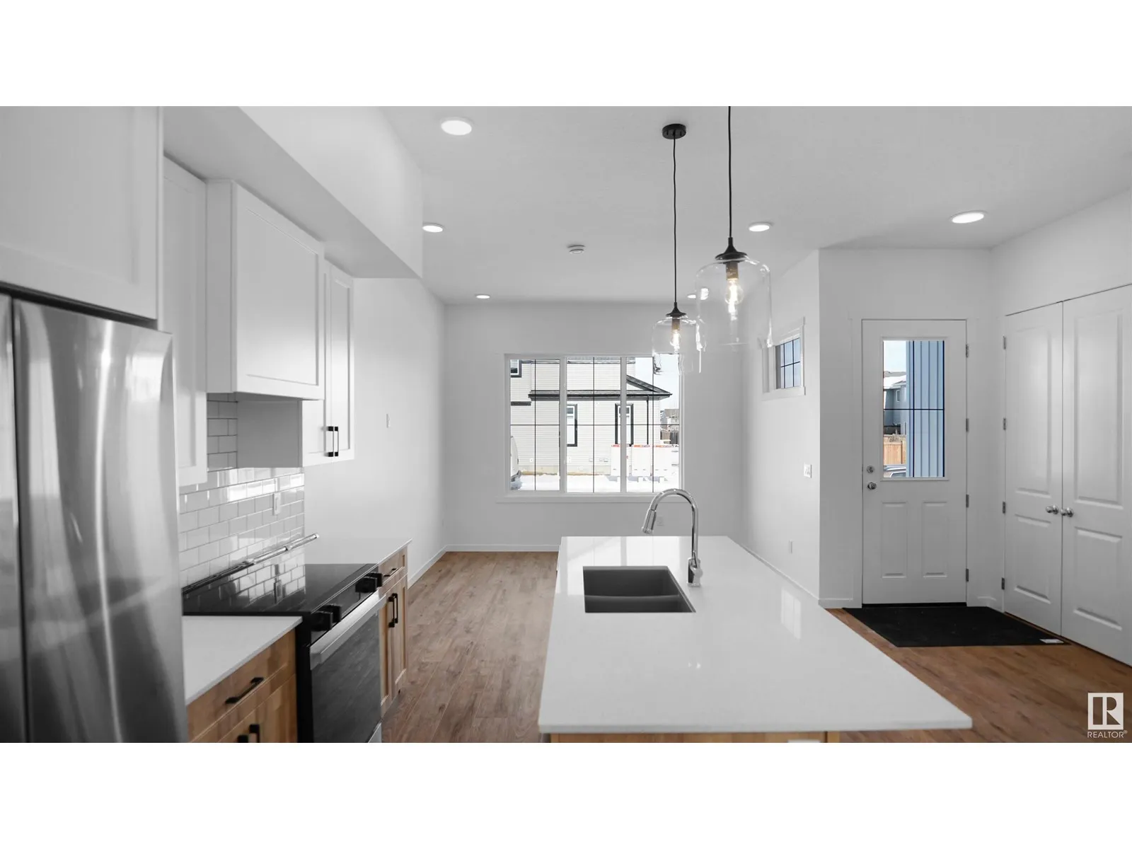 NO CONDO FEES and AMAZING VALUE! You read that right welcome to this brand new townhouse unit the âCanmoreâ Built by StreetSide Developments and is located in one of Edmonton's newest premier communities of Edgemont. With just over 900 square Feet, front and back yard is landscaped, fully fenced , deck and a double detached garage, this opportunity is perfect for a young family or young couple. This bungalow comes complete with upgraded Vinyl plank flooring throughout the great room and the kitchen. Highlighted in your new kitchen are upgraded cabinets, upgraded counter tops and a tile back splash. This home has a large primary suite with a 3 piece ensuite. Perfect for a first time buyer or for a retired couple. *** Home is under construction and will be complete by July so the photos used are from the same style home by colors may vary *** (id:27476)