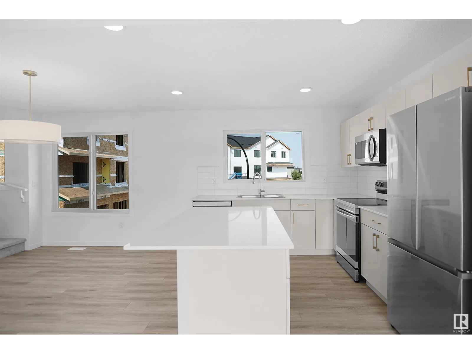 This is StreetSide Developments the Ivy model. This innovative home design with the ground level featuring a double oversized attached garage that leads to the front entrance/foyer. It features a large kitchen with a center island. The cabinets are modern and there is a full back splash & quartz counter tops throughout. It is open to the living room and the living room features lots of windows that makes it super bright. . The deck has a vinyl surface & glass with aluminum railing that is off the living room. This home features 3 bedrooms with with 2.5 baths. The flooring is luxury vinyl plank & carpet. Maintenance fees are $75/month. It is professionally landscaped. Visitor parking on site.***Home is under construction and the photos of a recently built home colors may vary, this home will be complete by September of this year *** (id:27476)