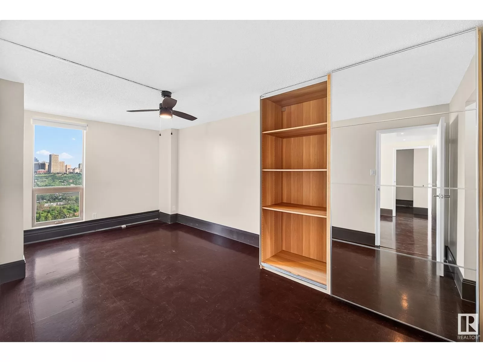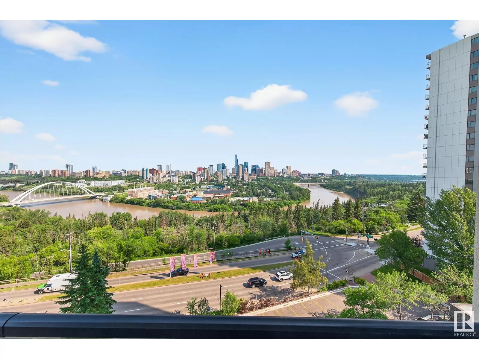 Location, Location, Location! Welcome to the stunning views of Downtown and the River Valley on Saskatchewan Dr. This 9th-floor, two-bedroom, two-bathroom unit offers an urban lifestyle with a spacious, well-designed layout featuring sleek cork flooring. The bright, open kitchen flows into a living area with floor-to-ceiling windows, filling the space with natural light and breathtaking views. The primary bedroom features a large closet and a 4-piece ensuite, while the second bedroom includes a 4-piece bathroom and ample closet space. Enjoy amenities like a gym, racquetball courts, games room, and rooftop tennis/basketball courts. Steps from ravine trails, bike paths, and parks, and minutes from the University of Alberta, Whyte Avenueâs shops, restaurants, and festivals, this unit is a fantastic opportunity for investors, students, or first-time buyers seeking exceptional value in a prime location. Offered at $214,000 (id:27476)