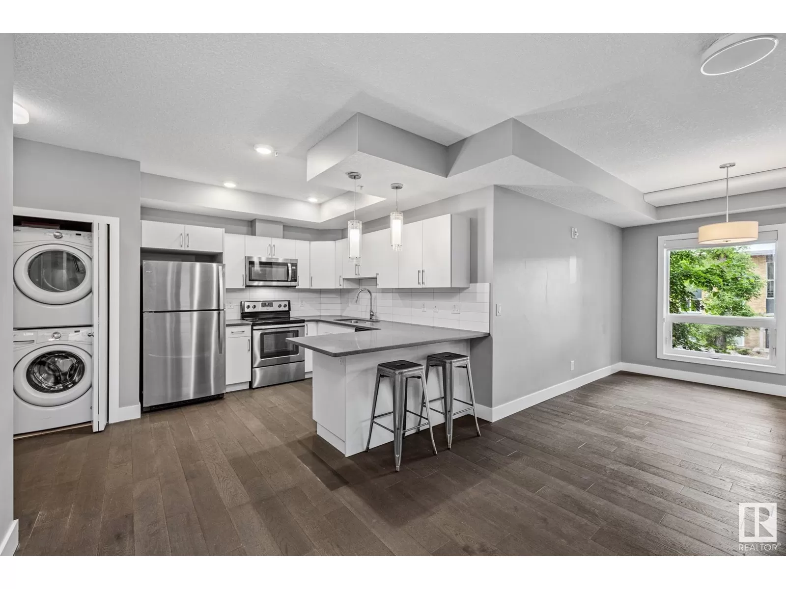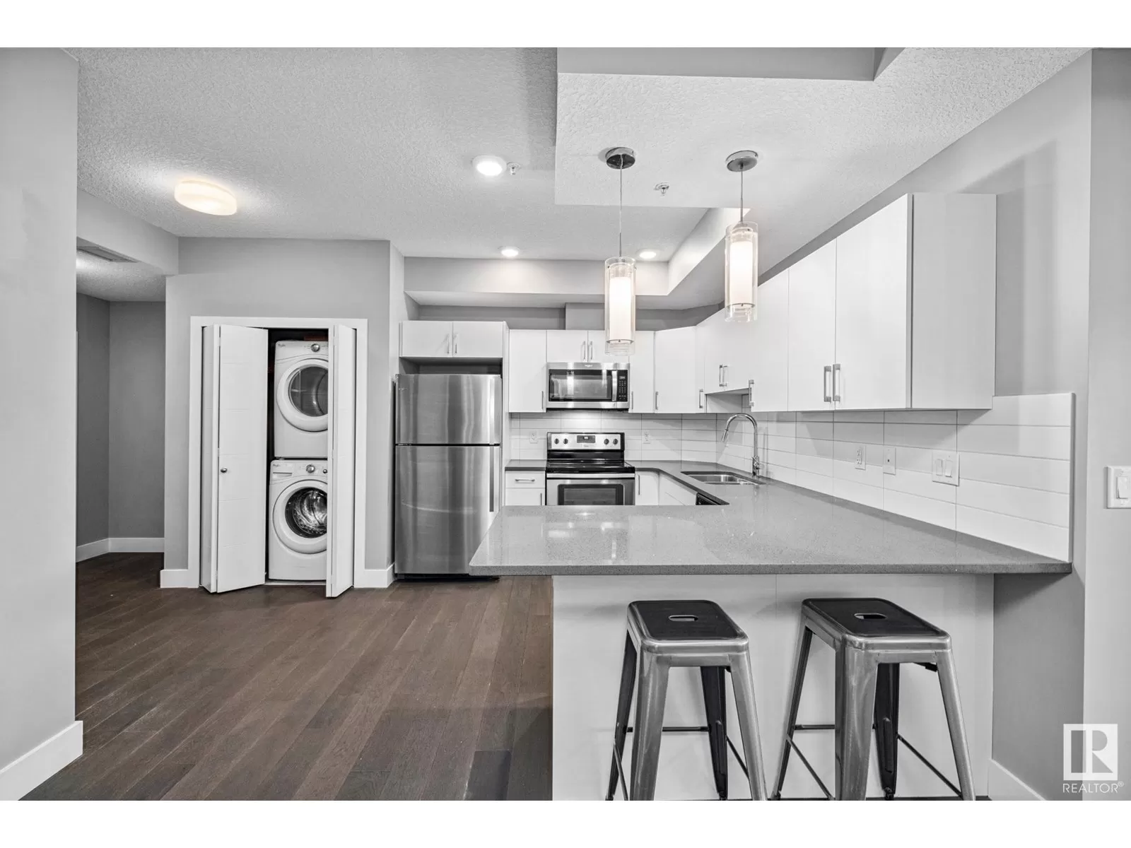 Want to live steps from Whyte Ave and be right in the middle of all the best shops, coffee spots, restaurants, and nightlife? This bright, super clean 2-bedroom, 2-bathroom condo has everything you need to love where you live. Enjoy the airy, open layout with big windows and 9-foot ceilings that make the whole place feel extra spacious. The kitchenâs got an eat up bar, perfect for cooking, coffee breaks, or hanging with friends. You have everyday convenience with in-suite laundry and a storage locker on the second floor. Enjoy summer nights on your south facing patio and grill some burgers on the natural gas bbq. The building is safe and secure with underground parking and bike parking. Plus, youâve got a sweet rooftop patio to soak in the city views or just hang out on a nice day. Whether you want to grab brunch, explore the farmerâs market, hit up local festivals, or chill at home, this place has you covered. Just move in and enjoy the Whyte Ave lifestyle! (id:27476)