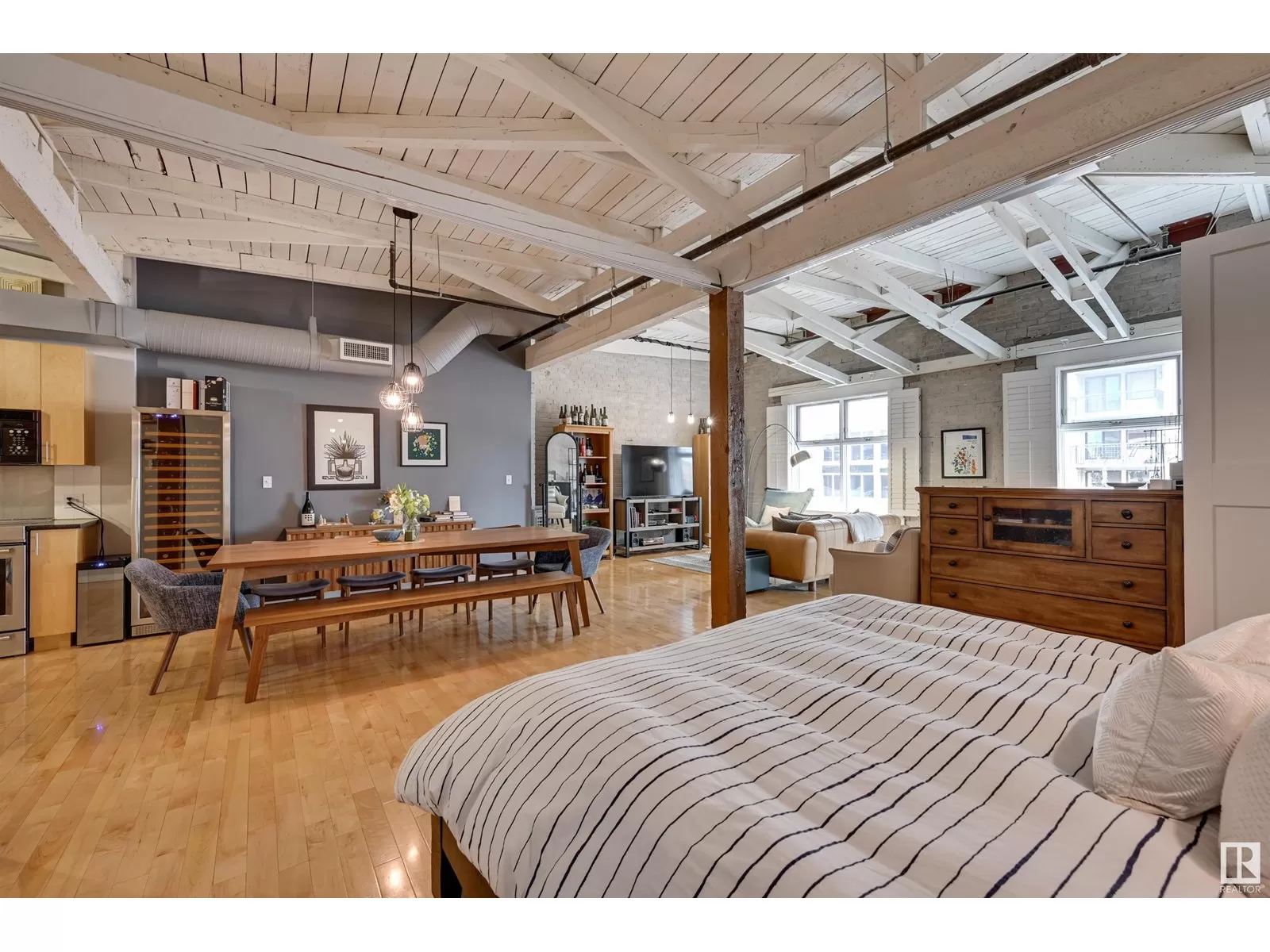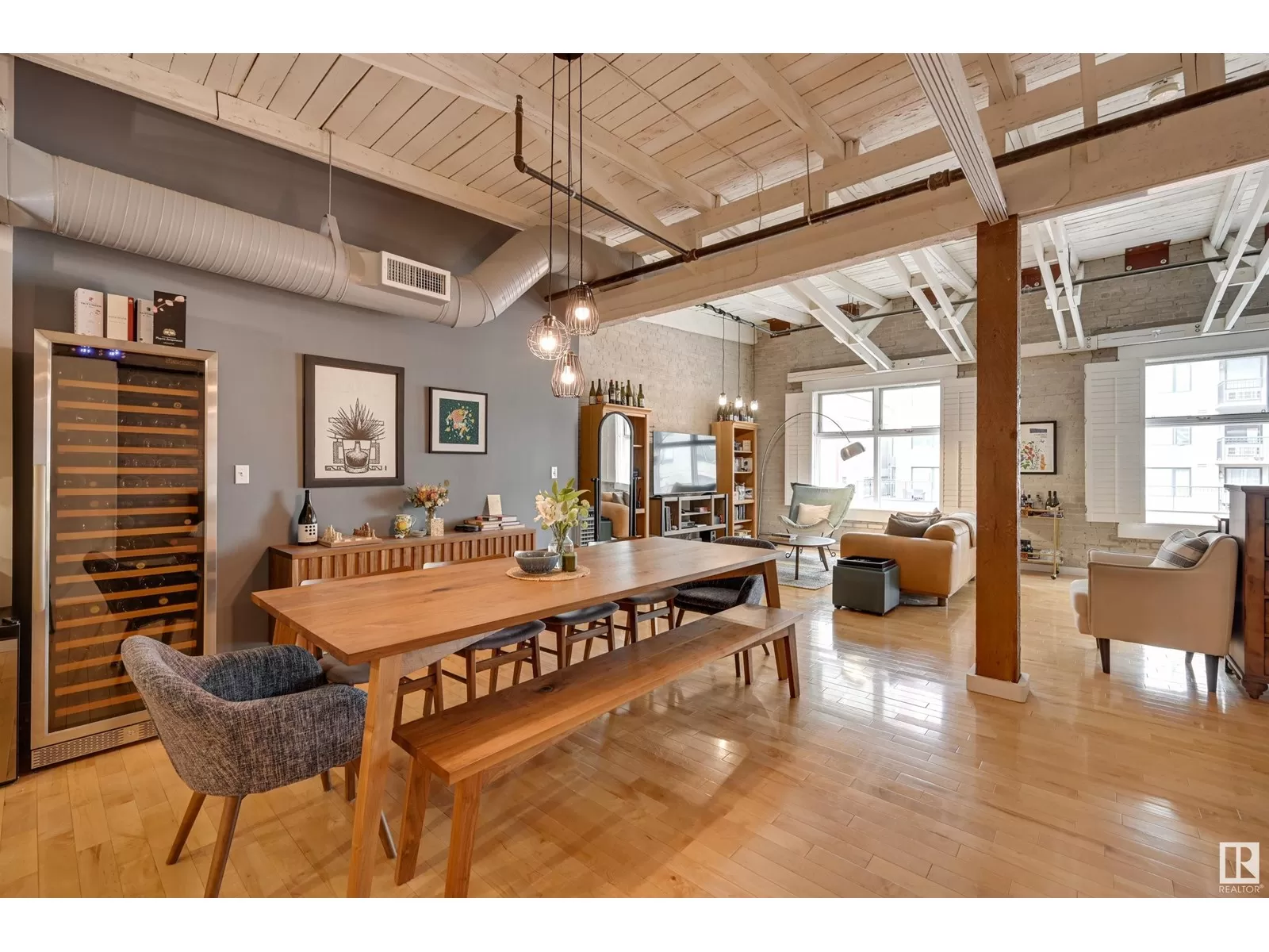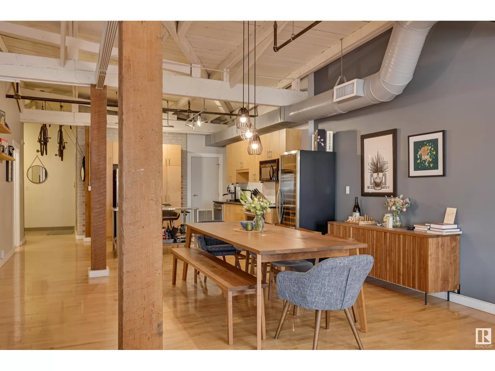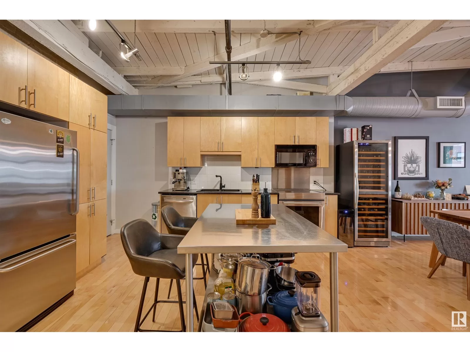 Penthouse Unit in One of Edmontonâs Most Iconic Buildings: Phillips Lofts! Located in the heart of downtown on the always-vibrant 104th Street Promenade, this loft delivers the ultimate urban lifestyleâjust steps from trendy bars, top restaurants, local markets, and the Ice District. This one-of-a-kind space features a private elevator entrance, open beam raised ceilings, and huge west-facing windows offering views of 104th and beyond. The expansive open-concept layout is perfect for entertaining, and the updated bathroom adds a touch of modern luxury. The open concept kitchen features a large stainless steel island, a generous amount of cabinetry and is open to a spacious dining area. The sprawling living room is a great place to curl up and watch a move - with space left over for an office! Stylish, spacious, and set in one of Edmontonâs most desirable downtown locationsâthis loft is not to be missed. In-suite laundry, roof top patio access with sweeping downtown view and underground parking included! (id:27476)