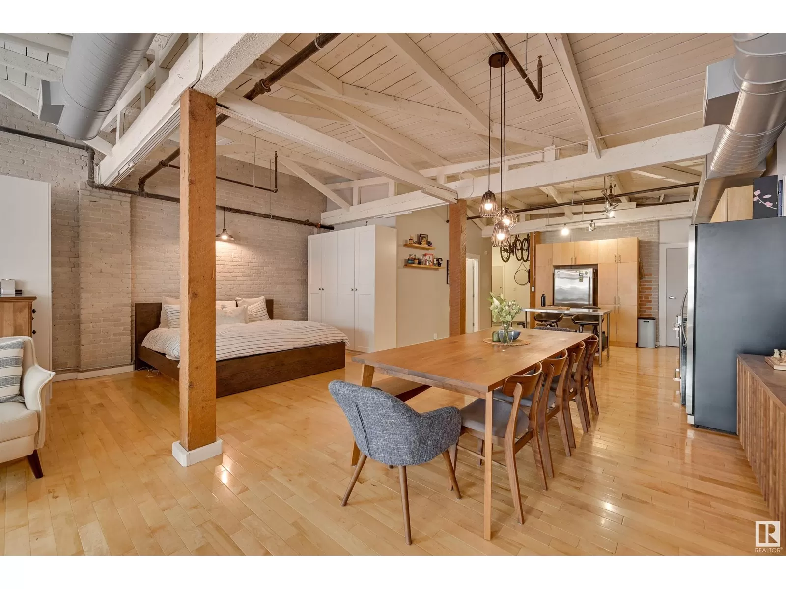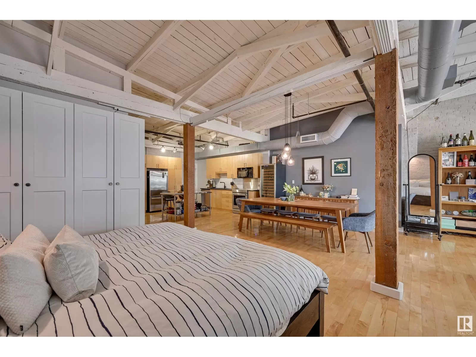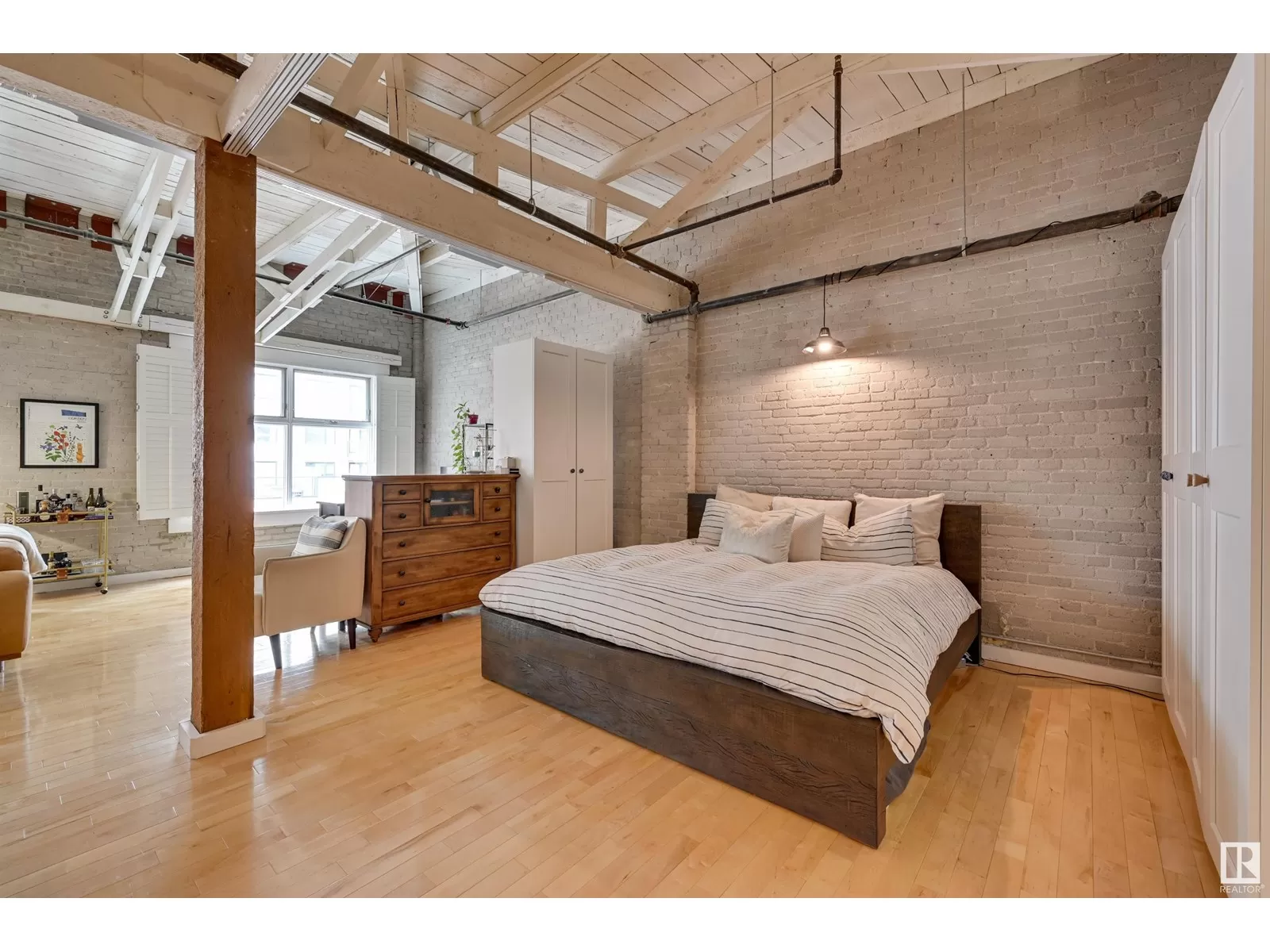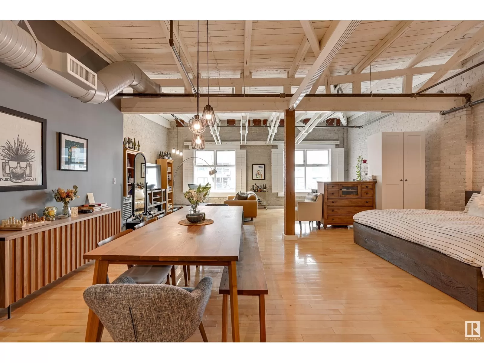 Penthouse Unit in One of Edmontonâs Most Iconic Buildings: Phillips Lofts! Located in the heart of downtown on the always-vibrant 104th Street Promenade, this loft delivers the ultimate urban lifestyleâjust steps from trendy bars, top restaurants, local markets, and the Ice District. This one-of-a-kind space features a private elevator entrance, open beam raised ceilings, and huge west-facing windows offering views of 104th and beyond. The expansive open-concept layout is perfect for entertaining, and the updated bathroom adds a touch of modern luxury. The open concept kitchen features a large stainless steel island, a generous amount of cabinetry and is open to a spacious dining area. The sprawling living room is a great place to curl up and watch a move - with space left over for an office! Stylish, spacious, and set in one of Edmontonâs most desirable downtown locationsâthis loft is not to be missed. In-suite laundry, roof top patio access with sweeping downtown view and underground parking included! (id:27476)