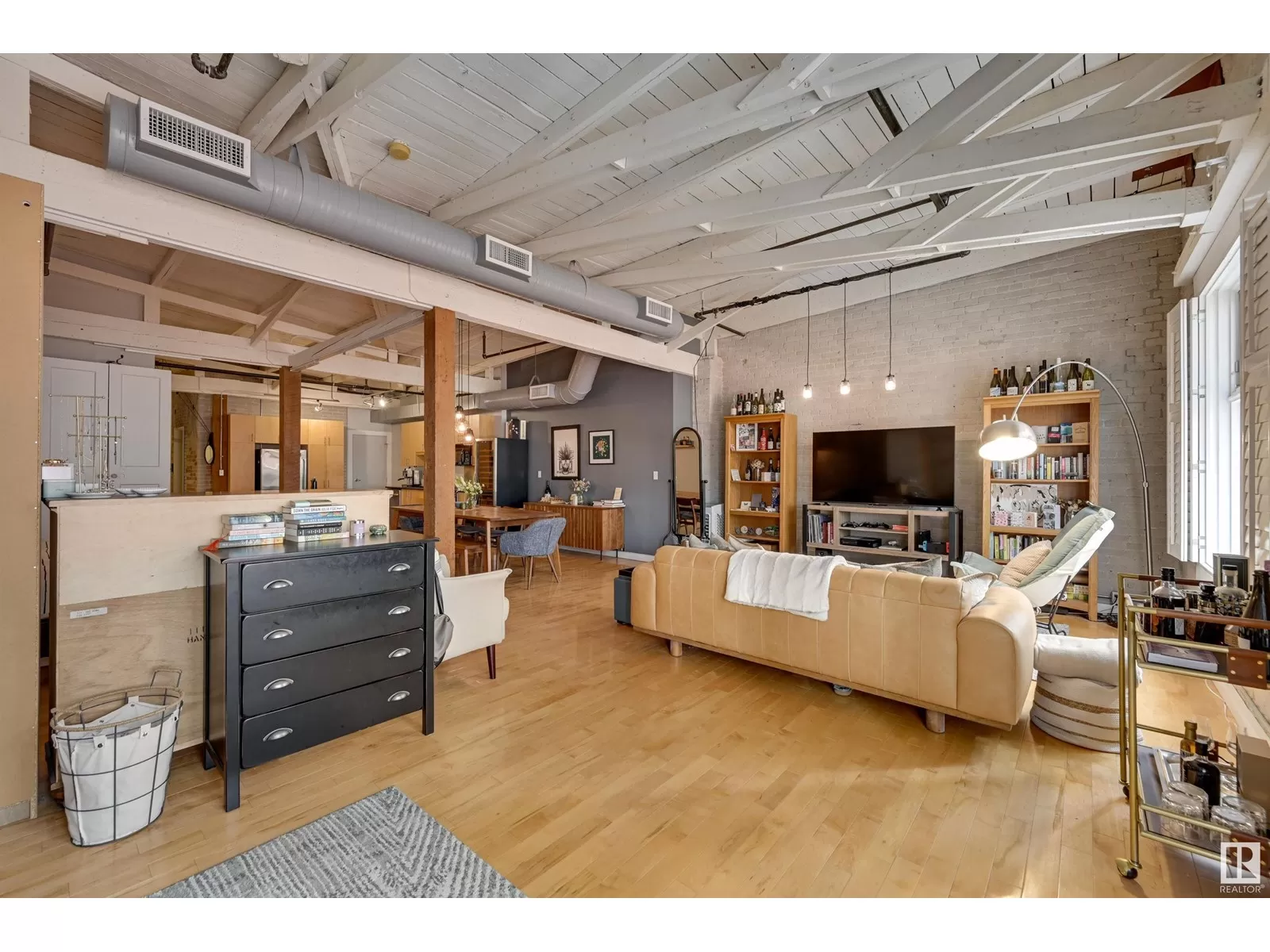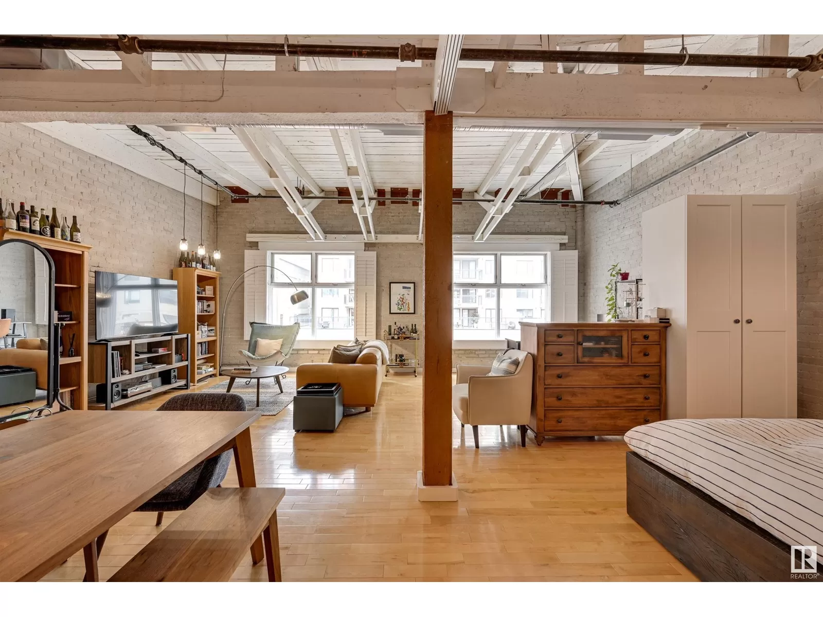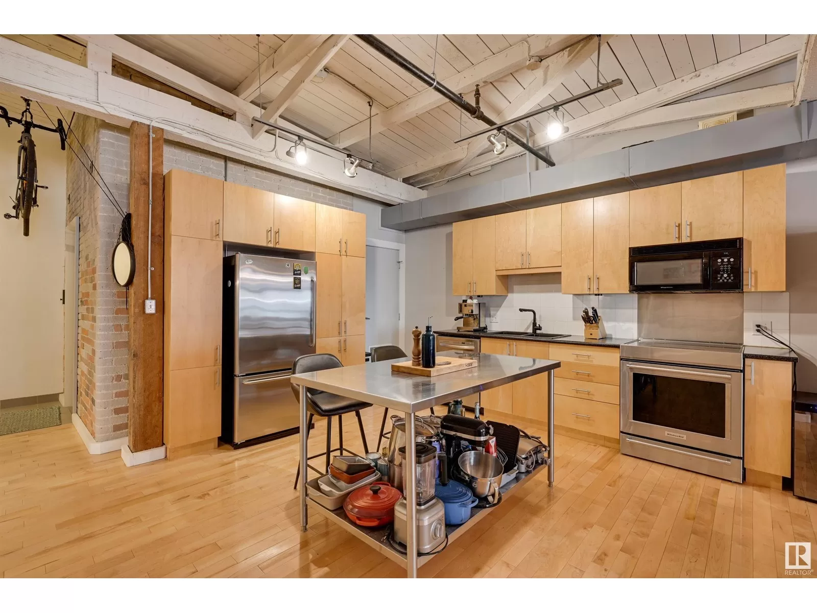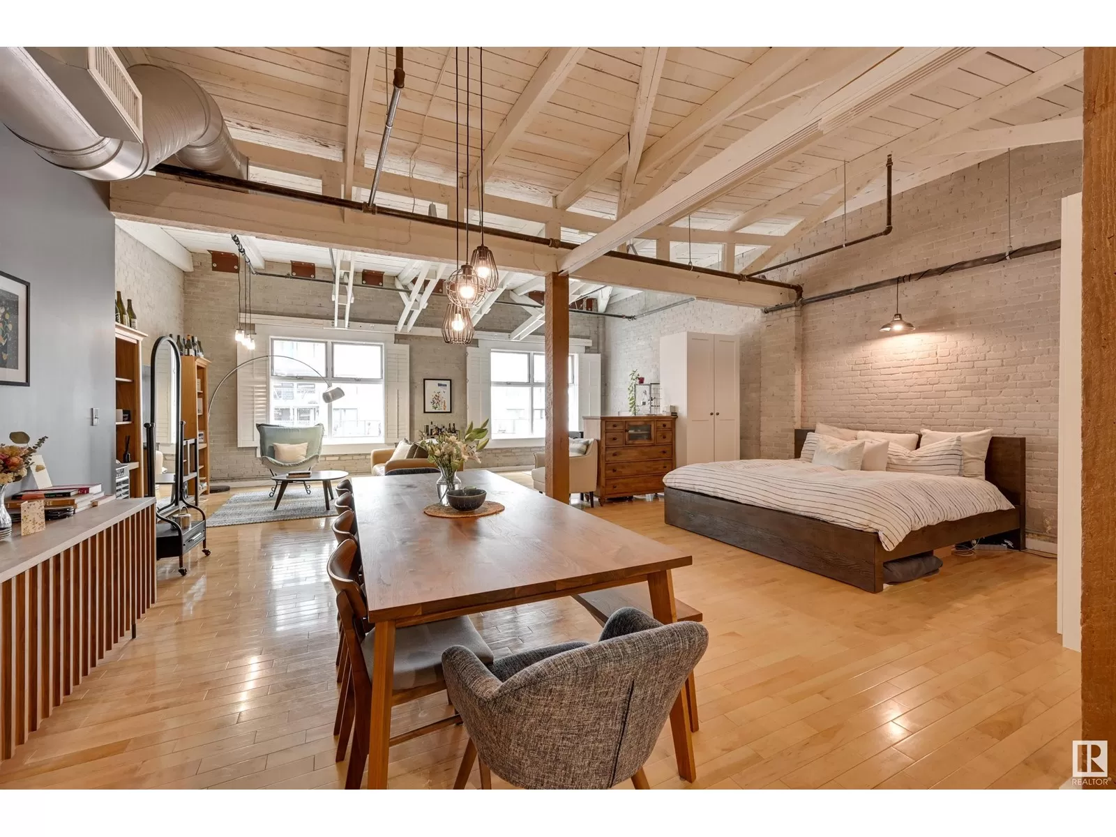 Penthouse Unit in One of Edmontonâs Most Iconic Buildings: Phillips Lofts! Located in the heart of downtown on the always-vibrant 104th Street Promenade, this loft delivers the ultimate urban lifestyleâjust steps from trendy bars, top restaurants, local markets, and the Ice District. This one-of-a-kind space features a private elevator entrance, open beam raised ceilings, and huge west-facing windows offering views of 104th and beyond. The expansive open-concept layout is perfect for entertaining, and the updated bathroom adds a touch of modern luxury. The open concept kitchen features a large stainless steel island, a generous amount of cabinetry and is open to a spacious dining area. The sprawling living room is a great place to curl up and watch a move - with space left over for an office! Stylish, spacious, and set in one of Edmontonâs most desirable downtown locationsâthis loft is not to be missed. In-suite laundry, roof top patio access with sweeping downtown view and underground parking included! (id:27476)