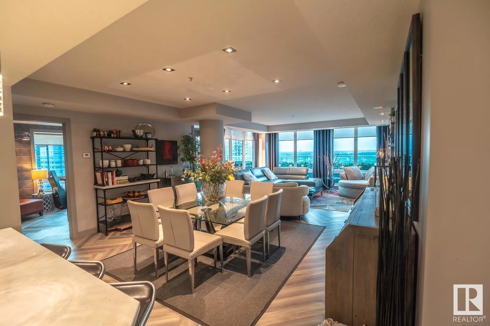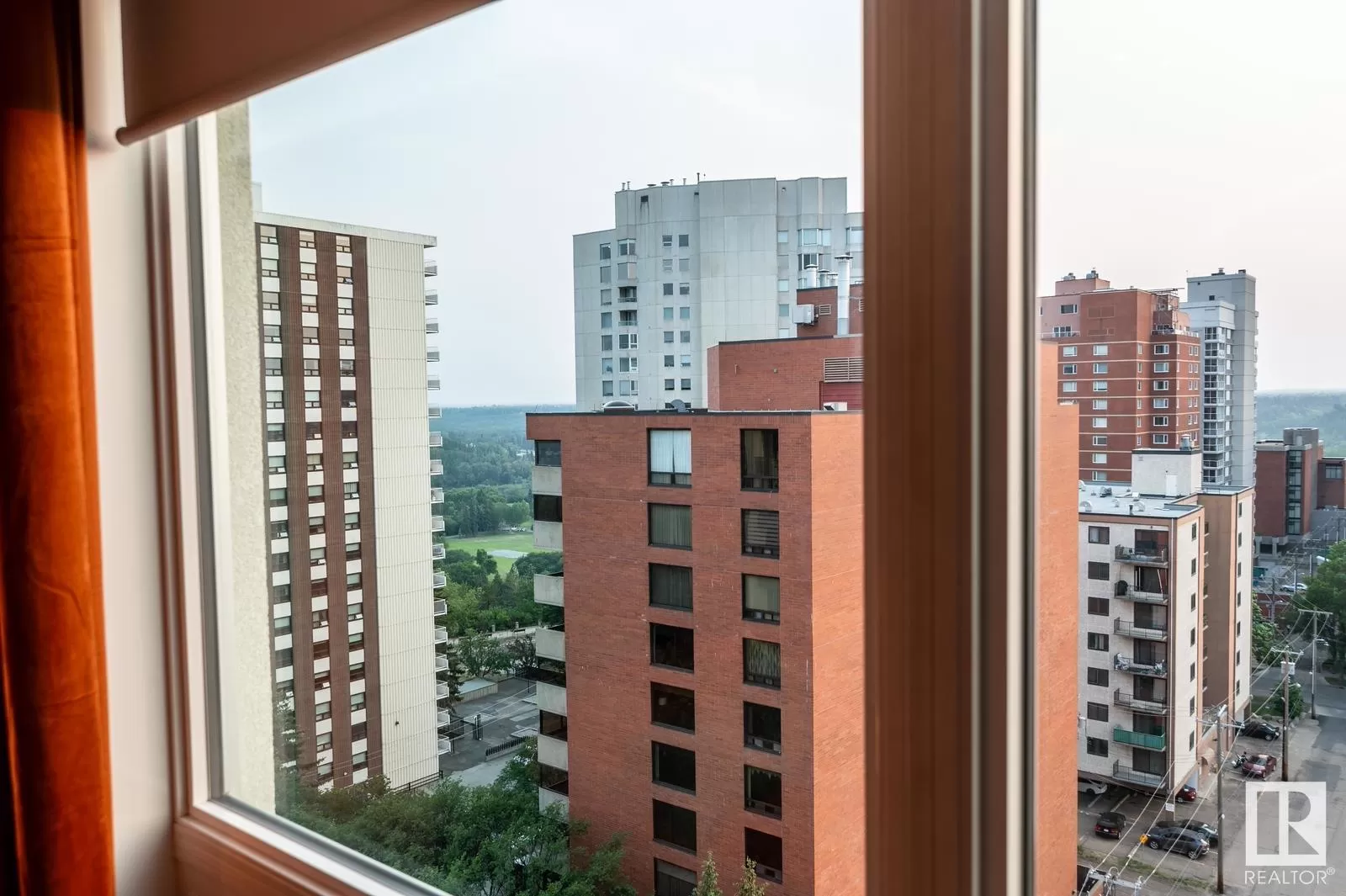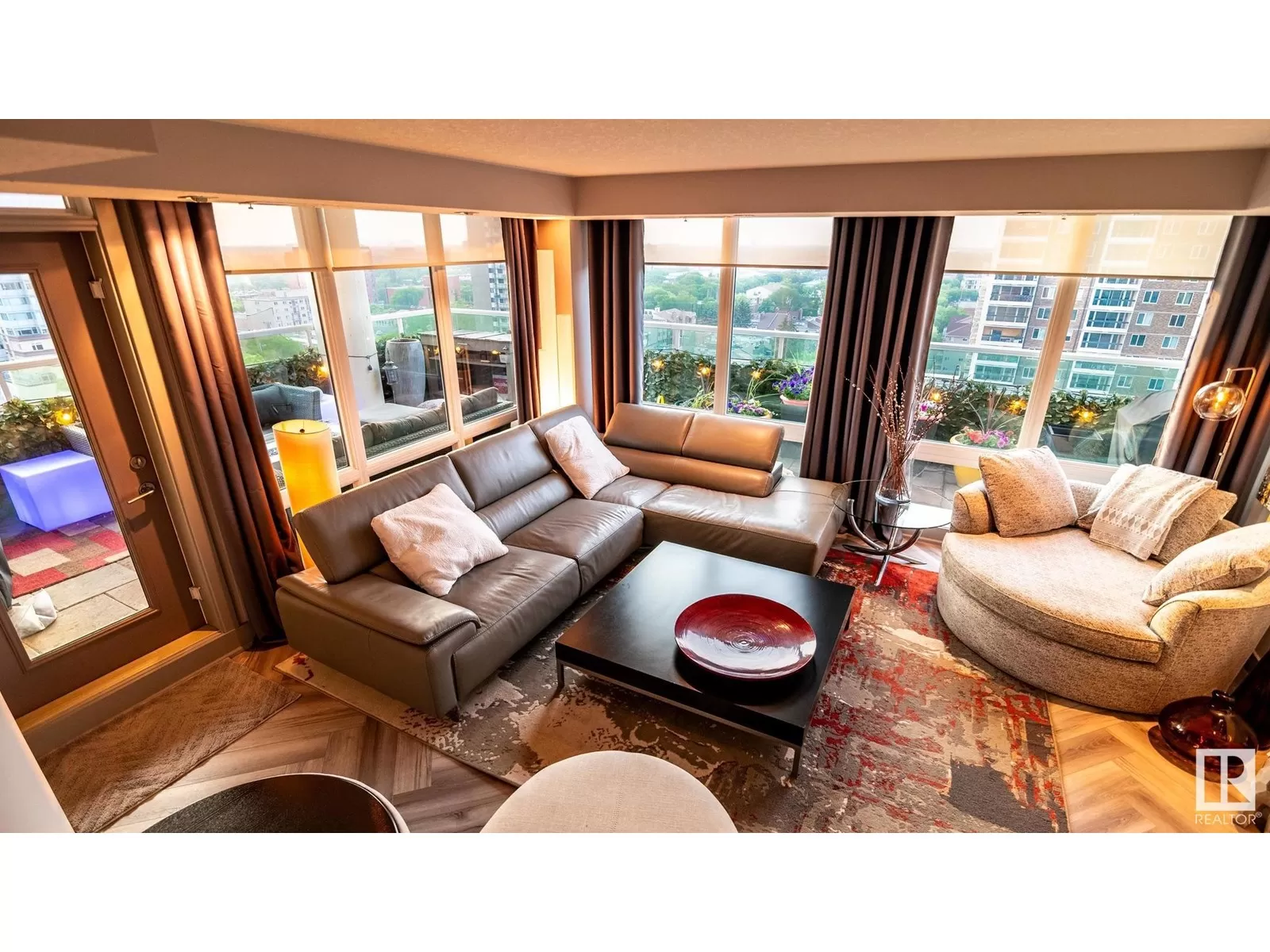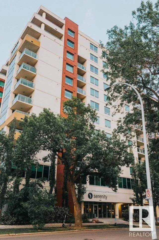 This Top Floor corner unit 1500 sq ft Penthouse, in the sought after Serenity building is in a Prime Location (Oliver) with exceptional views. This solid well managed building is just steps from the scenic Victoria Promenade, river valley, trails, shopping, transit and more. The final stages of the Jasper Ave Revitalization project are under way as we speak. This 2 bedroom plus Den unit features 3 bathrooms including a second bedroom 4 piece ensuite, spacious master, new wide plank flooring throughout, refaced cabinets, updated tile, and professionally painted. California style closets and pantry organizers throughout add both style and storage. Unit includes Two side by side oversized Premium parking stalls close to elevators, both with storage cages. Enjoy 275 sq ft of covered wrap around Terrace that has stunning city skyline and valley views, complete with gas BBQ hook up and power. Large covered visitor parking for your guests. All utilities excluding internet are included in the condo fees. (id:27476)