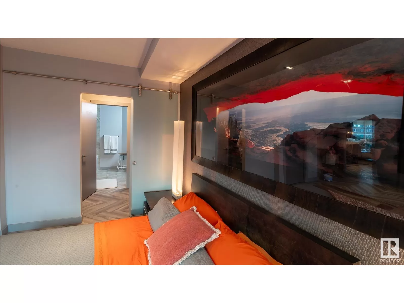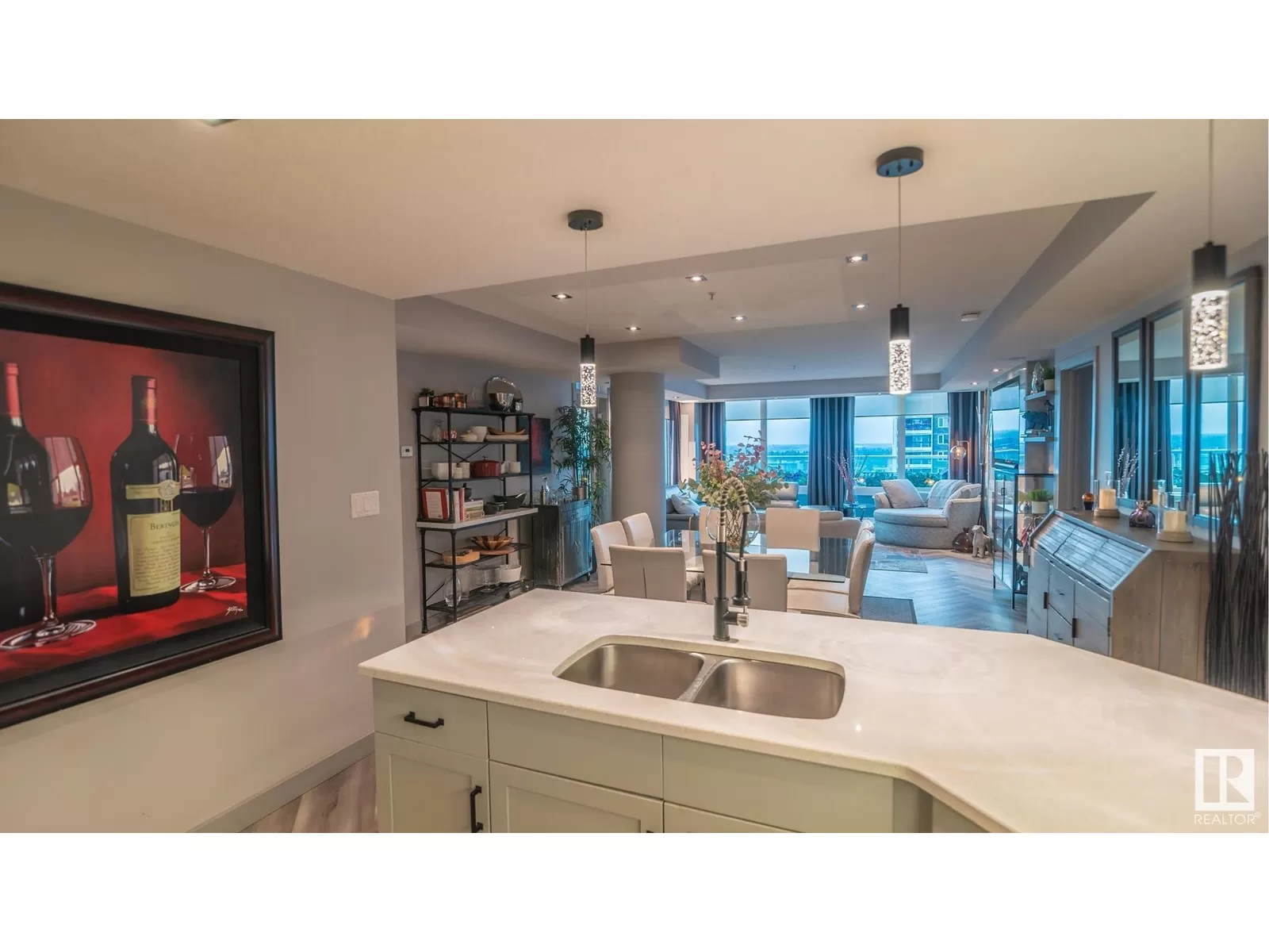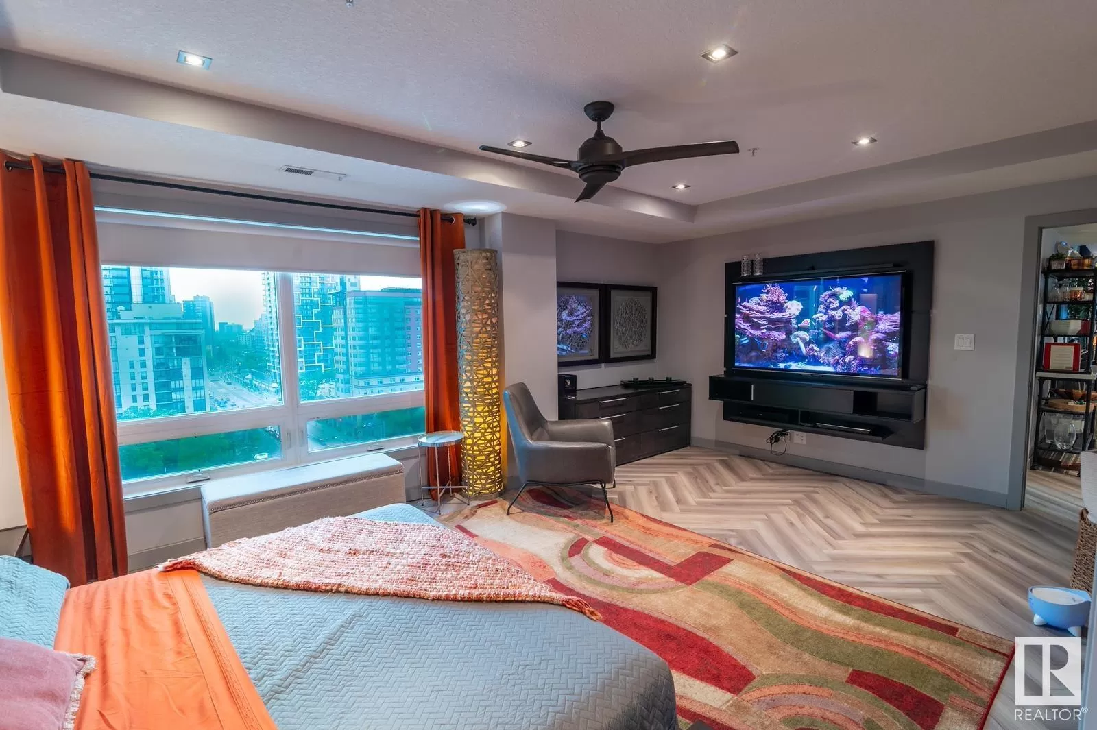 This Top Floor corner unit 1500 sq ft Penthouse, in the sought after Serenity building is in a Prime Location (Oliver) with exceptional views. This solid well managed building is just steps from the scenic Victoria Promenade, river valley, trails, shopping, transit and more. The final stages of the Jasper Ave Revitalization project are under way as we speak. This 2 bedroom plus Den unit features 3 bathrooms including a second bedroom 4 piece ensuite, spacious master, new wide plank flooring throughout, refaced cabinets, updated tile, and professionally painted. California style closets and pantry organizers throughout add both style and storage. Unit includes Two side by side oversized Premium parking stalls close to elevators, both with storage cages. Enjoy 275 sq ft of covered wrap around Terrace that has stunning city skyline and valley views, complete with gas BBQ hook up and power. Large covered visitor parking for your guests. All utilities excluding internet are included in the condo fees. (id:27476)